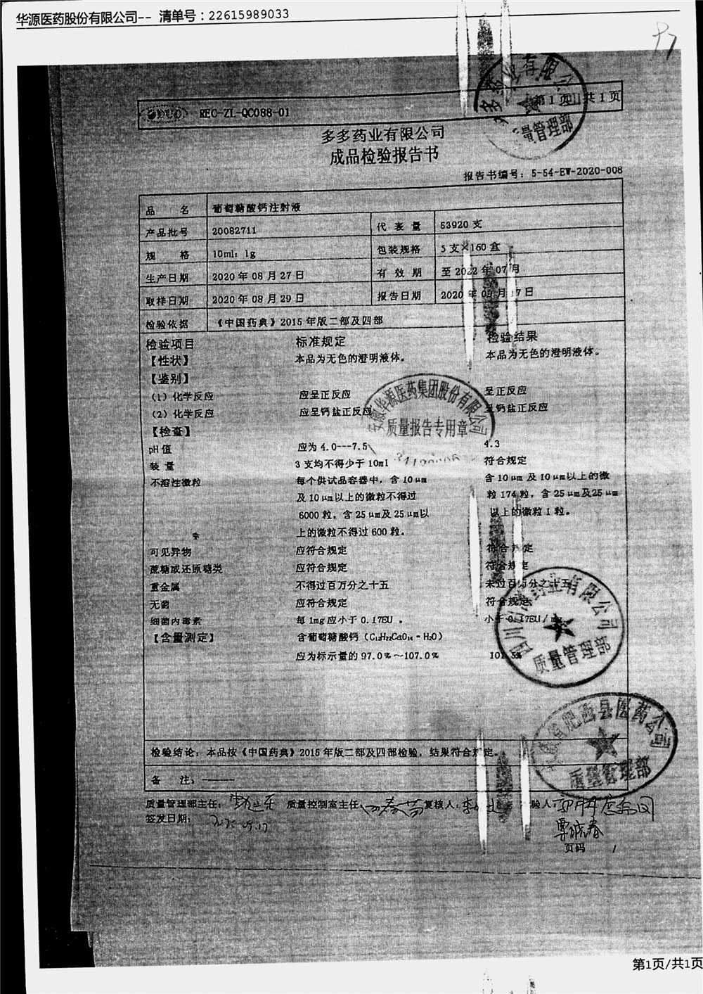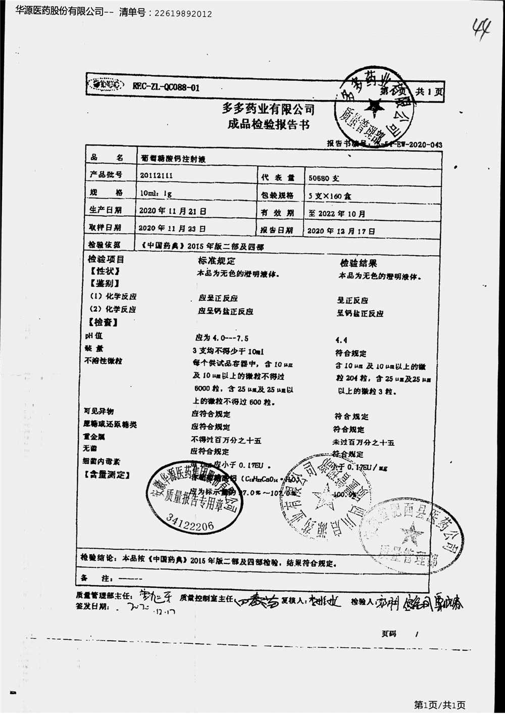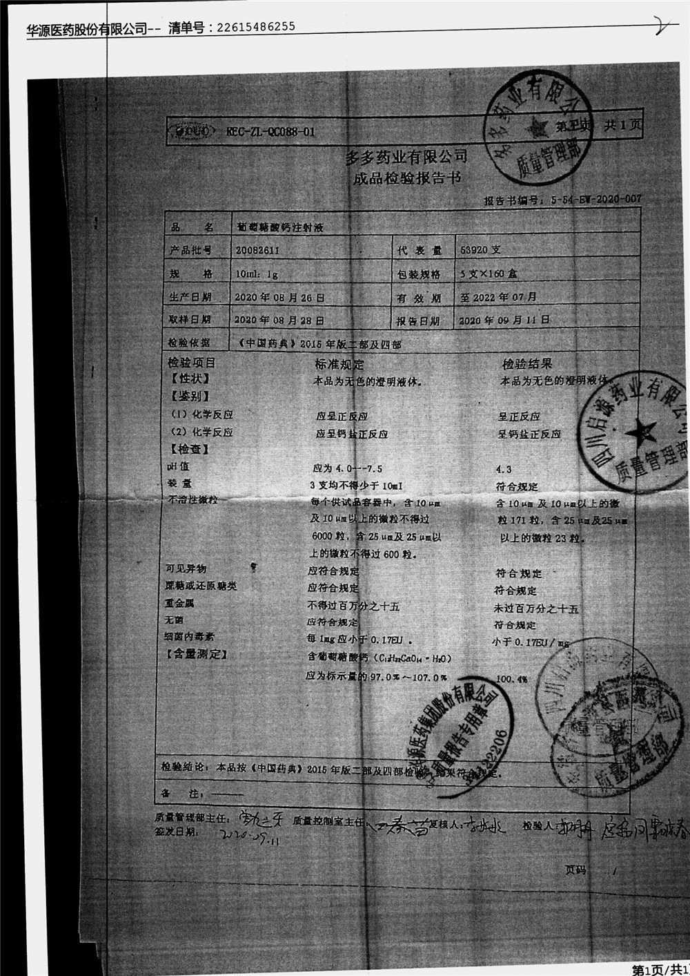 | 葡萄糖酸钙注射液 | 10ml:1g | 20082611 | 查看详情 |