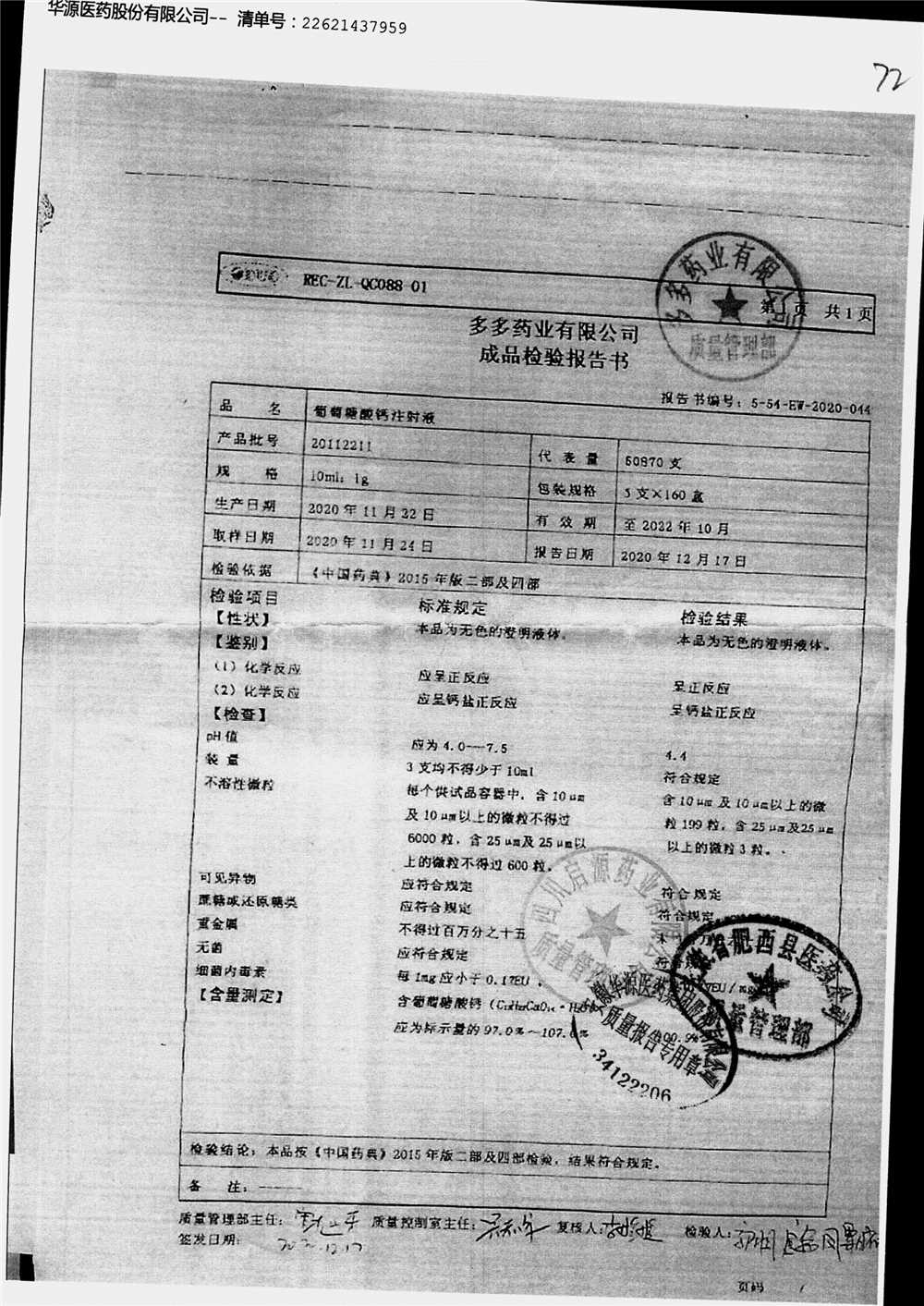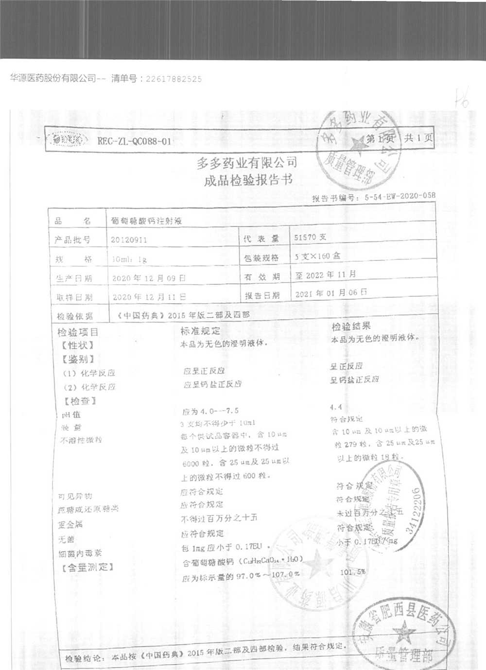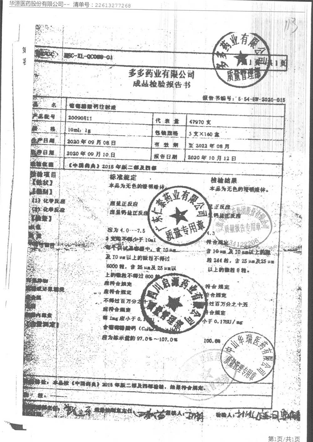 | 葡萄糖酸钙注射液 | 10ml:1g | 20082611 | 查看详情 |