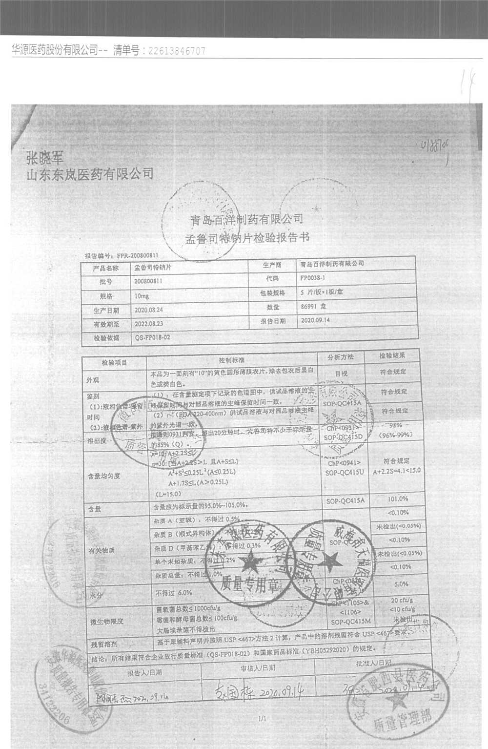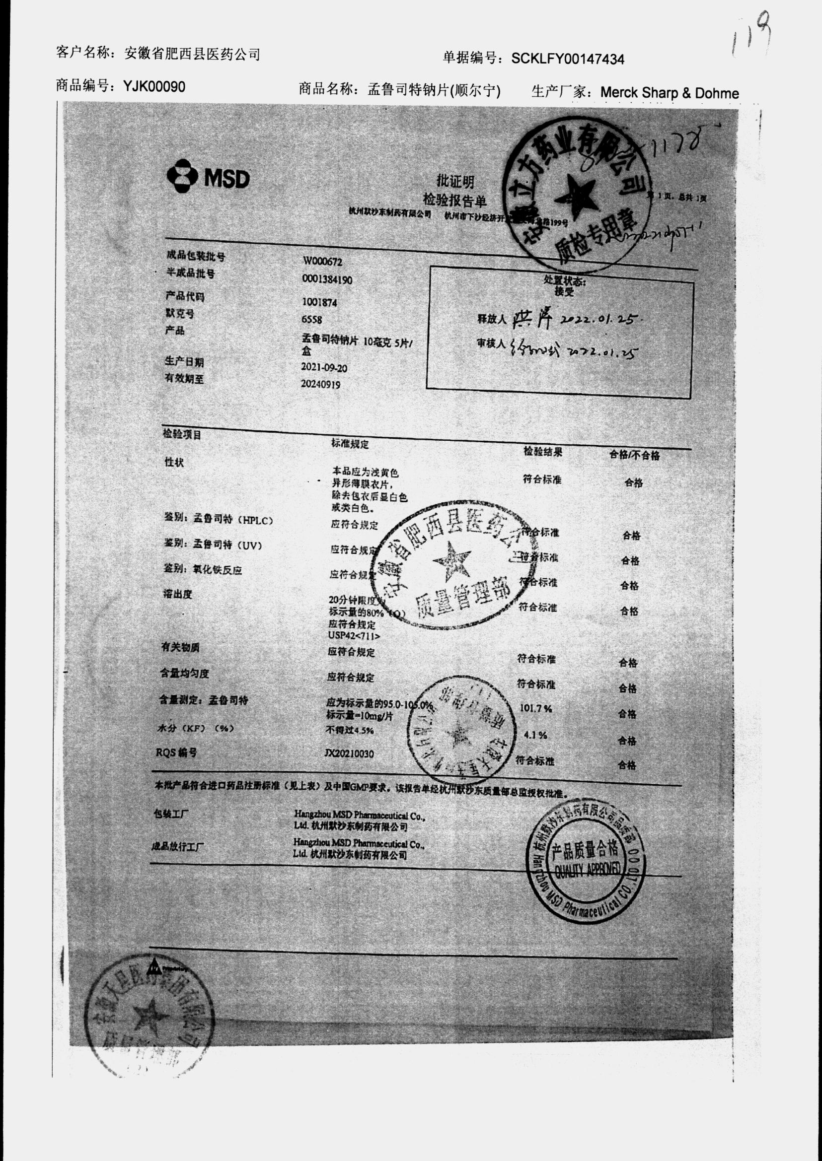药检报告