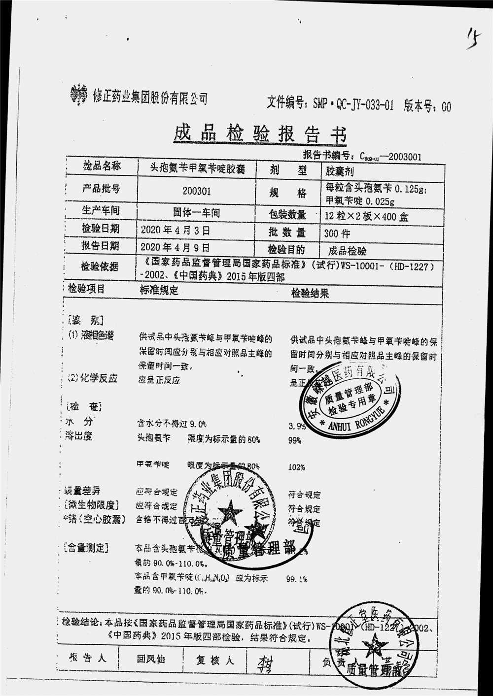 药检报告