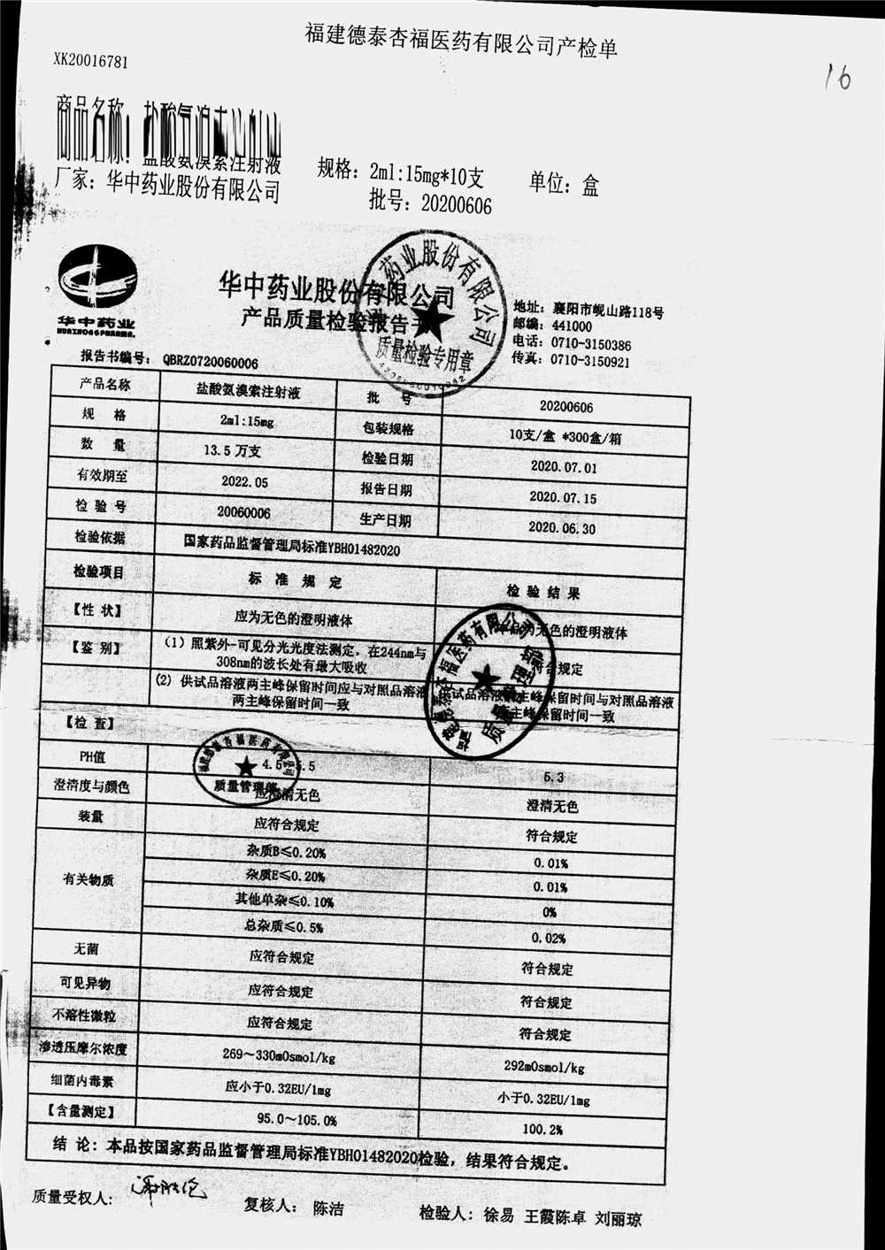 | 盐酸氨溴索注射液 | 2ml:15mg*10支 | 20200606 | 查看详情 |