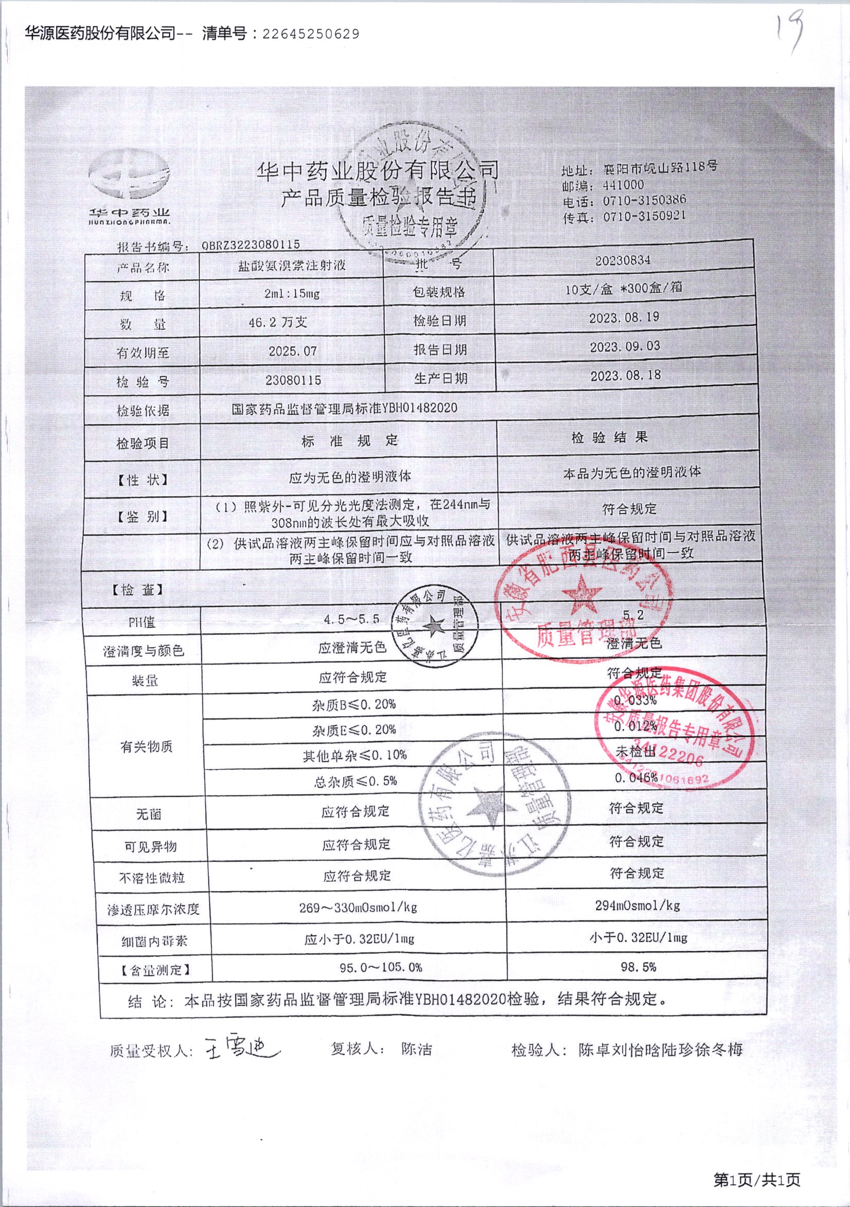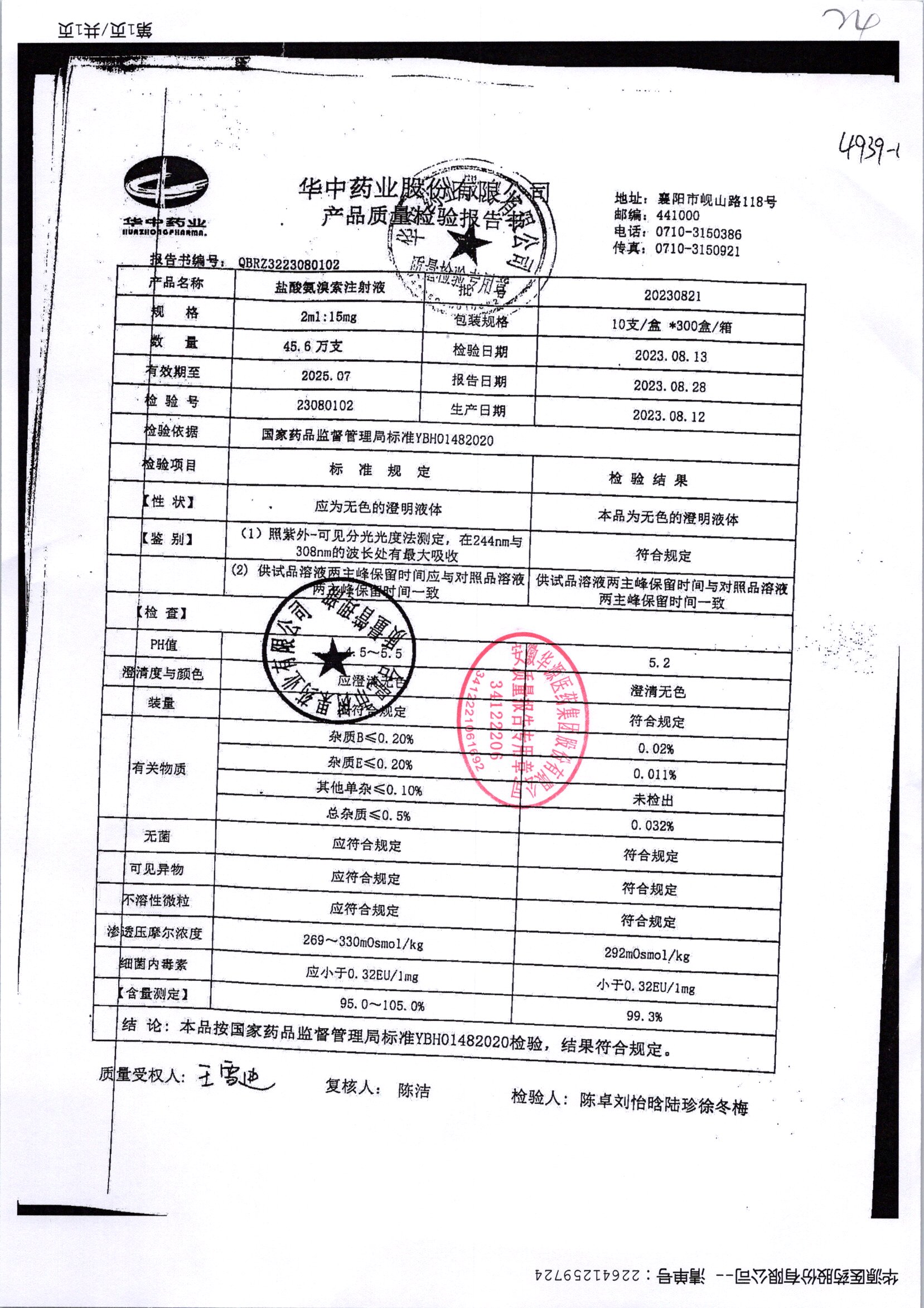 | 盐酸氨溴索注射液 | 2ml:15mg*10支 | 20230824 | 查看详情 |