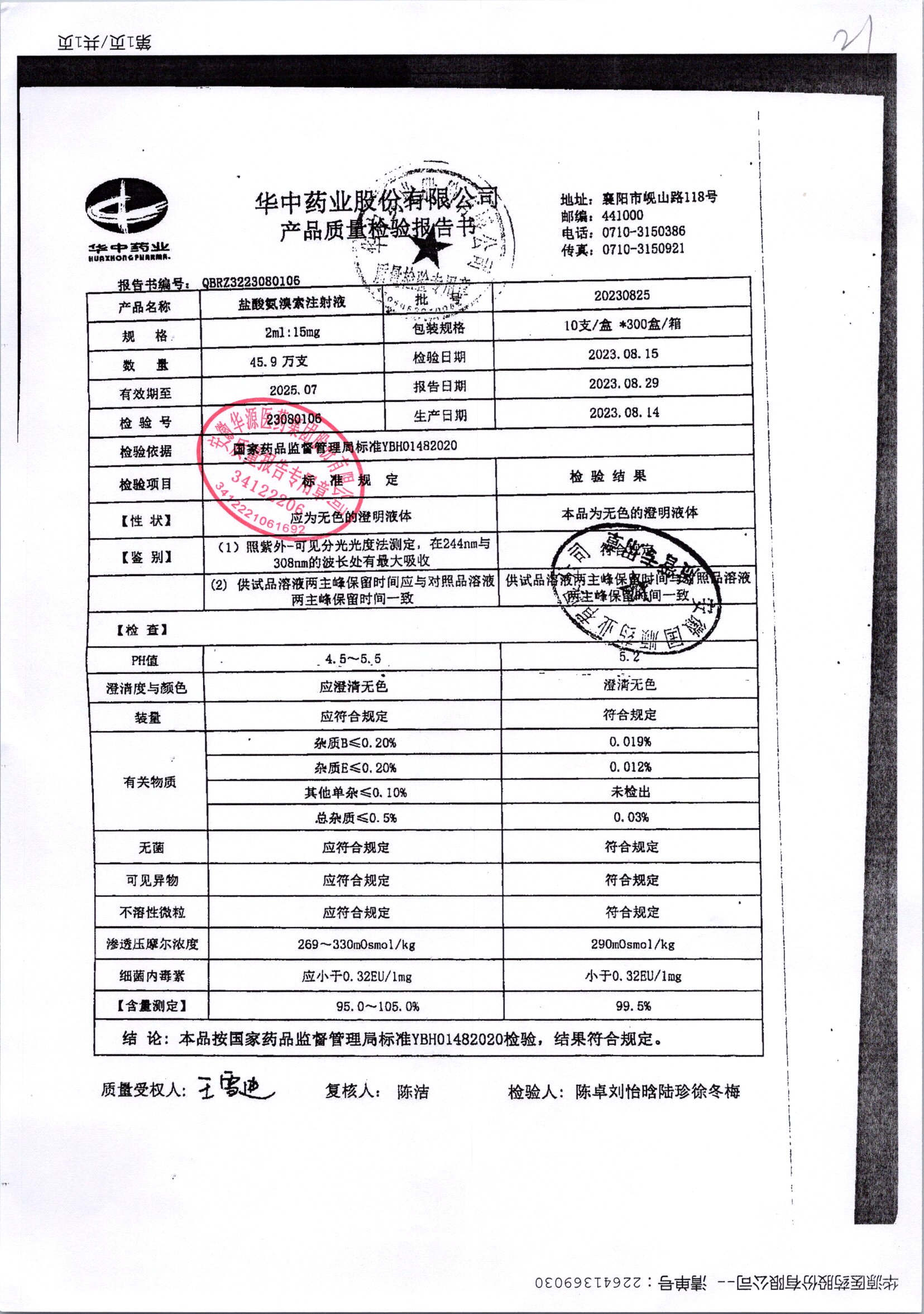 | 盐酸氨溴索注射液 | 2ml:15mg*10支 | 20230821 | 查看详情 |