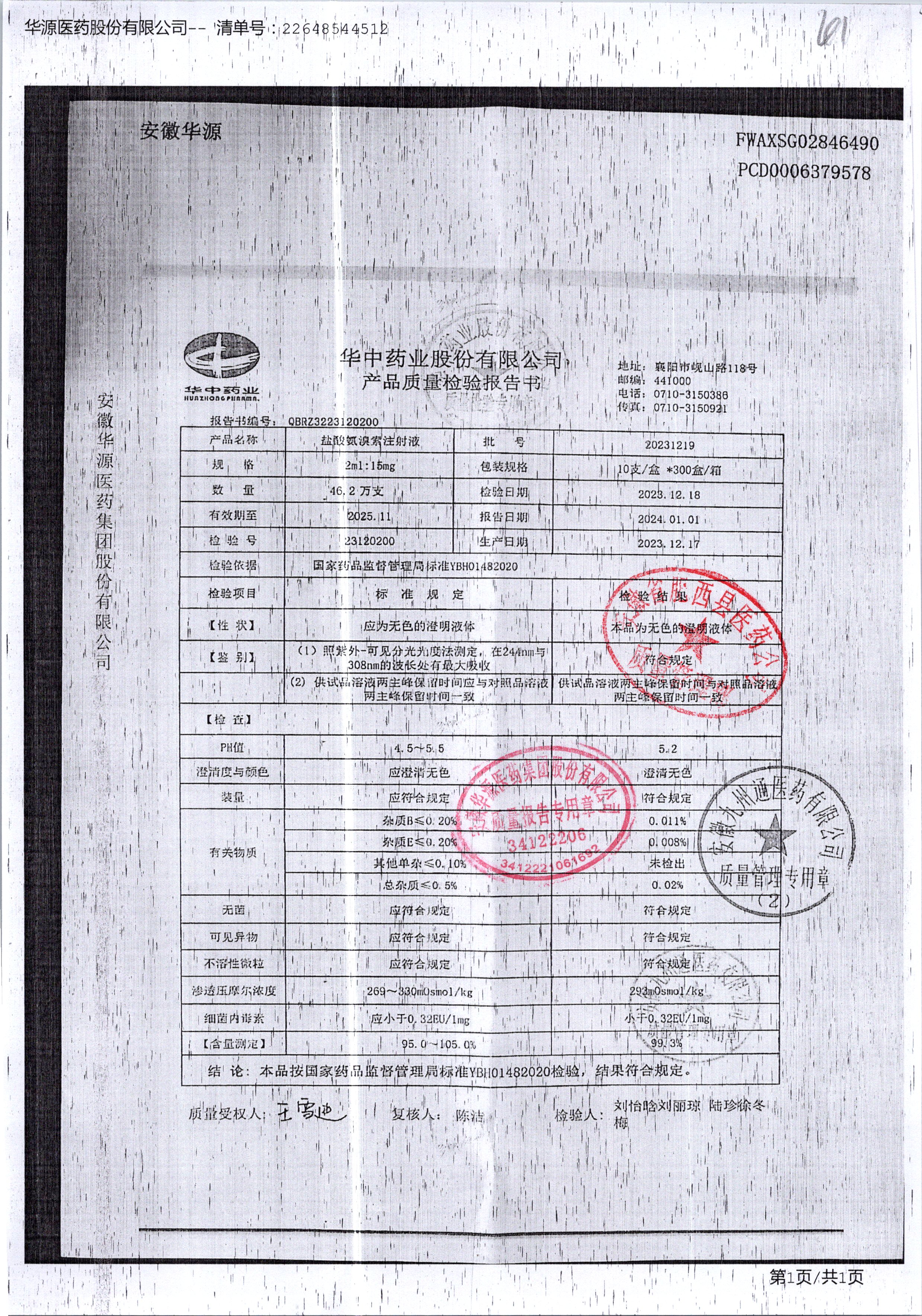 | 盐酸氨溴索注射液 | 2ml:15mg*10支 | 20231219 | 查看详情 |