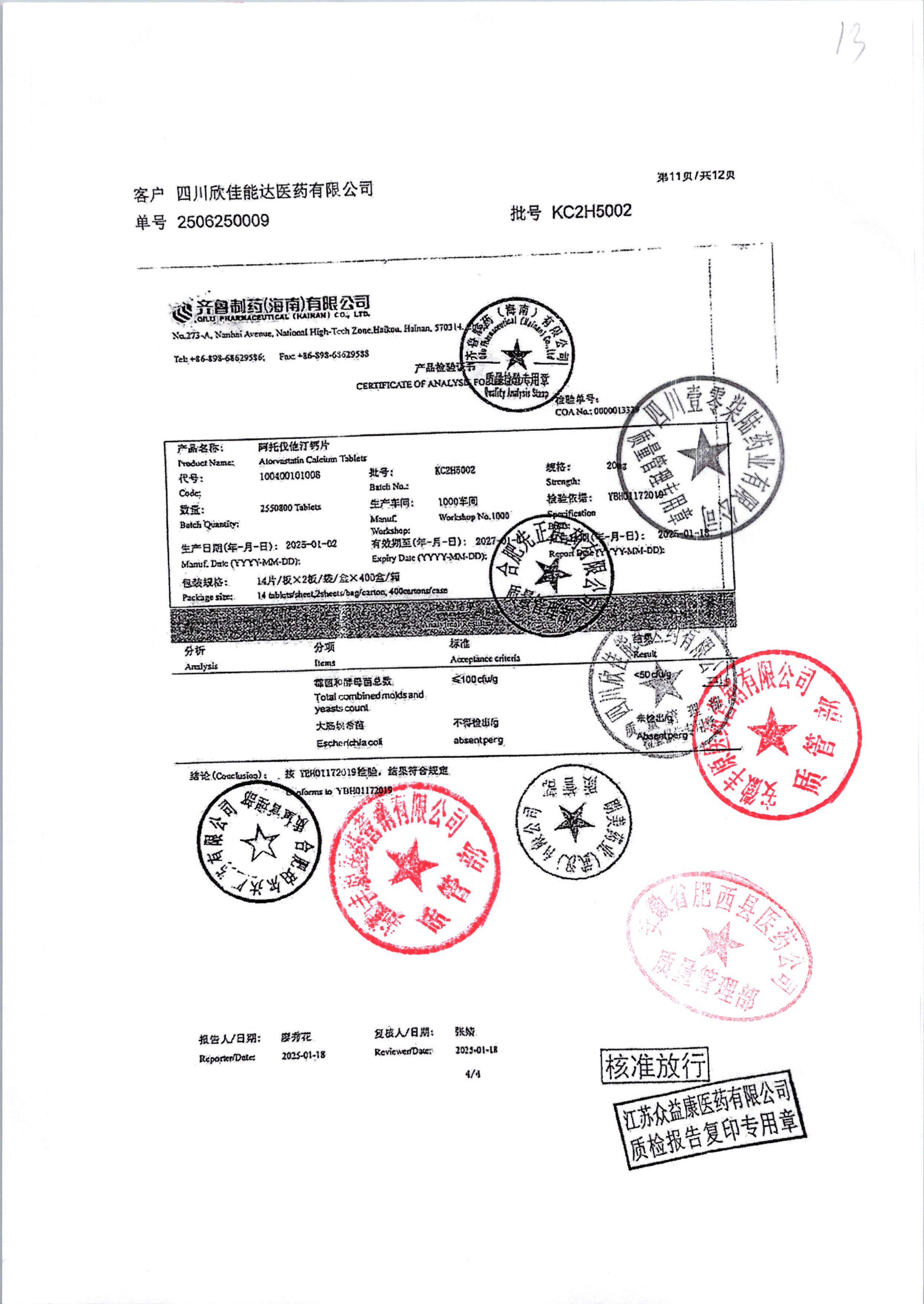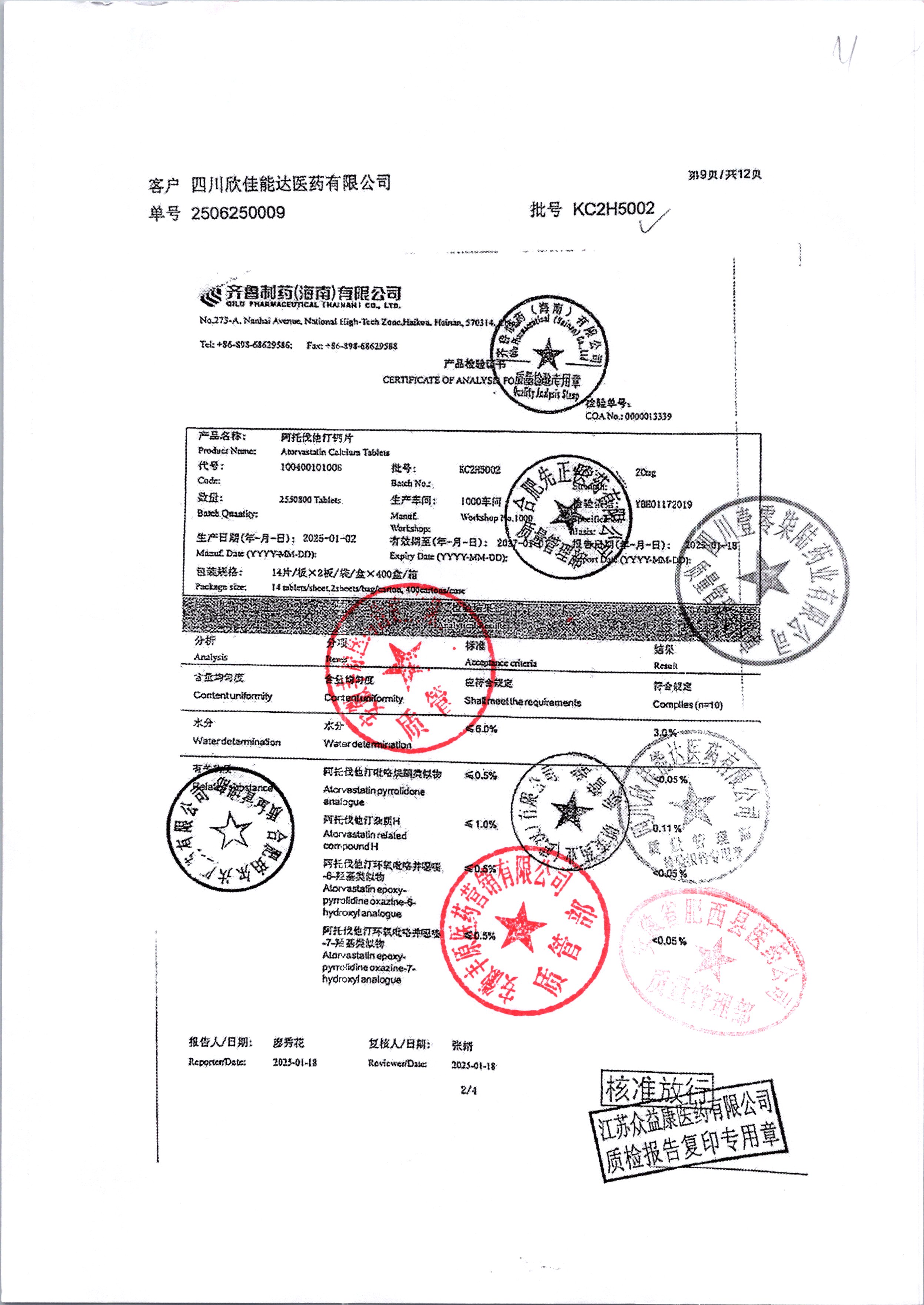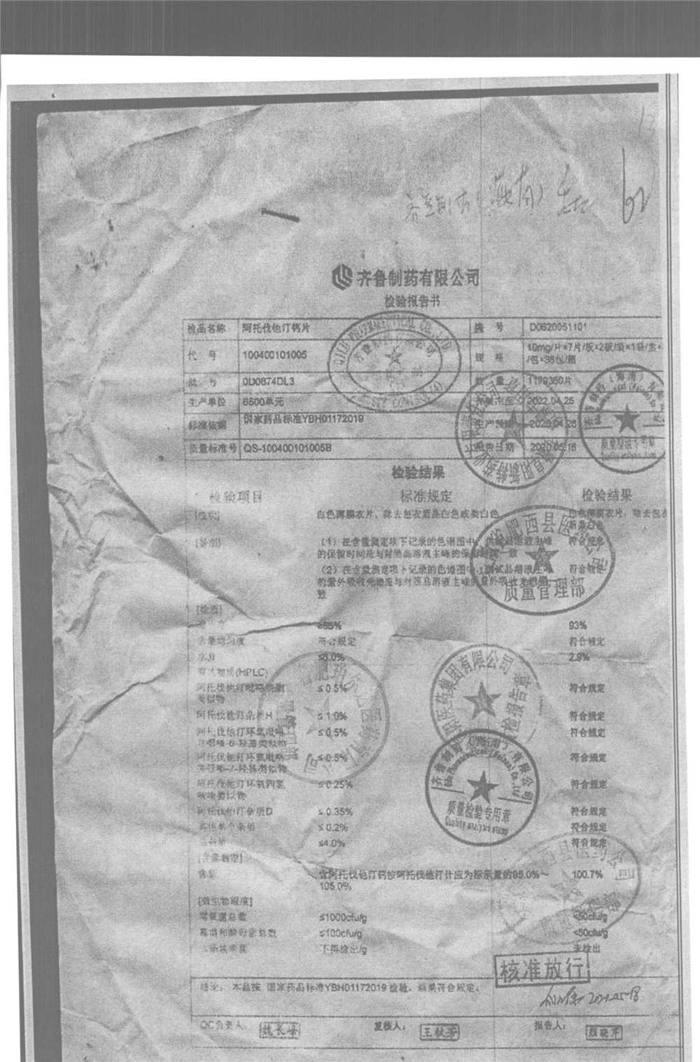 | 阿托伐他汀钙片 | 10mg*14片/袋/盒 | KC2H5002/3 | 查看详情 |