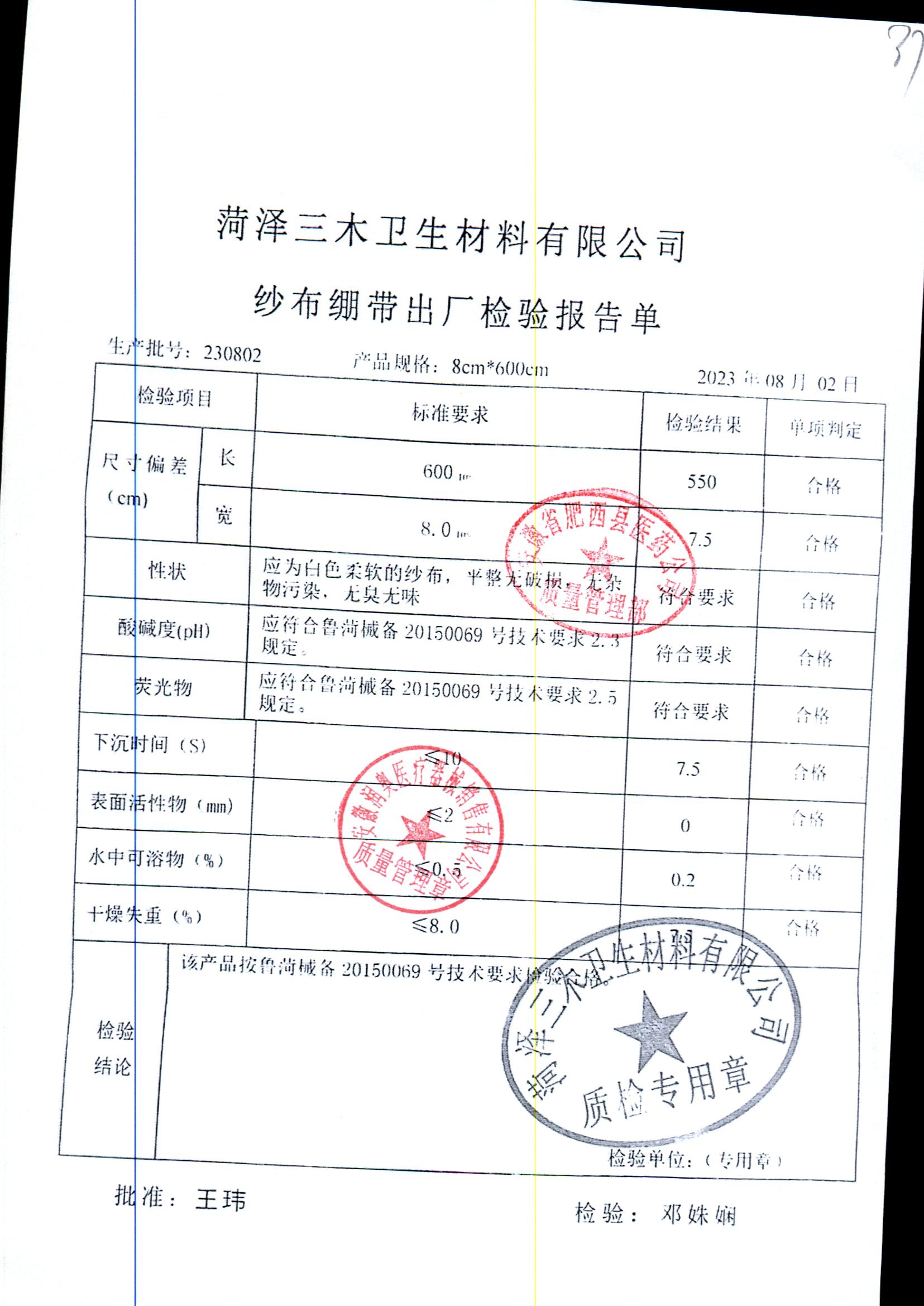 | 纱布绷带 | 8cm*600cm*10卷 | 230802 | 查看详情 |