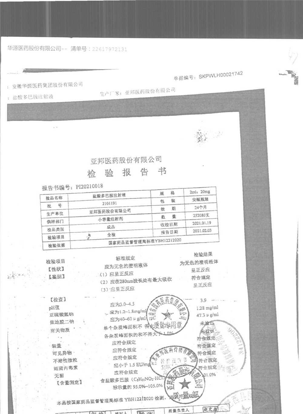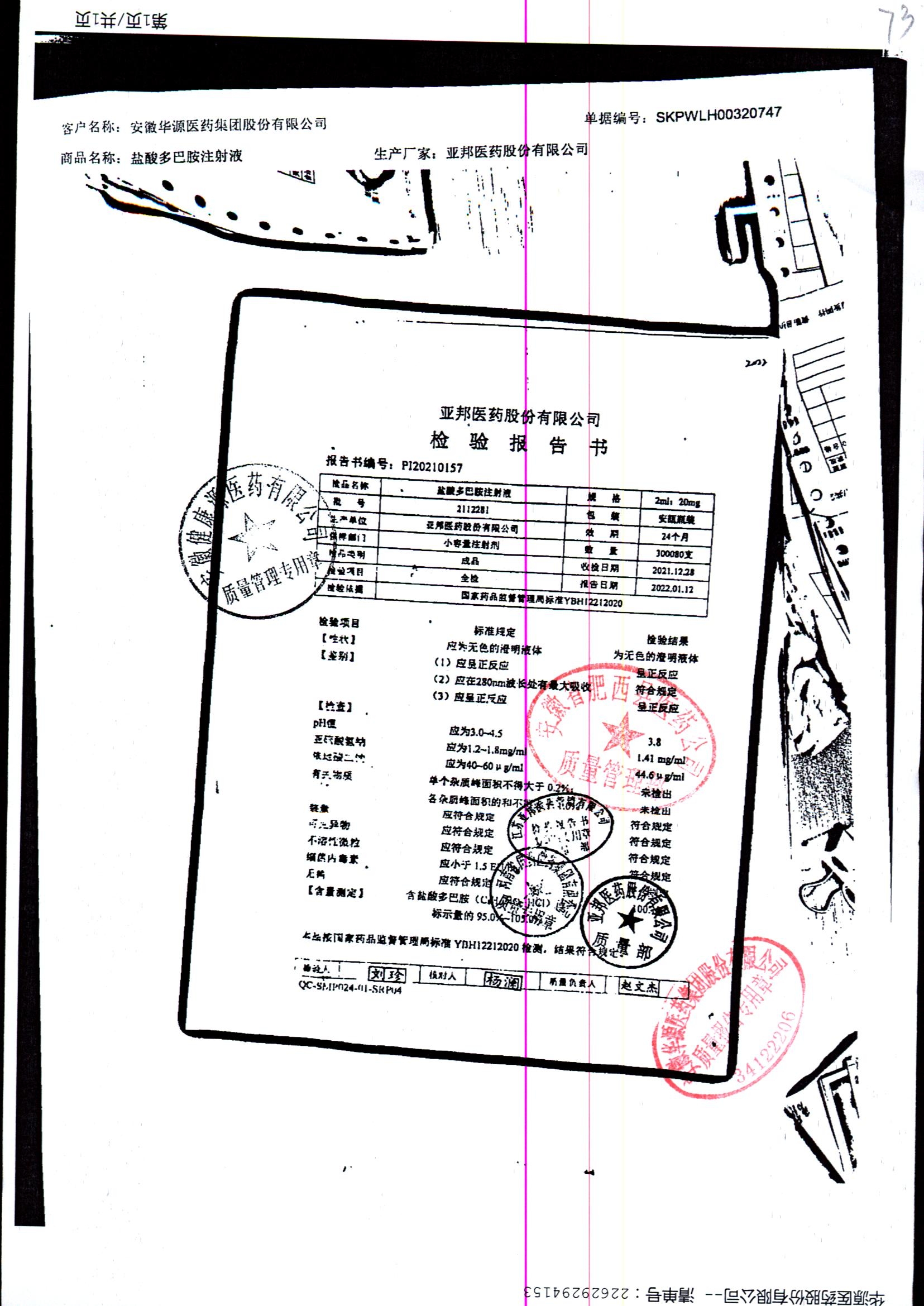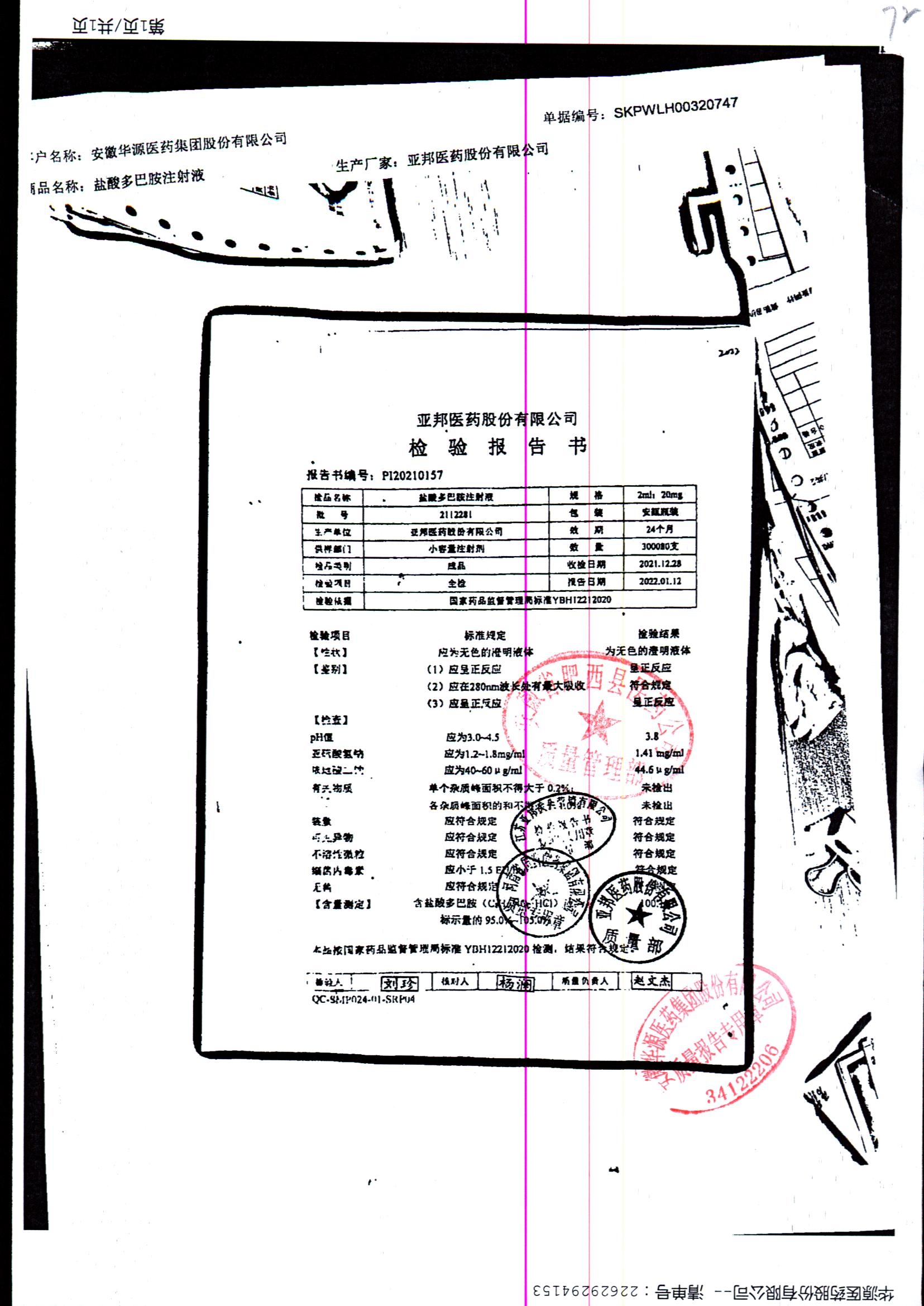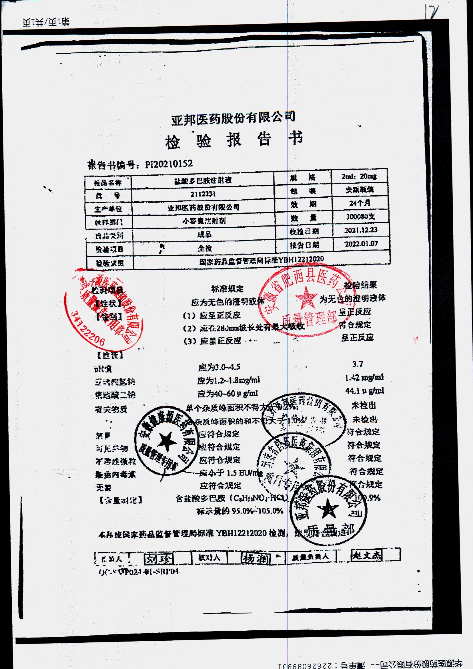 | 盐酸多巴胺注射液 | 2ml:20mg*10支 | 2112281/2 | 查看详情 |