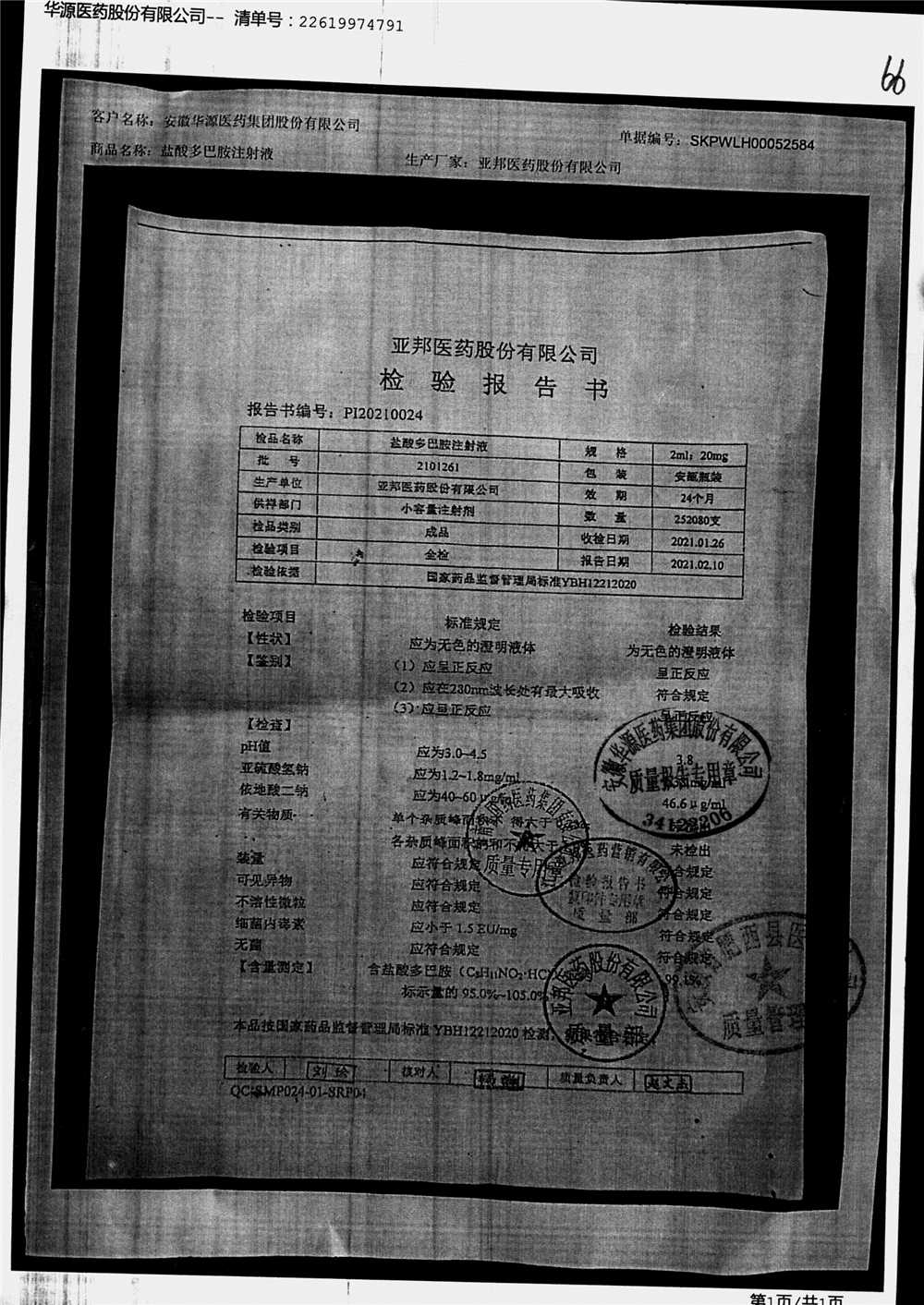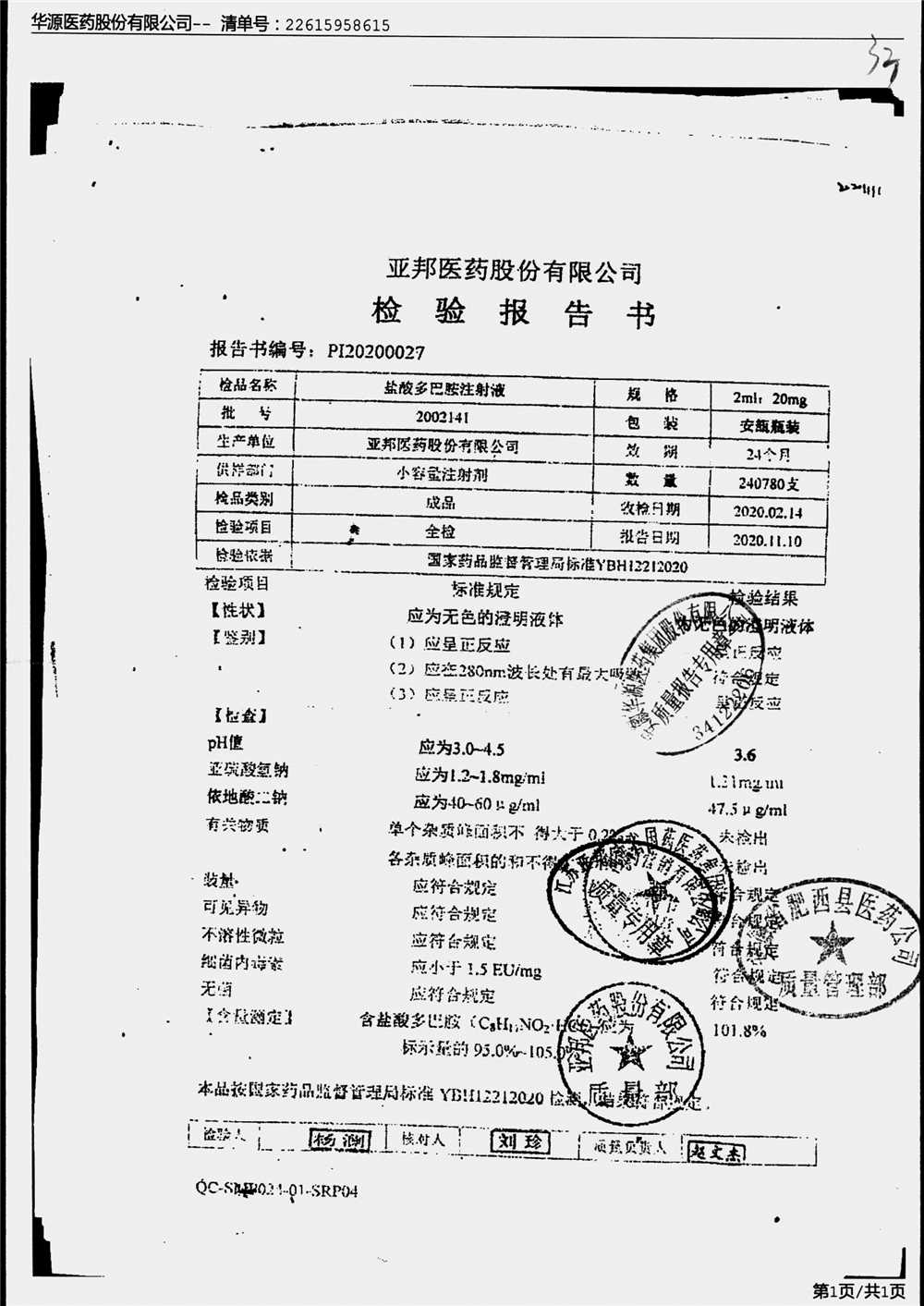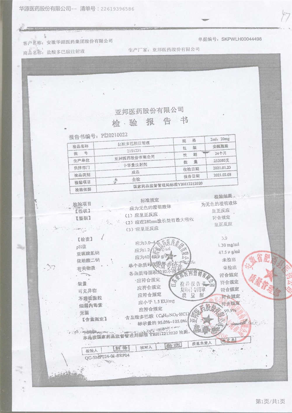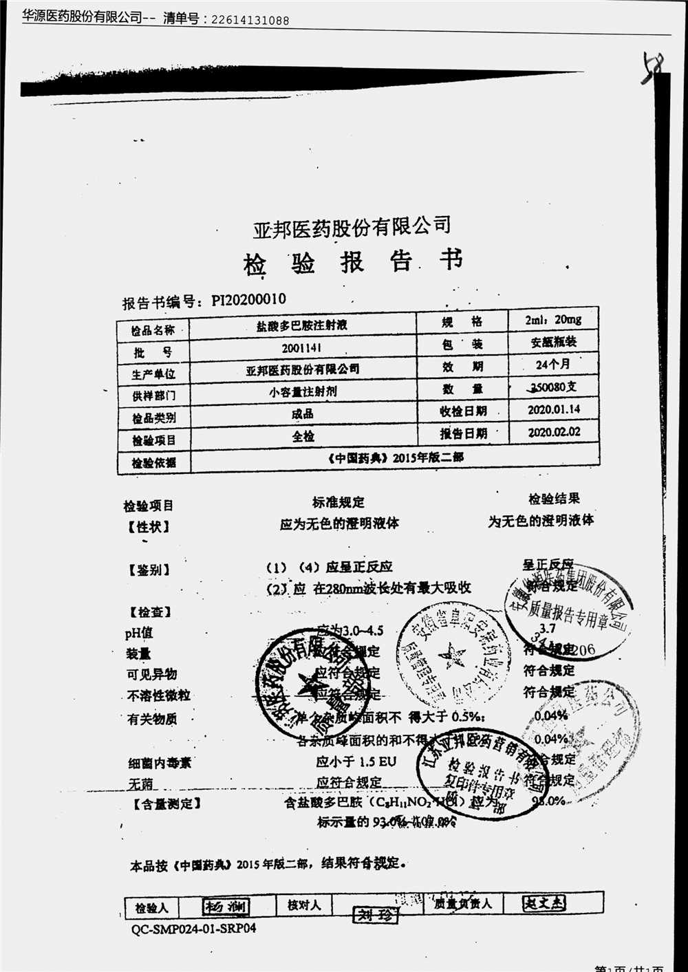 | 盐酸多巴胺注射液 | 2ml:20mg*10支 | 2112281/2 | 查看详情 |
