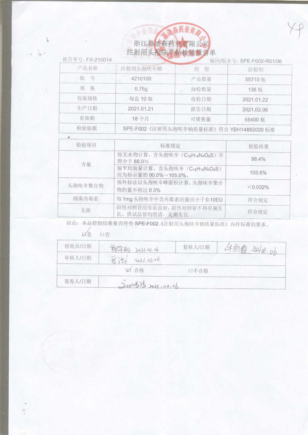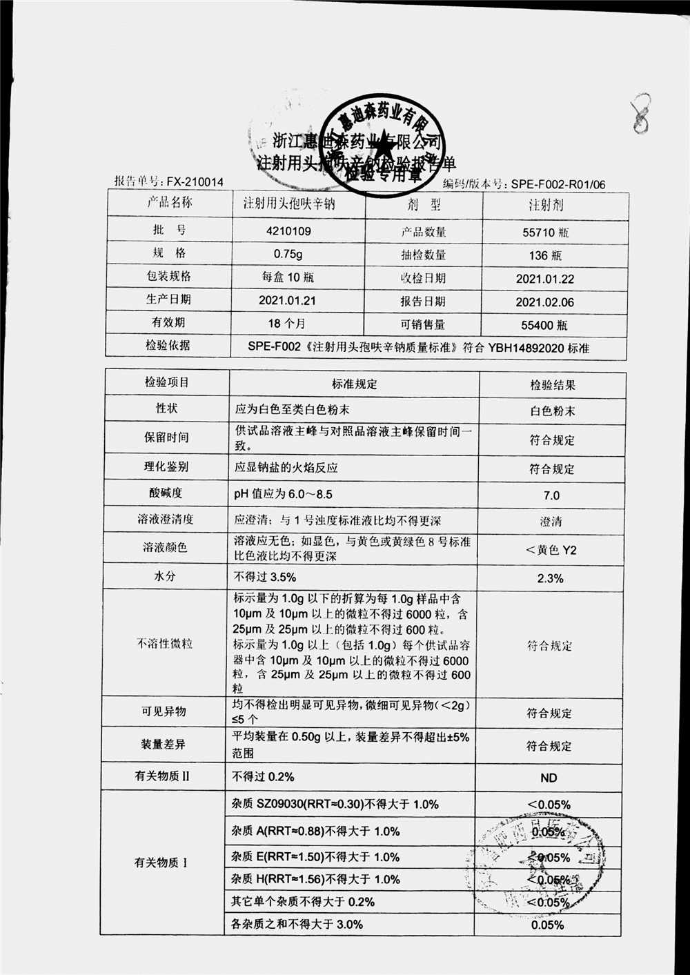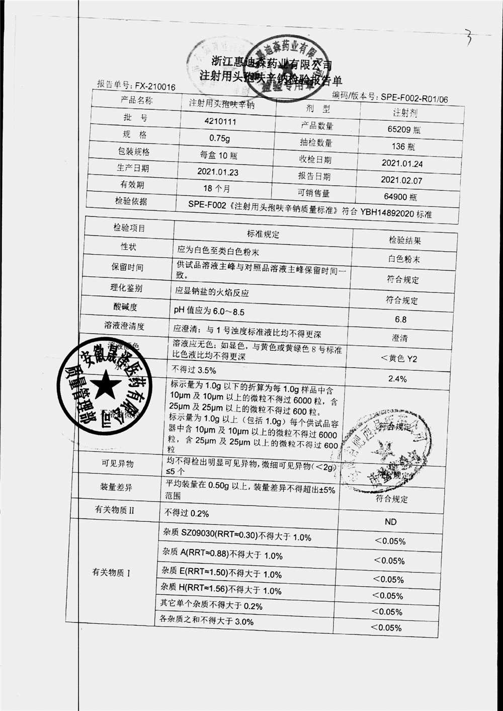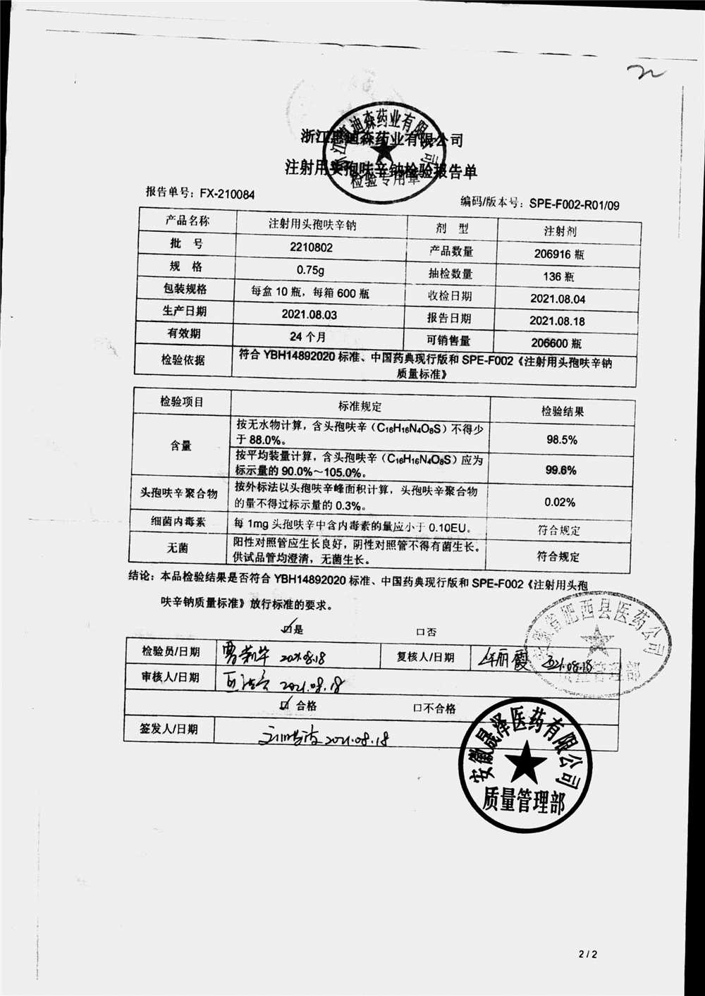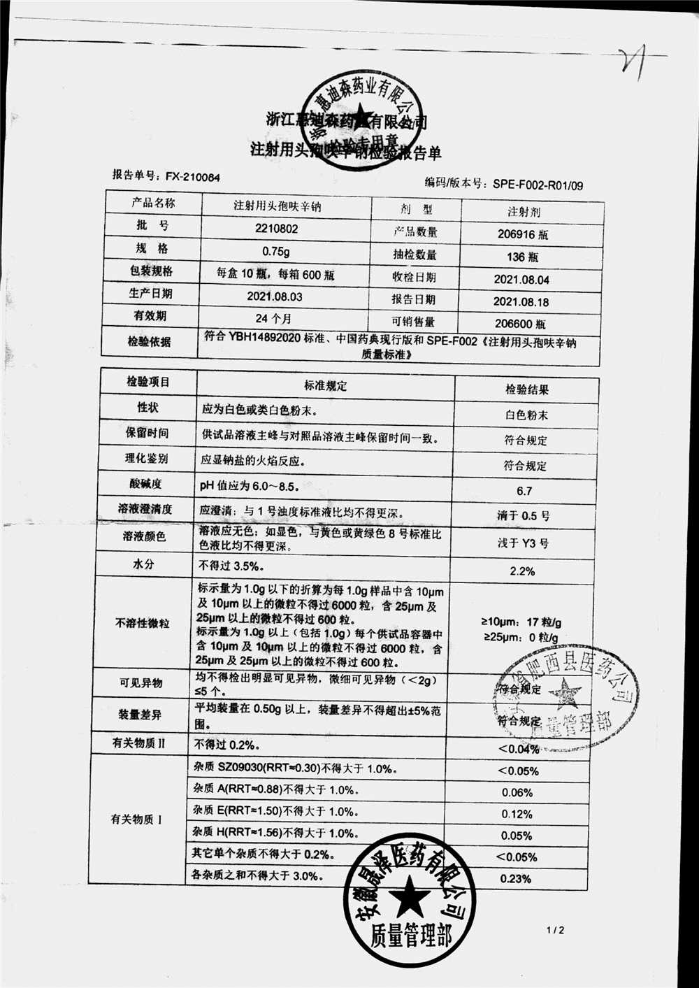 | 注射用头孢呋辛钠 | 0.75g*10瓶 | 2210802(1/2) | 查看详情 |