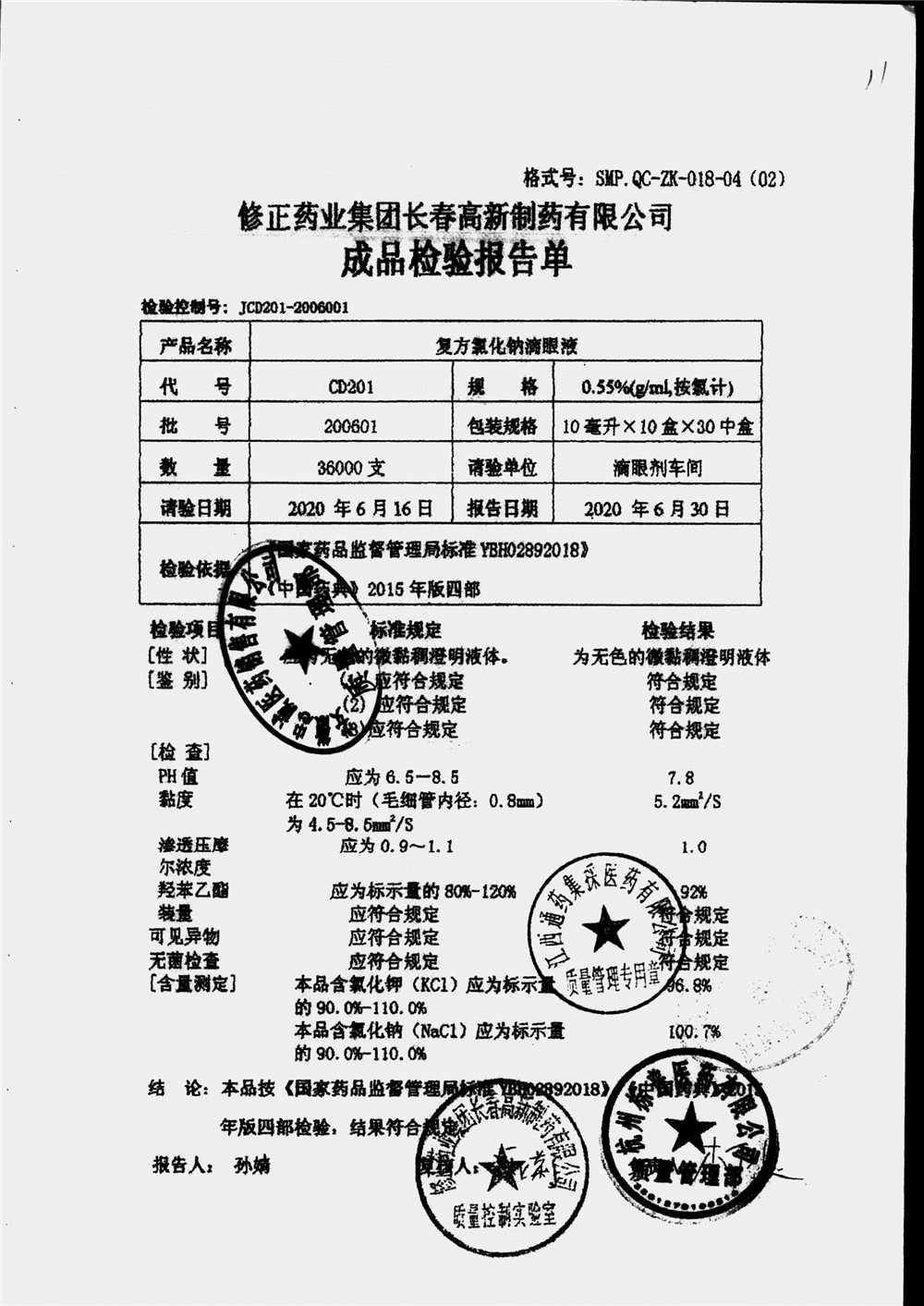 药检报告