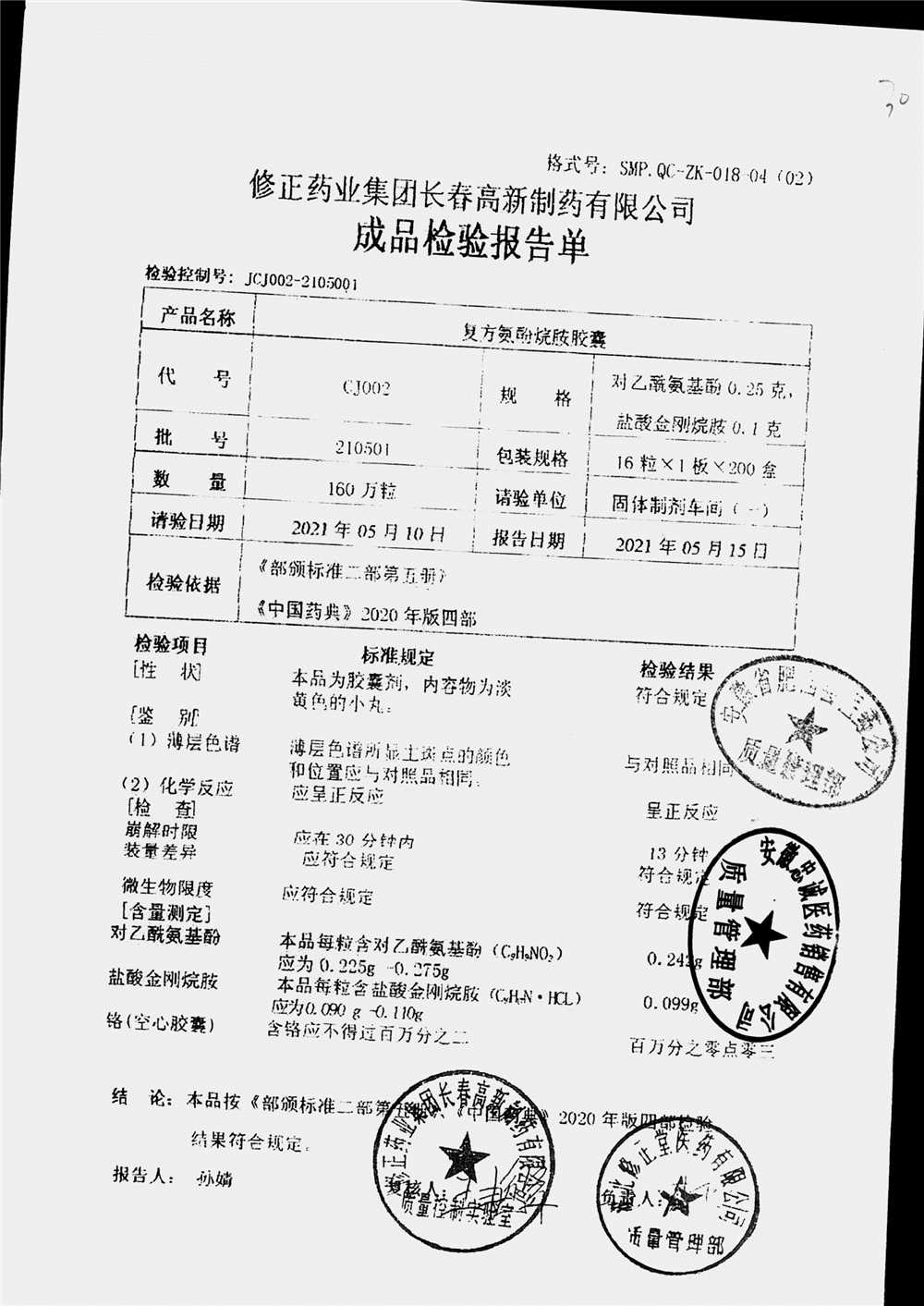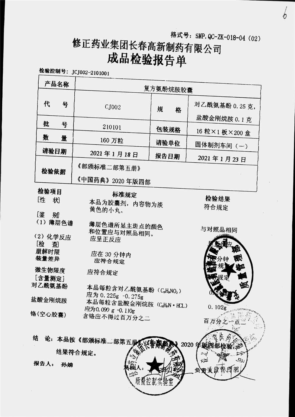 | 复方氨酚烷胺胶囊 | 复方*16s*1板 | 210501 | 查看详情 |