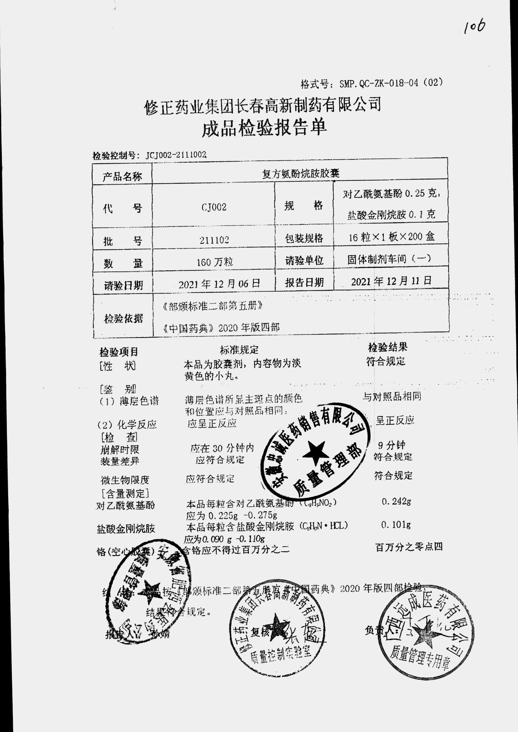 | 复方氨酚烷胺胶囊 | 复方*16s*1板 | 211102 | 查看详情 |