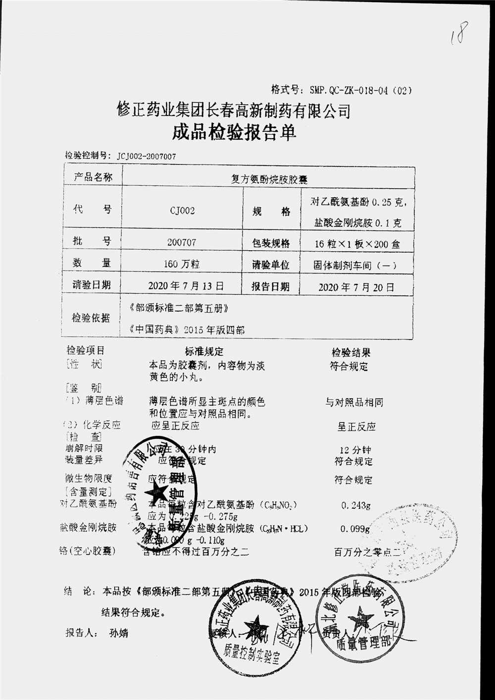 | 复方氨酚烷胺胶囊 | 复方*16s*1板 | 200707 | 查看详情 |