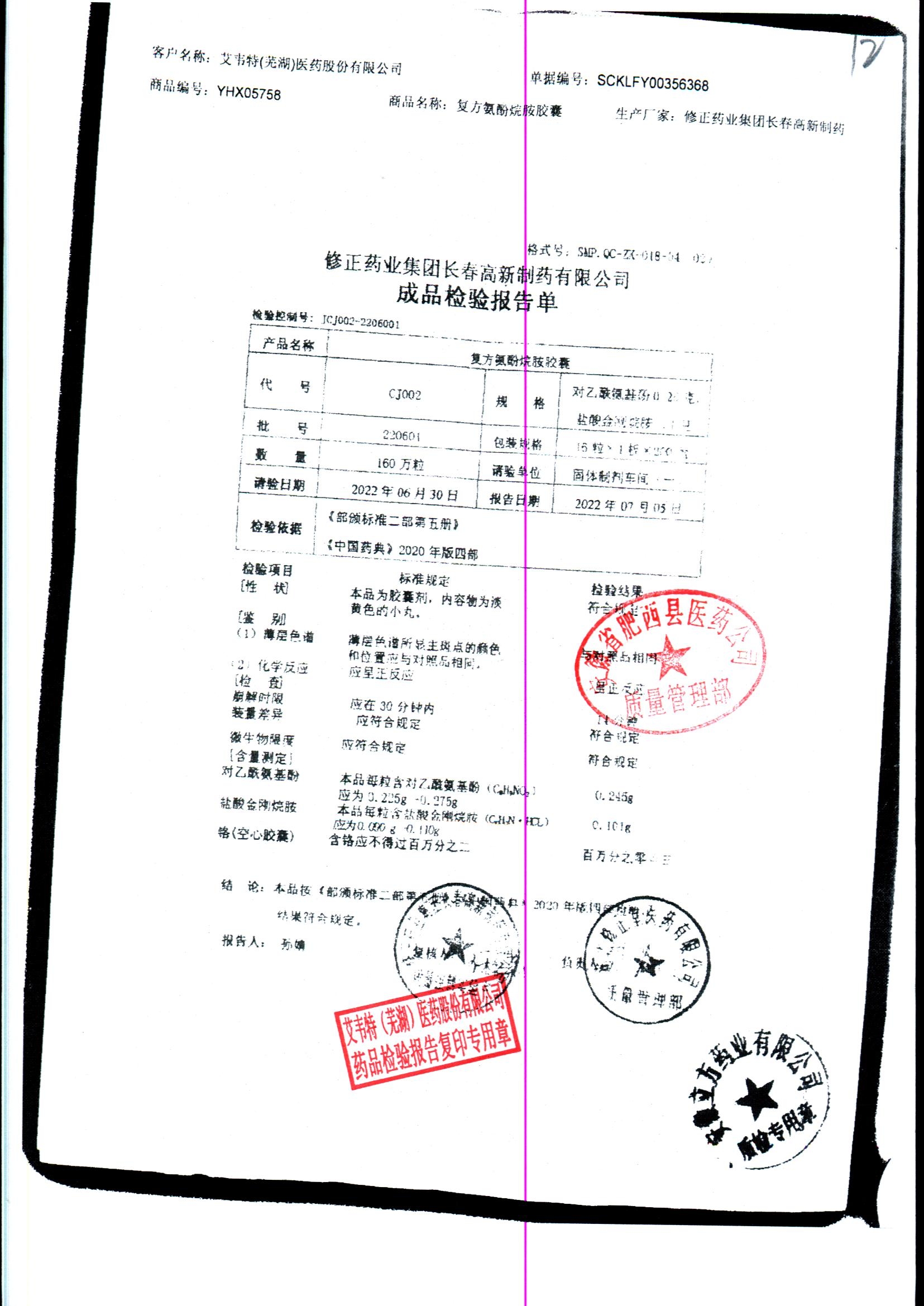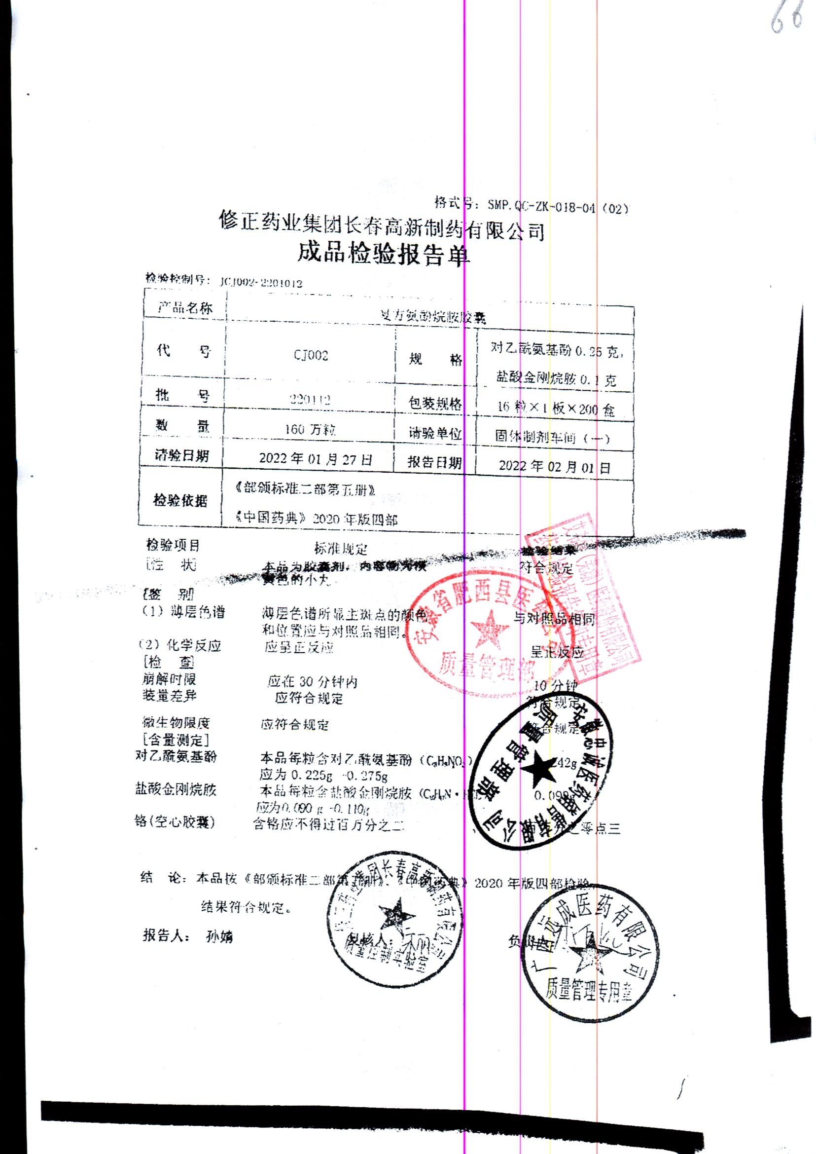 | 复方氨酚烷胺胶囊 | 复方*16s*1板 | 220601 | 查看详情 |