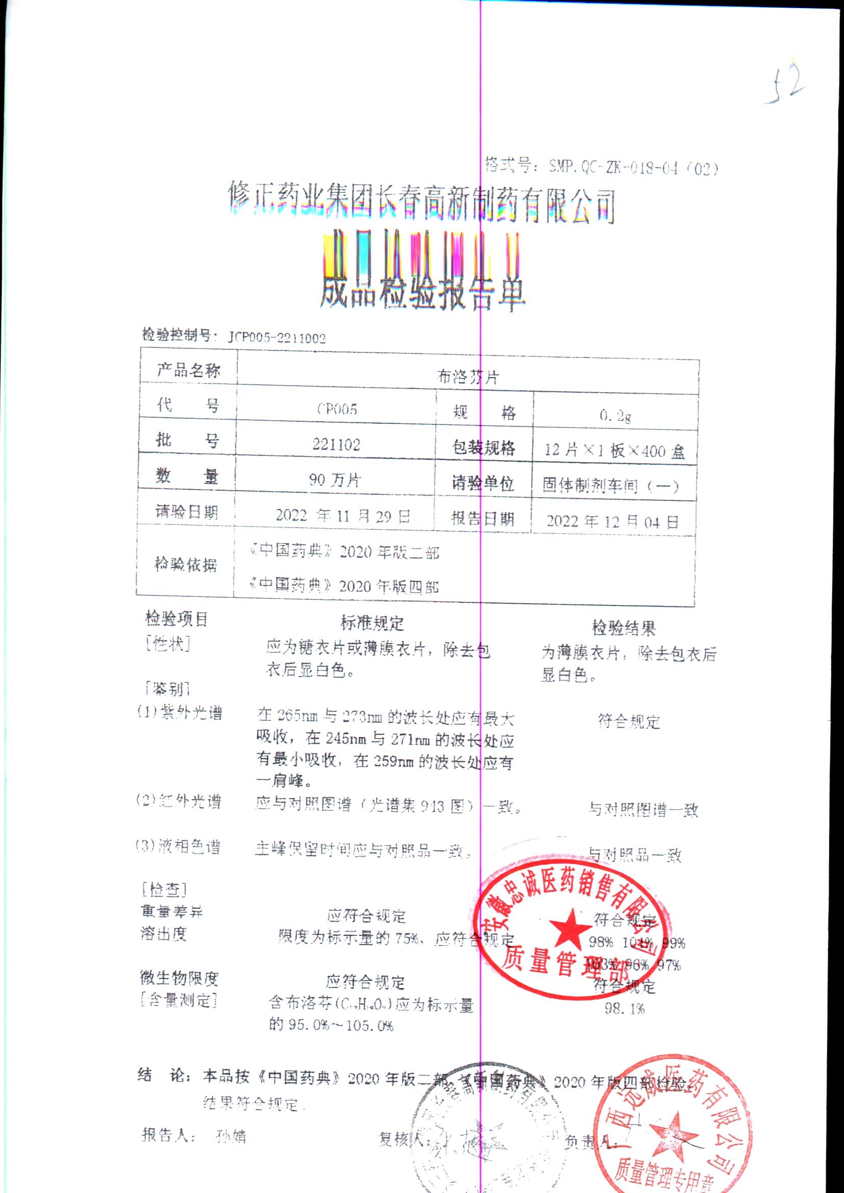 | 布洛芬片 | 0.2g*12片*1板 | 210801 | 查看详情 |
