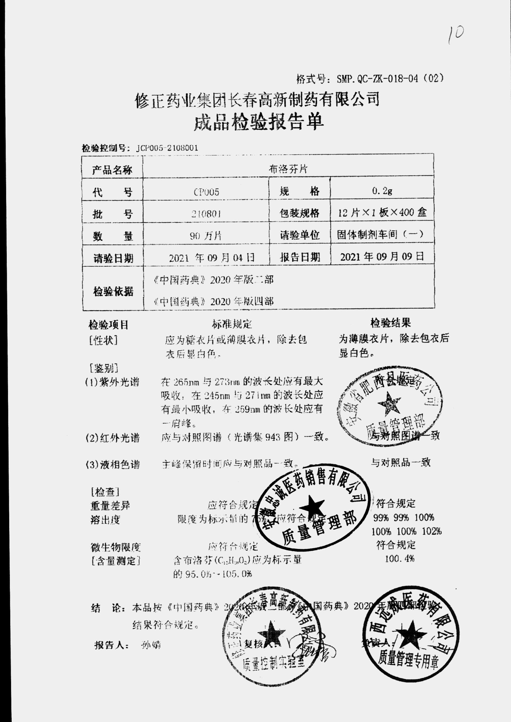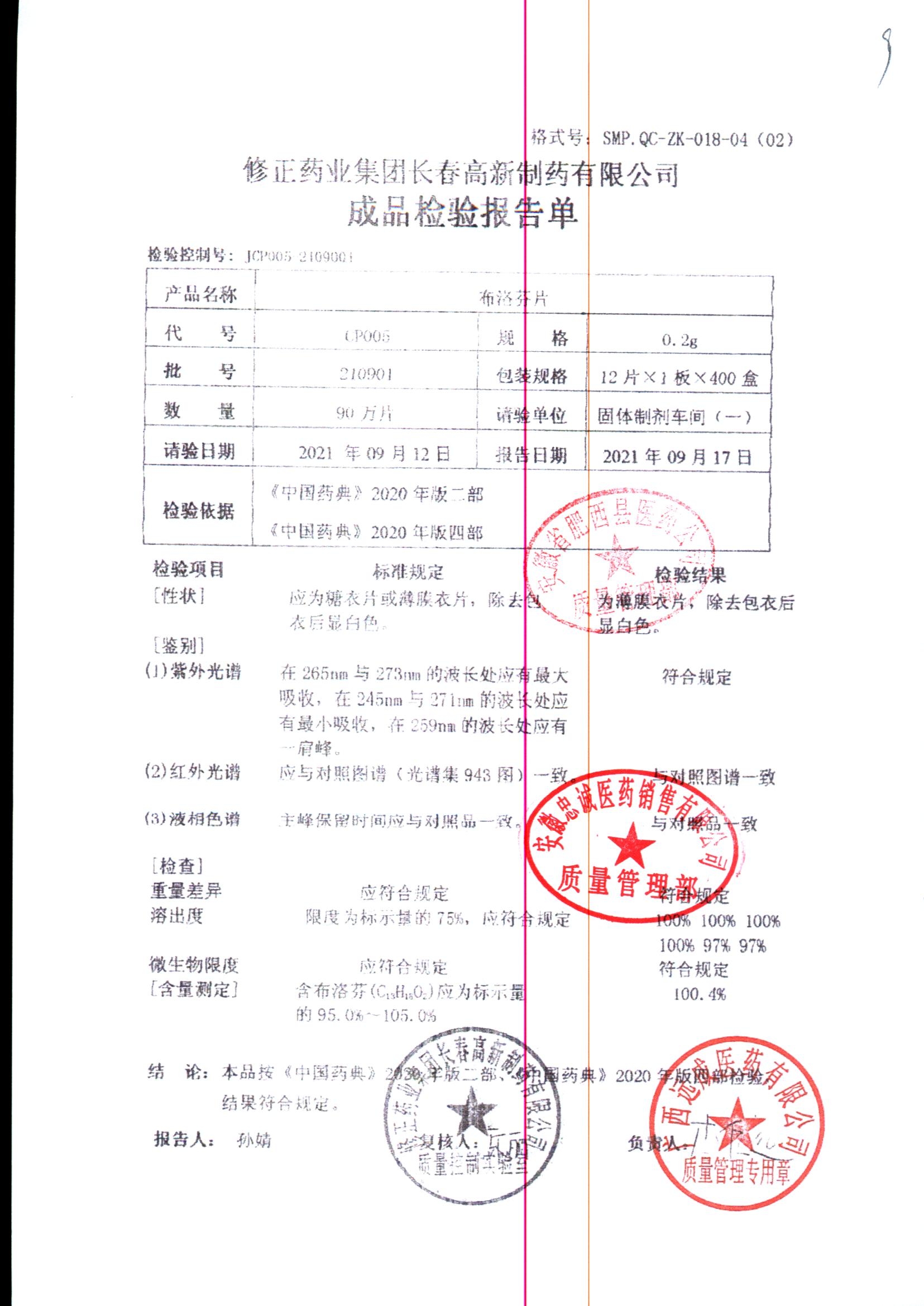 | 布洛芬片 | 0.2g*12片*1板 | 210901 | 查看详情 |