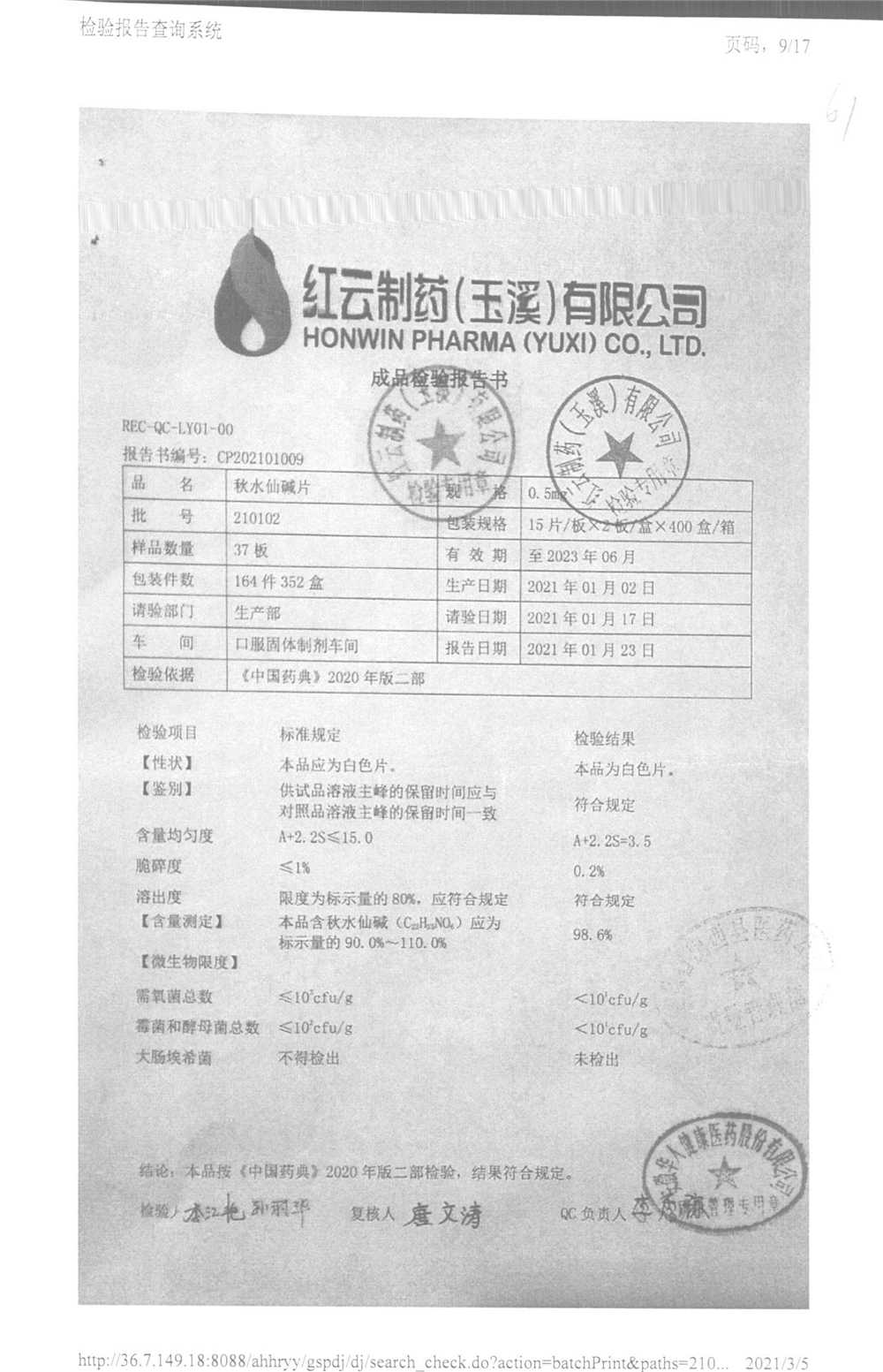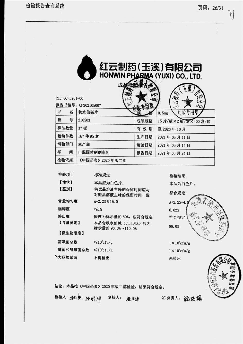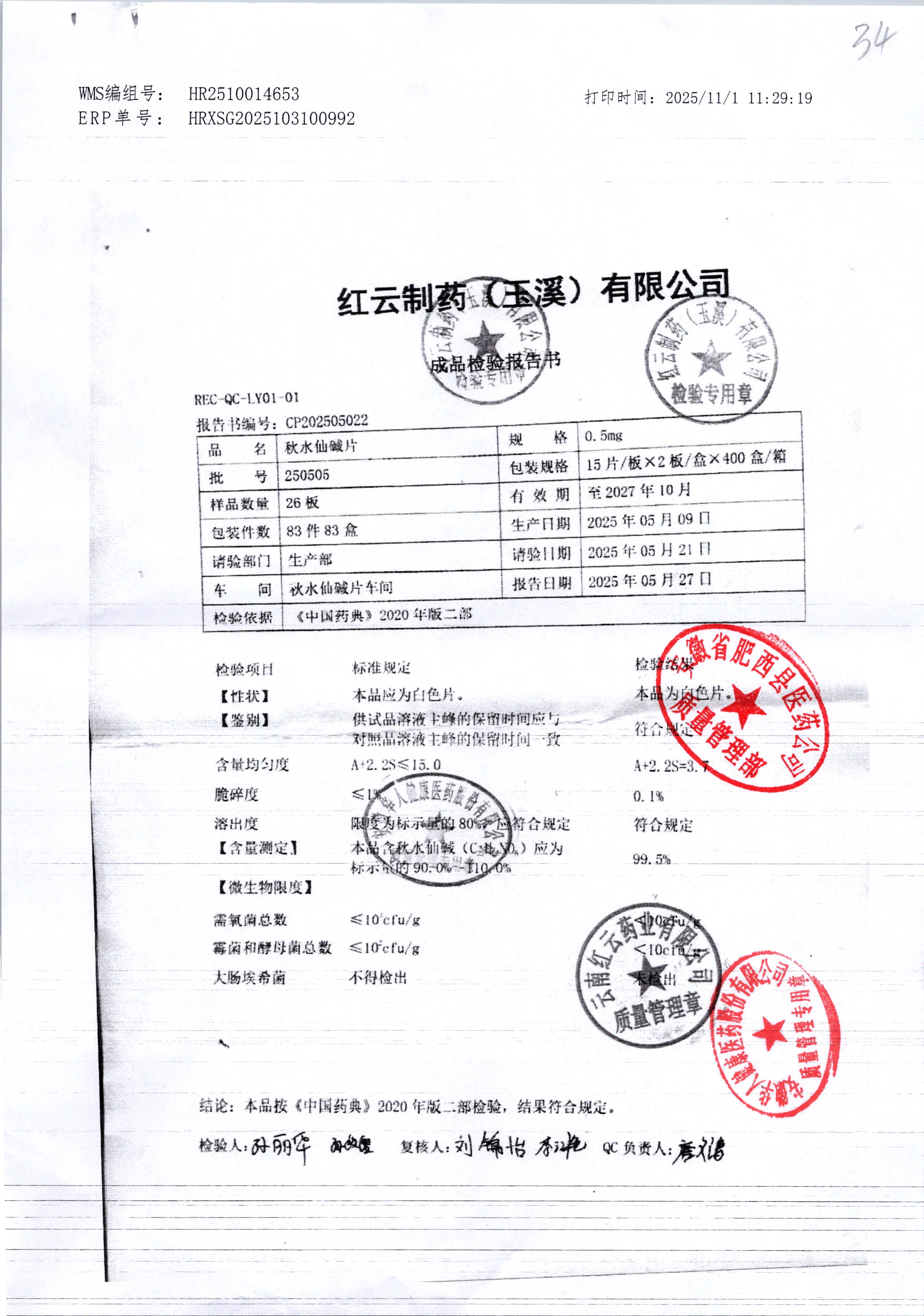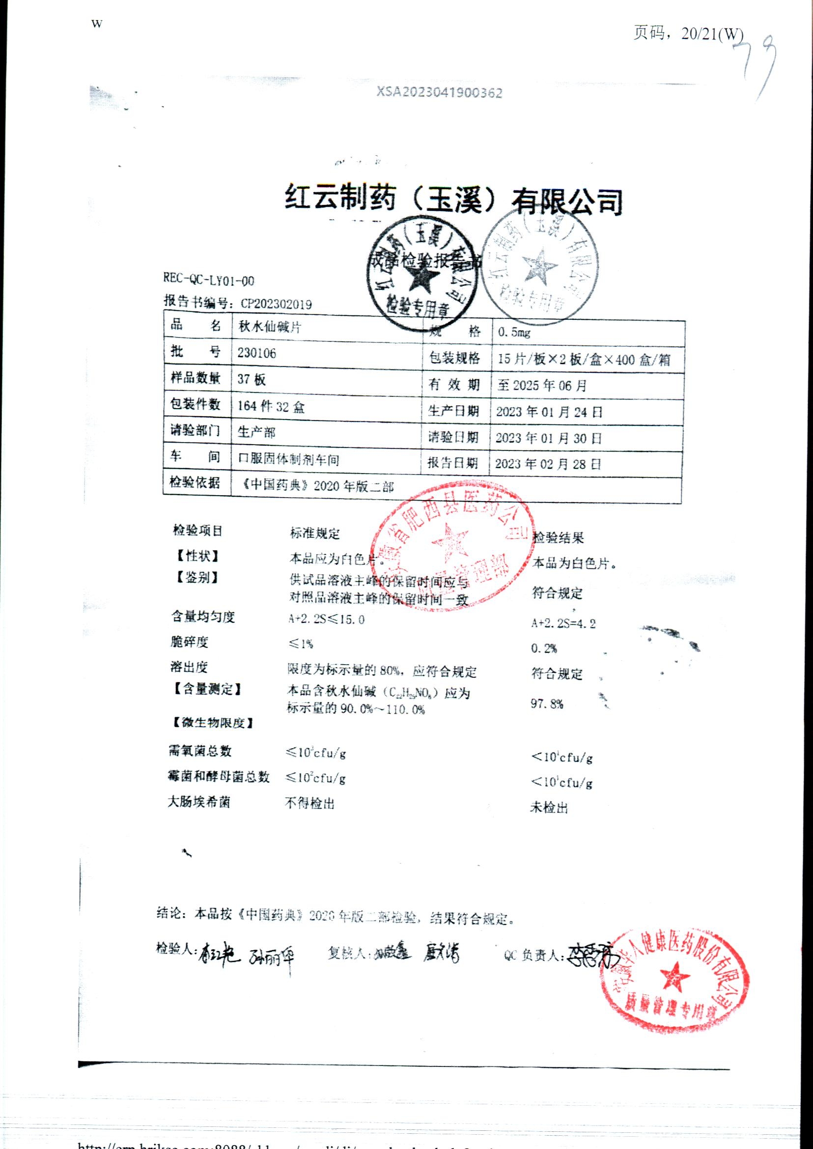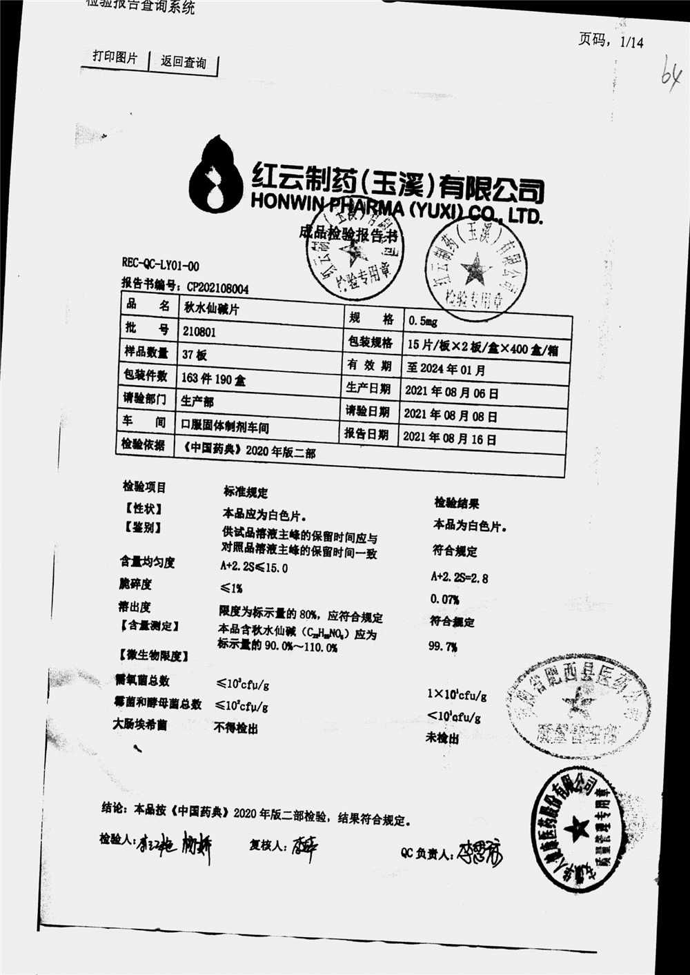 | 秋水仙碱片 | 0.5mg*15片*2板 | 210801 | 查看详情 |