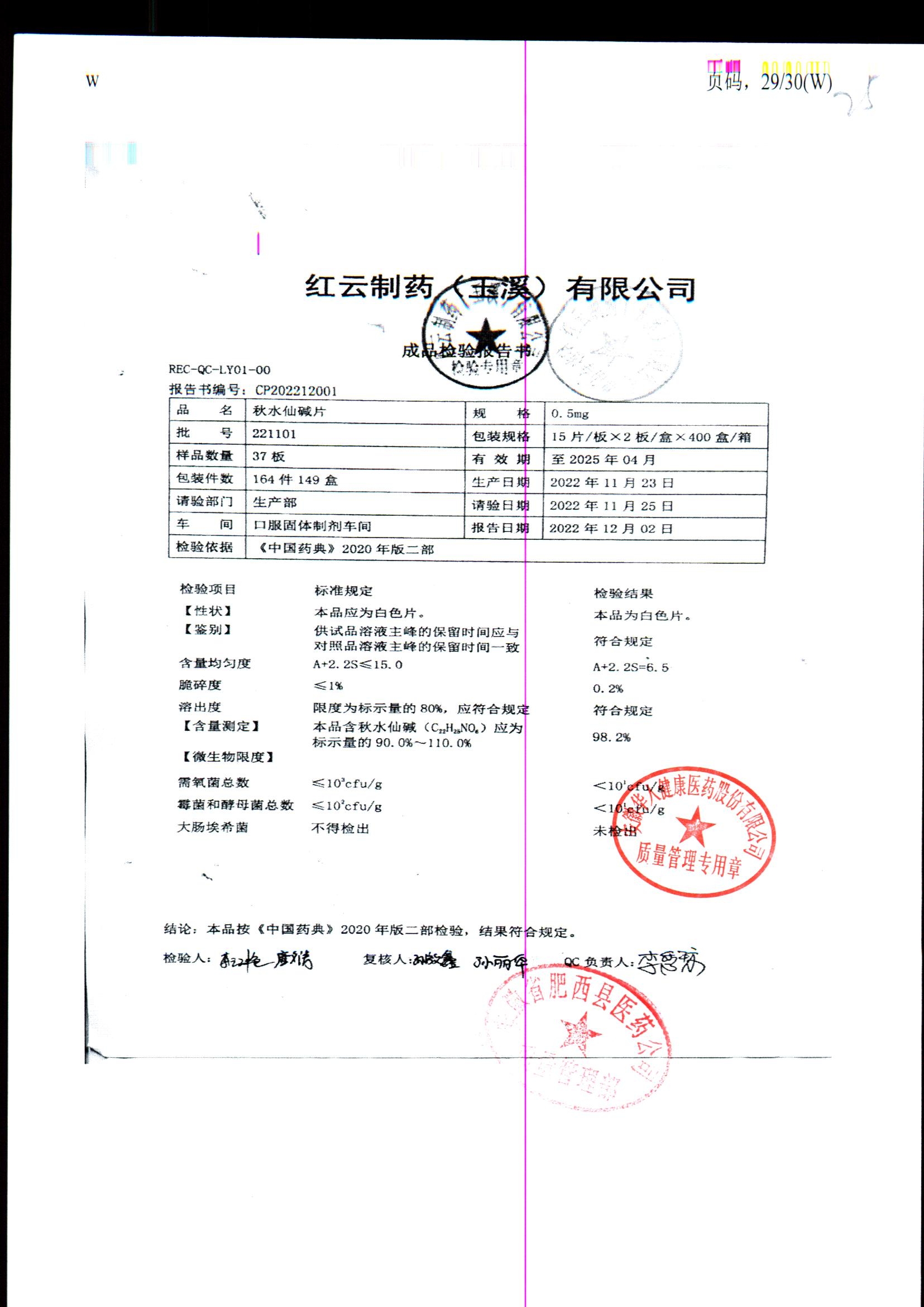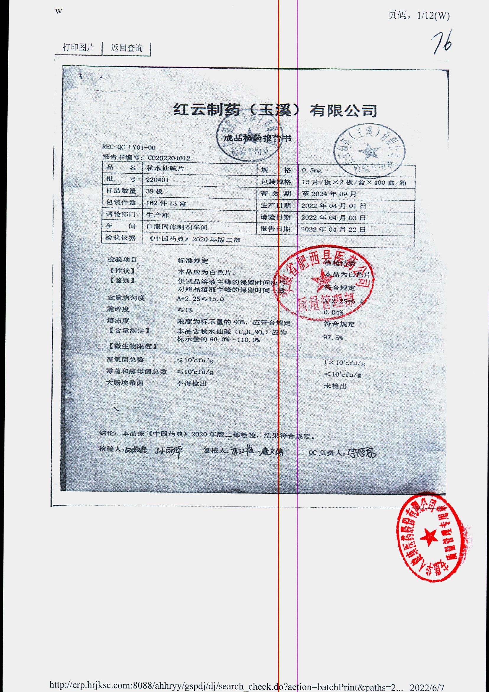 | 秋水仙碱片 | 0.5mg*15片*2板 | 220401 | 查看详情 |
