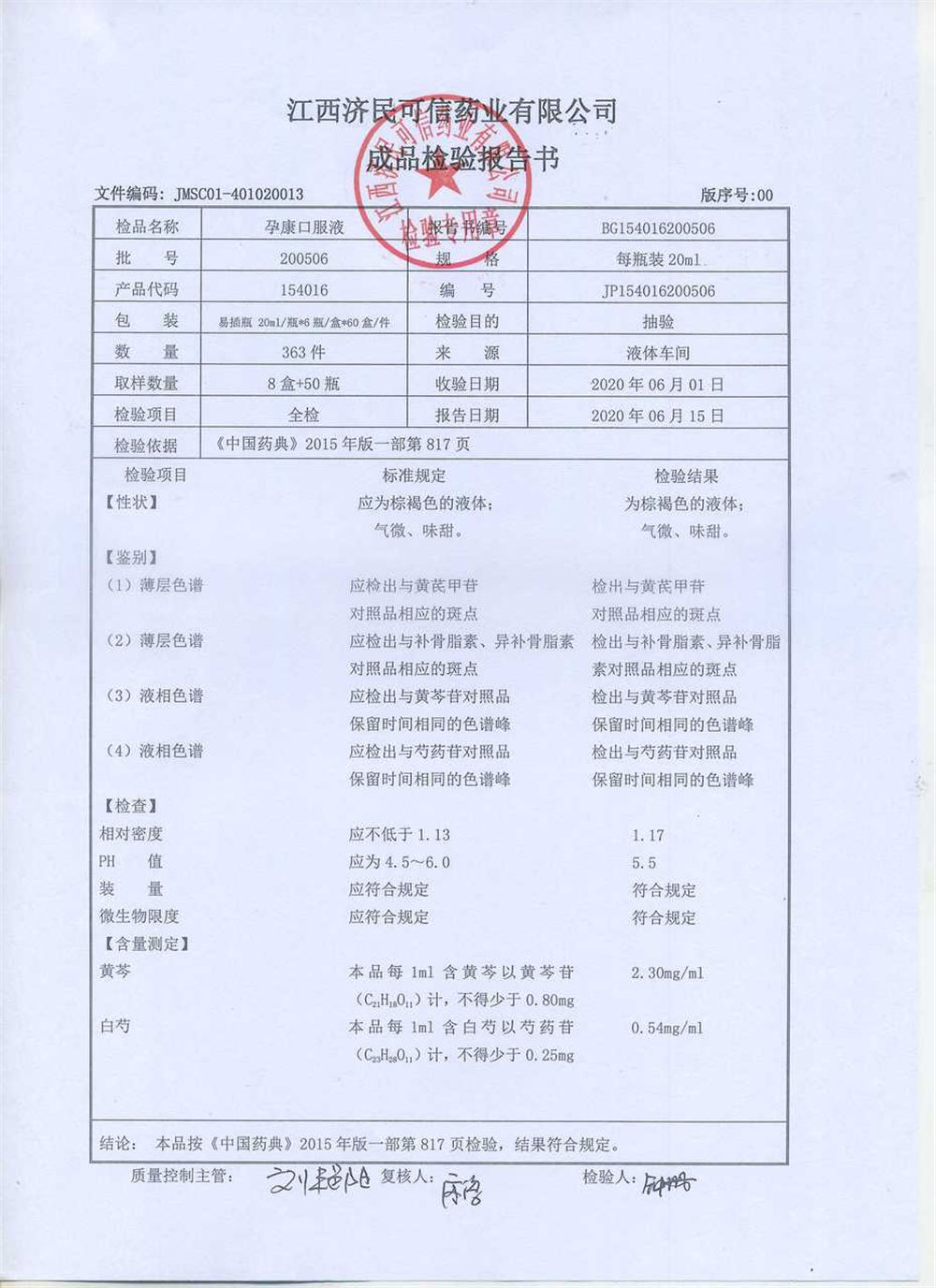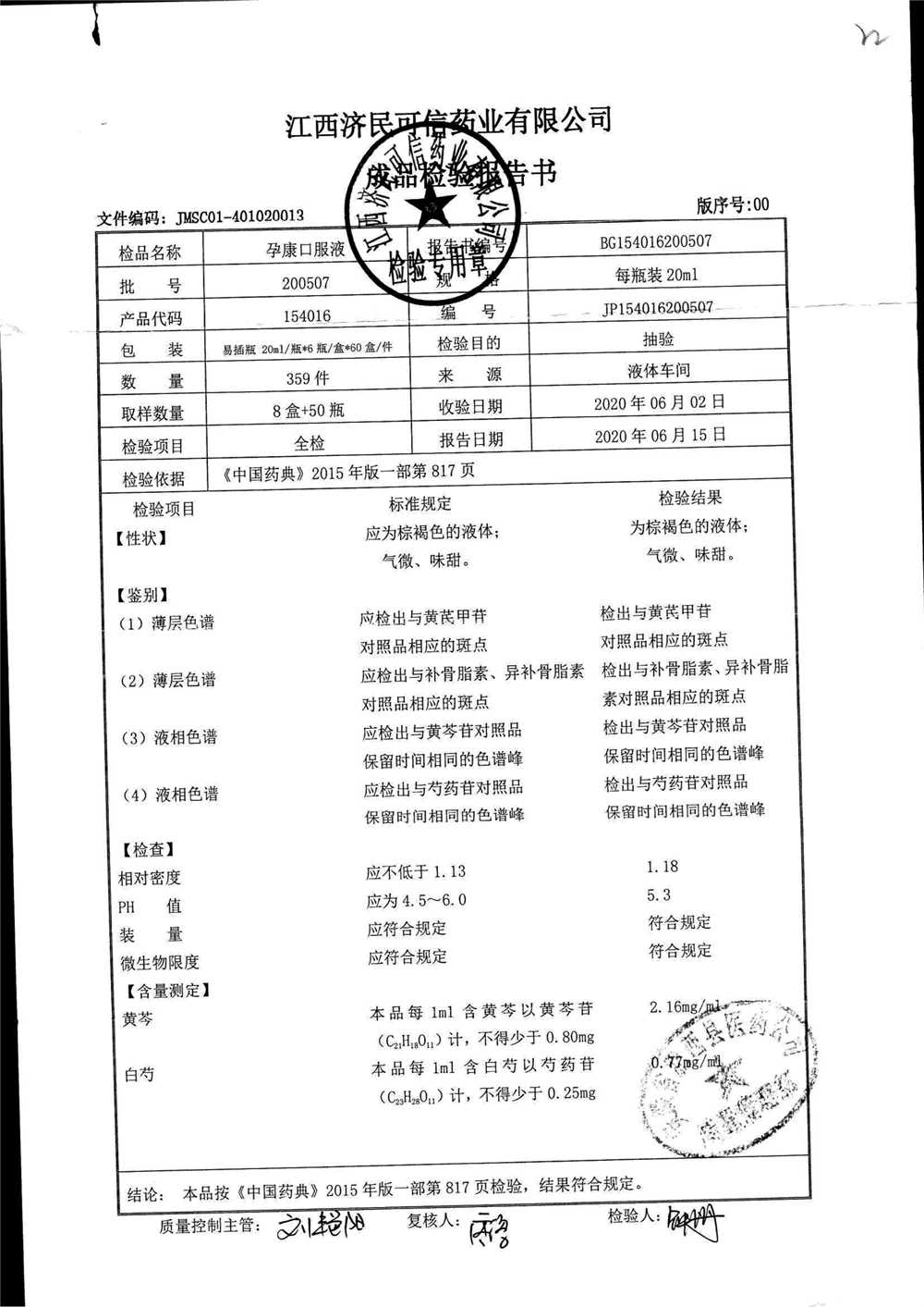 药检报告