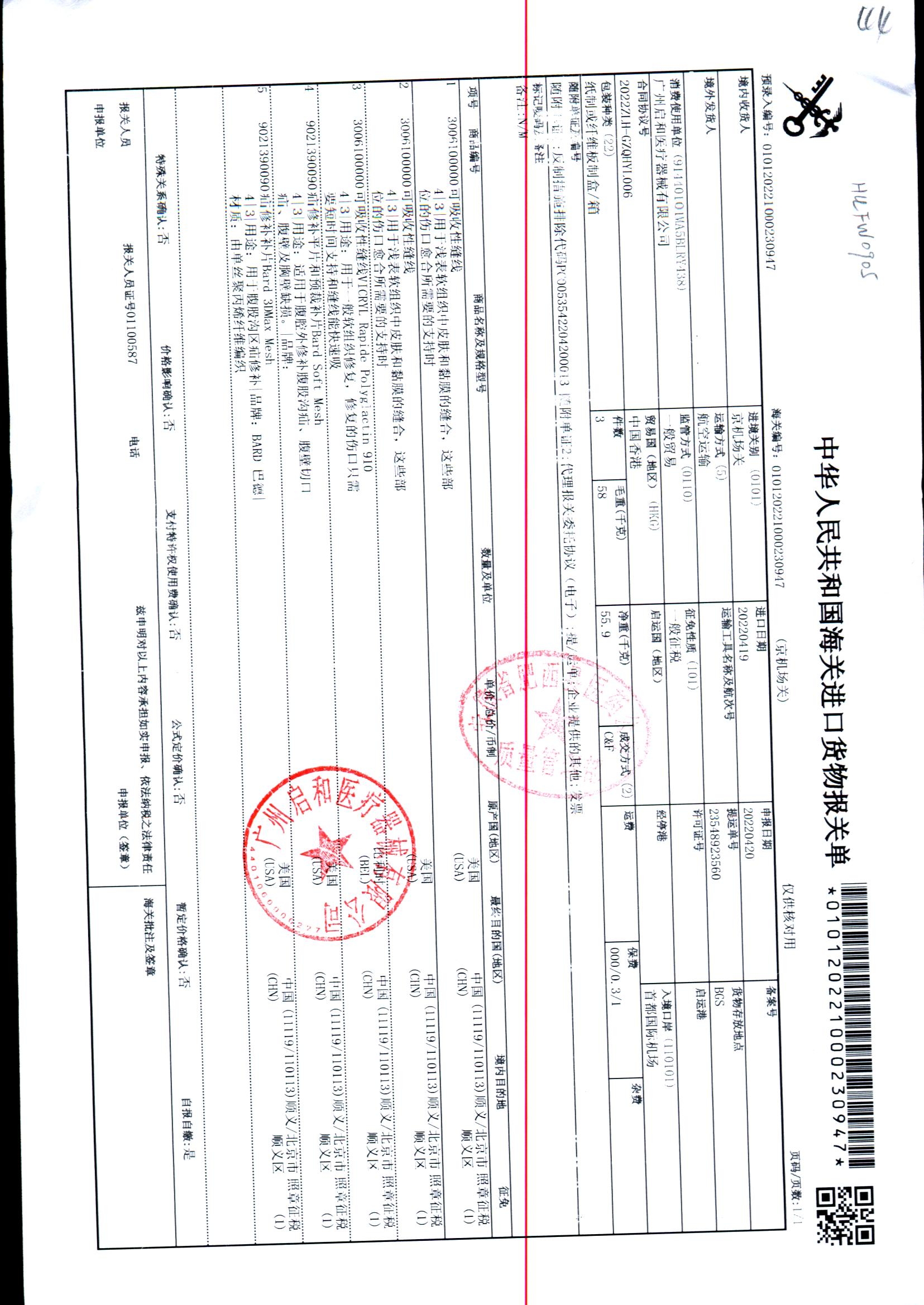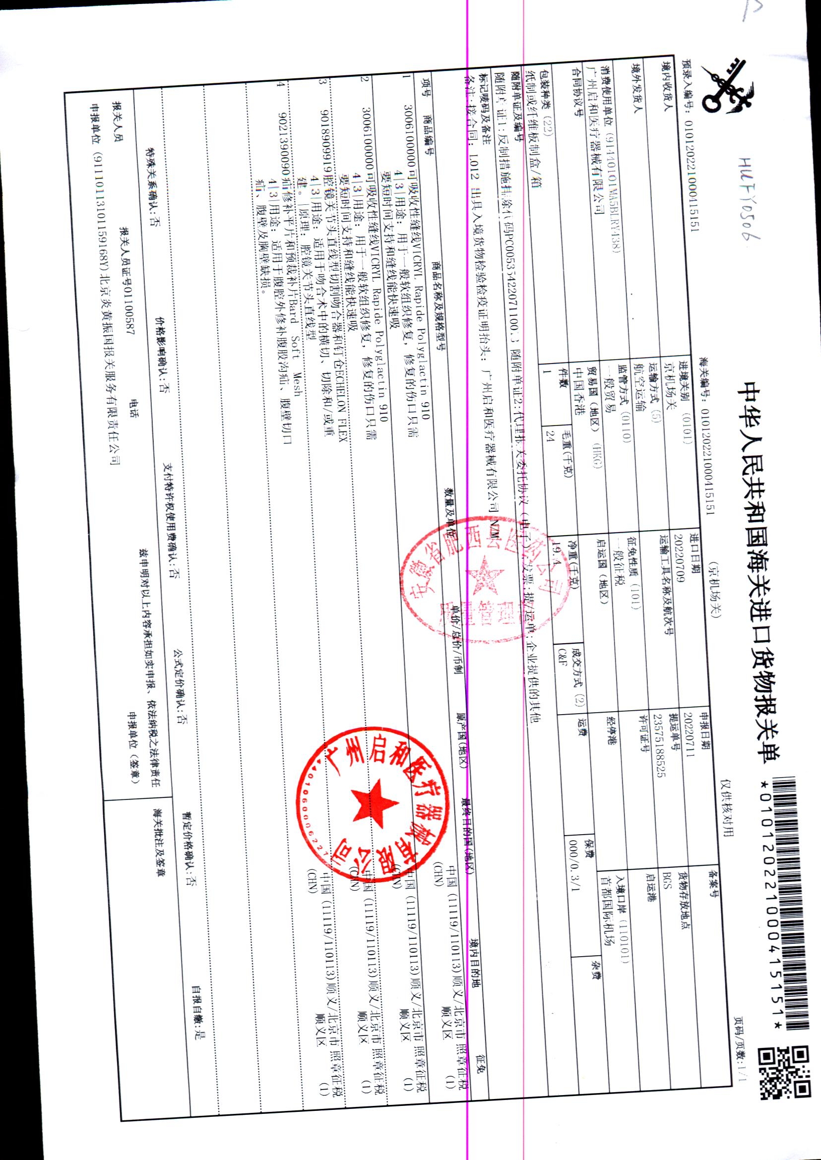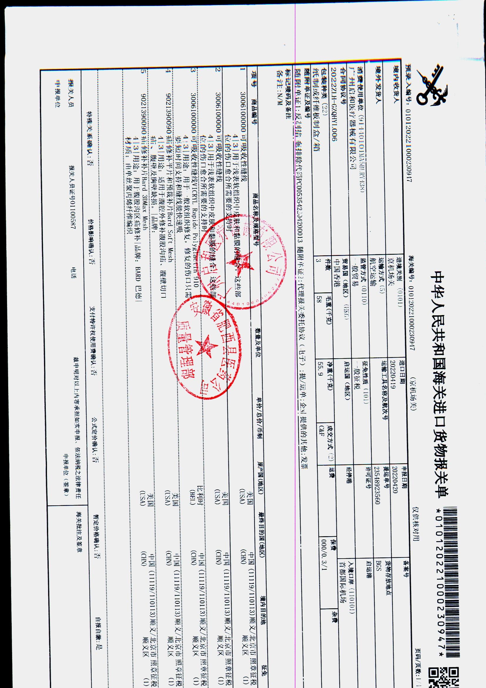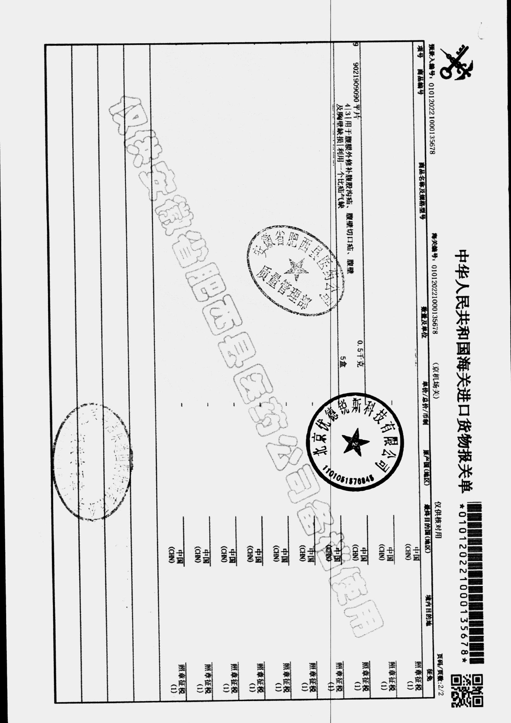 | 疝修补平片和预裁补片 | 10cm*15cm(型号:0117010) | 进口货物报关单 | 查看详情 |