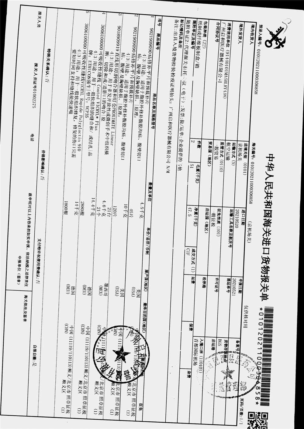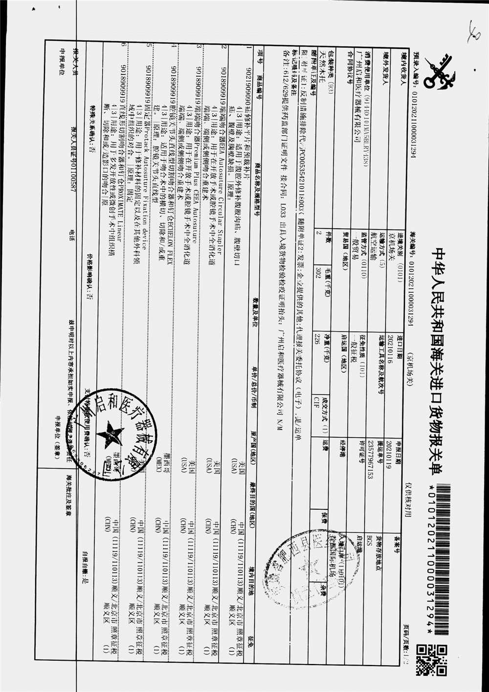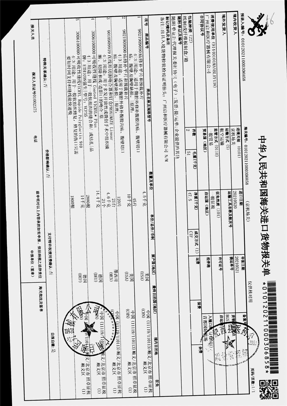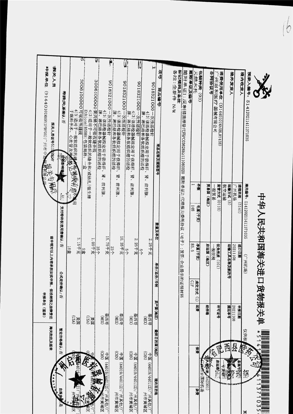 | 疝修补平片和预裁补片 | 10cm*15cm(型号:0117010) | 进口货物报关单 | 查看详情 |