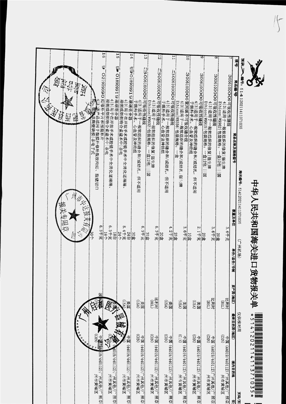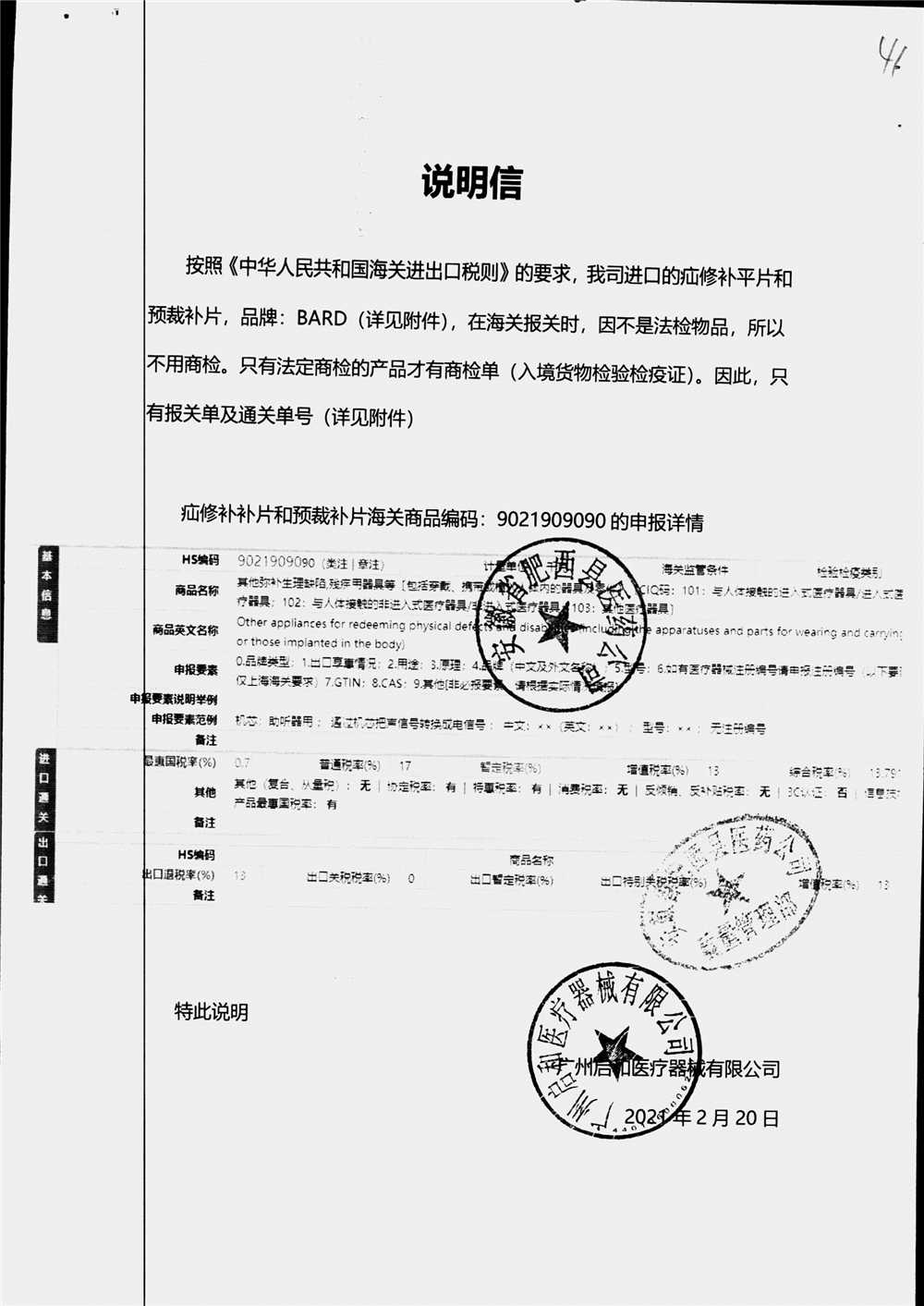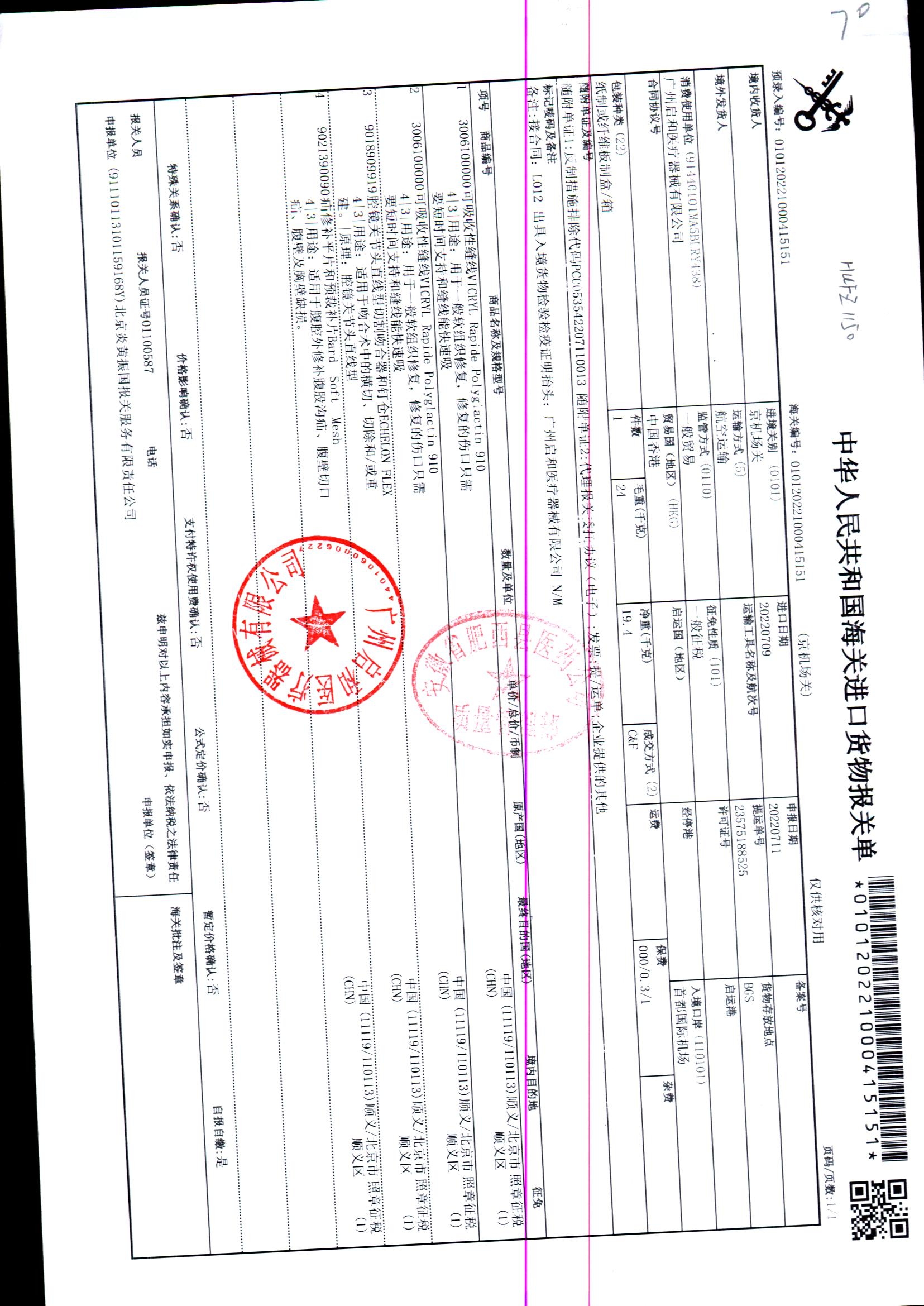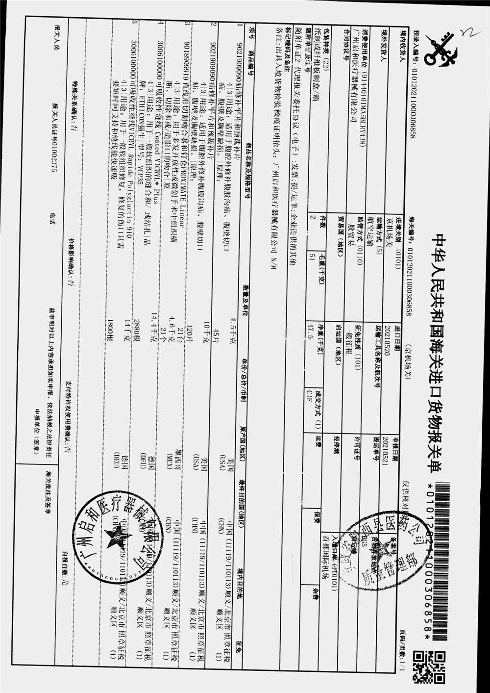 | 疝修补平片和预裁补片 | 10cm*15cm(型号:0117010) | 进口货物报关单 | 查看详情 |