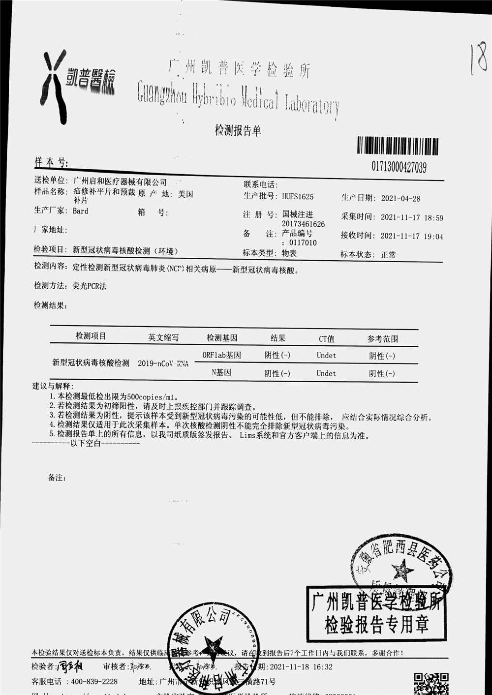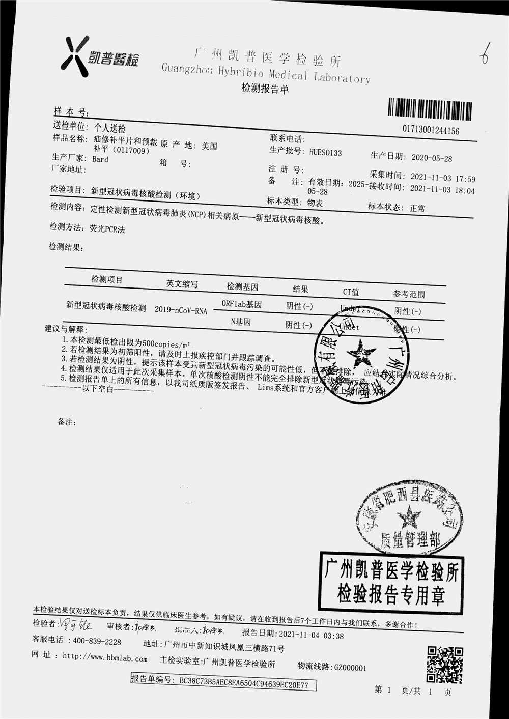 | 疝修补平片和预裁补片 | 10cm*15cm(型号:0117010) | 检验报告单HUEX1028 | 查看详情 |