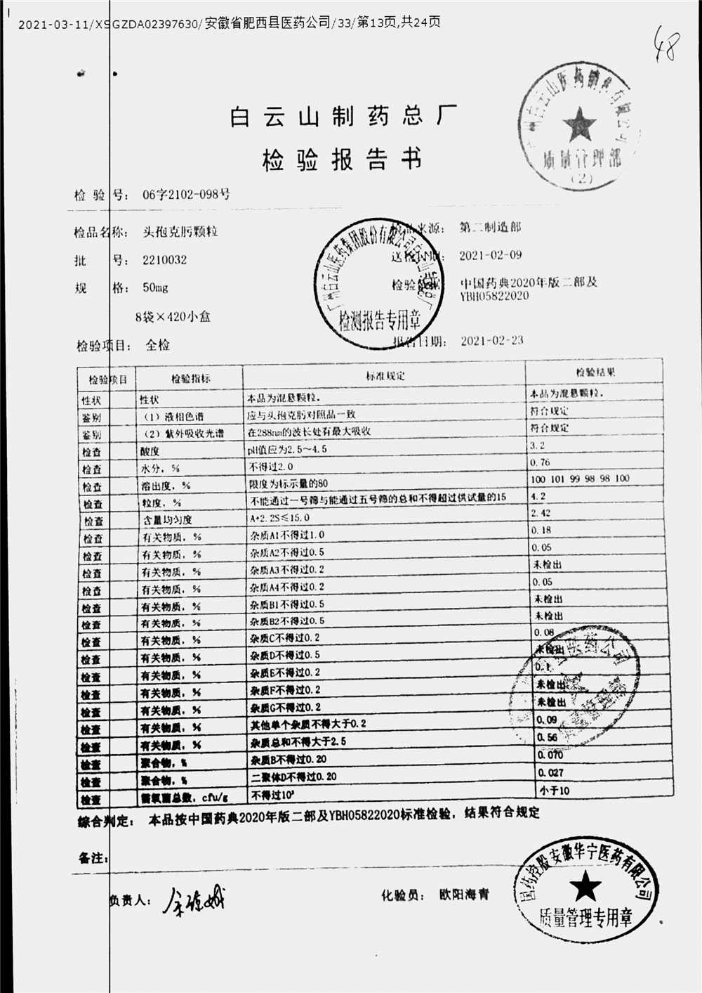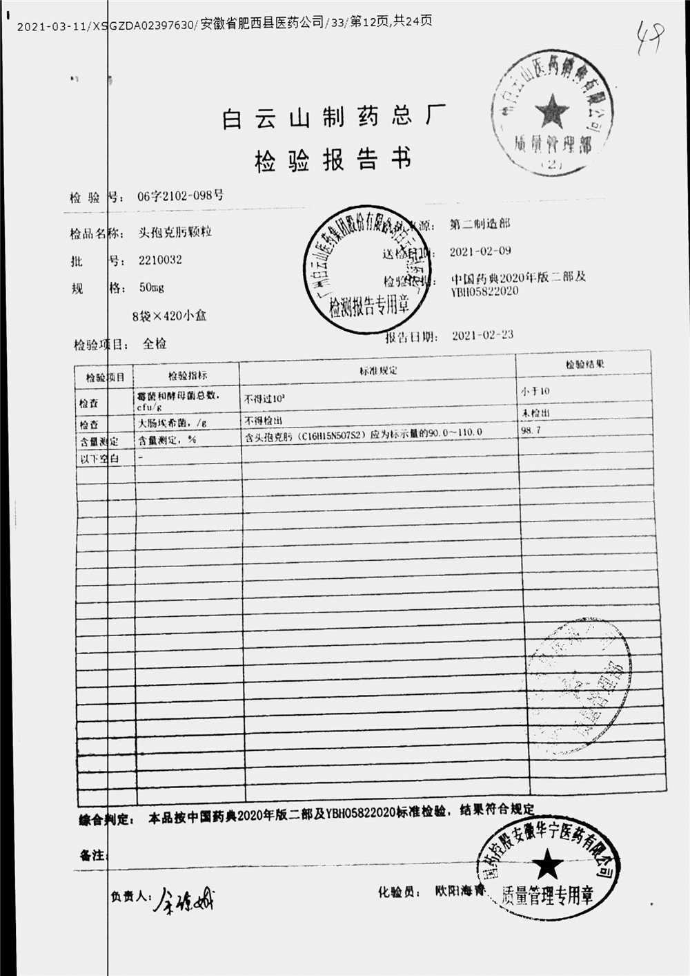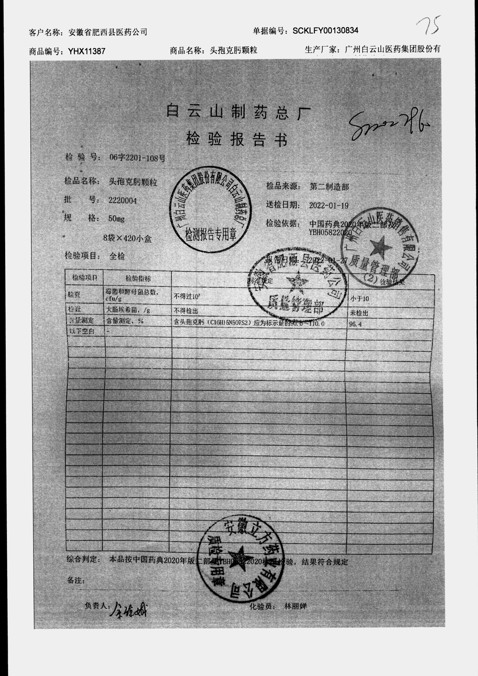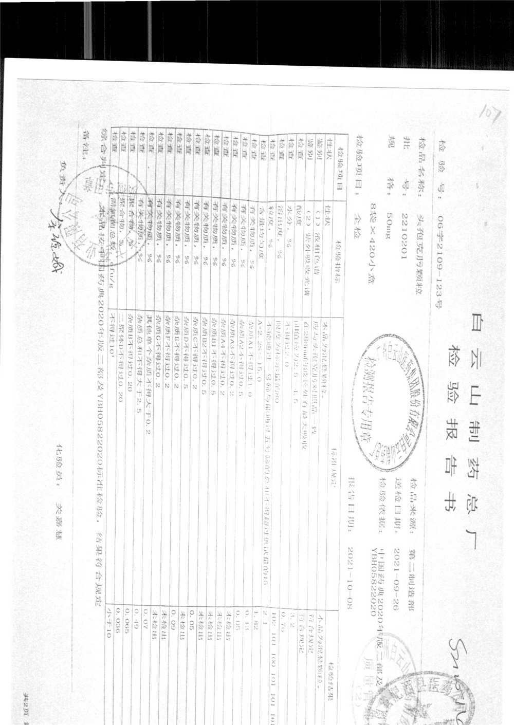 药检报告