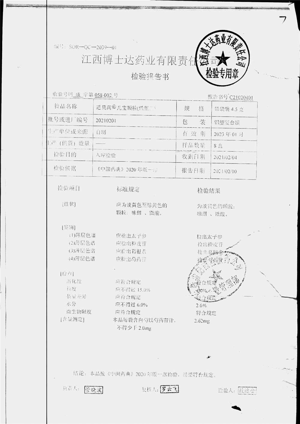 药检报告
