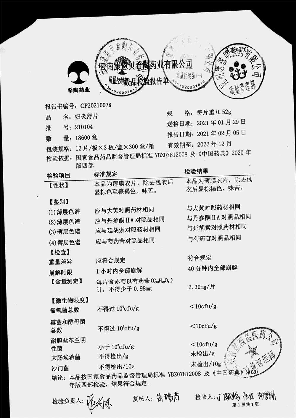 药检报告