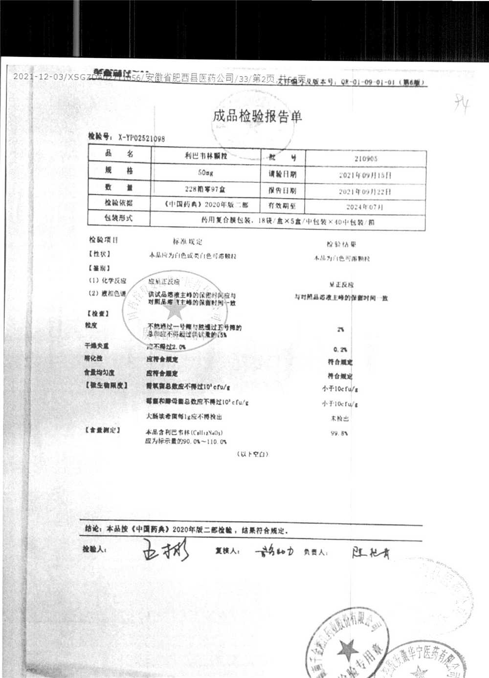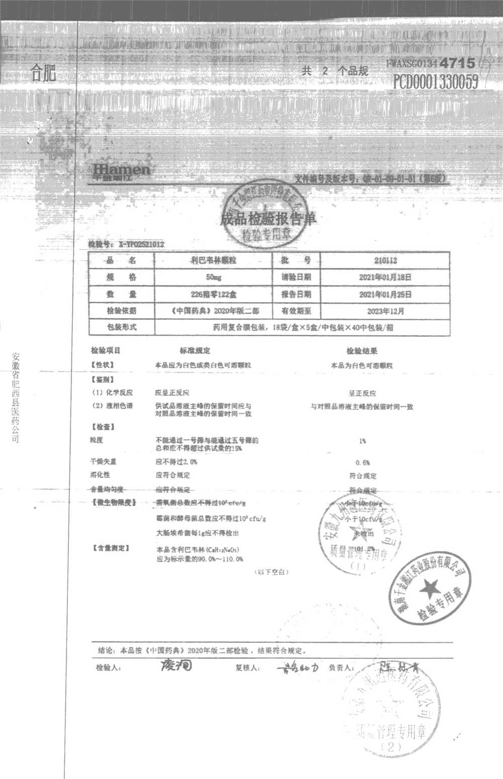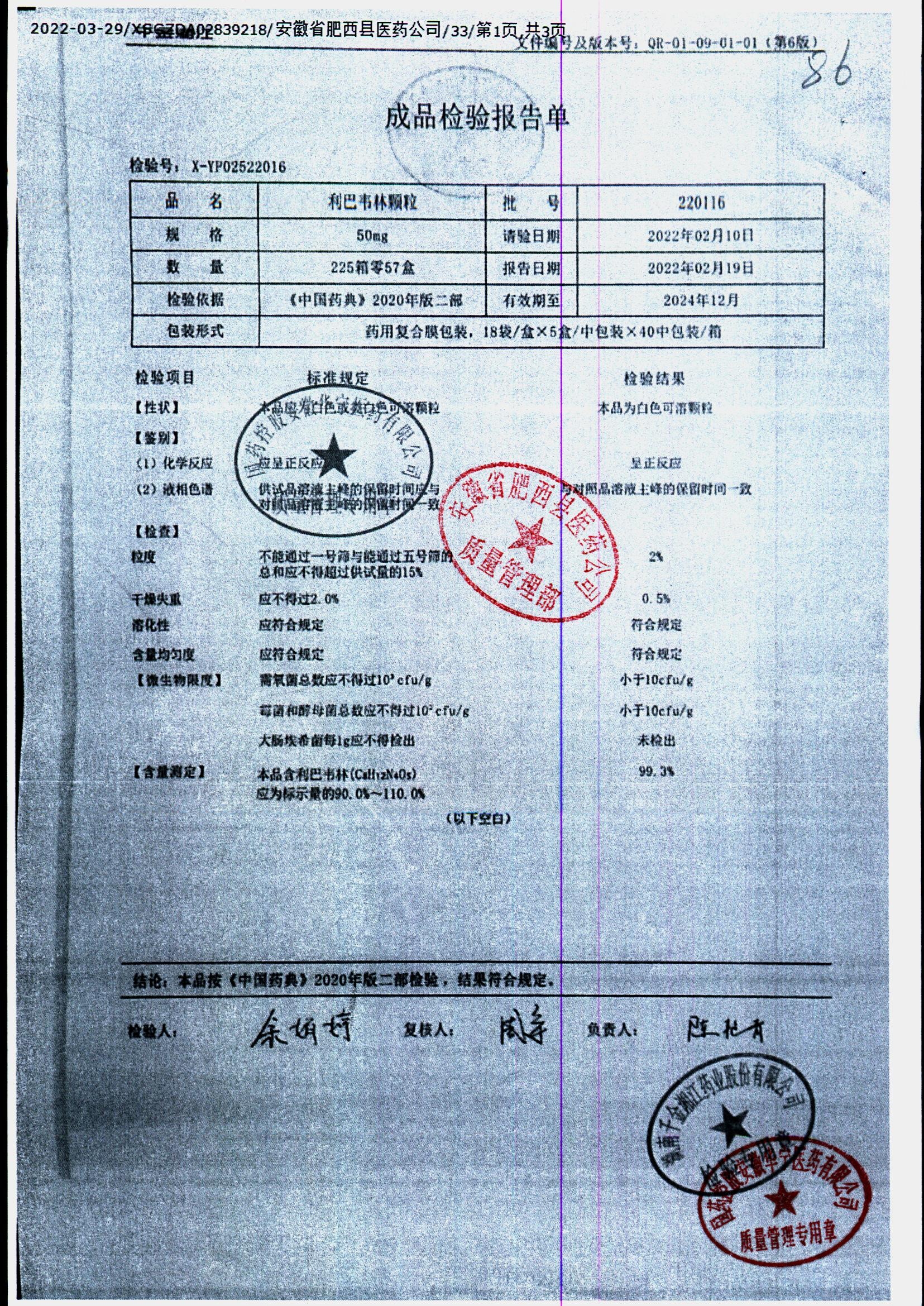 | 名称 | 规格 | 批号 | 药检报告 |