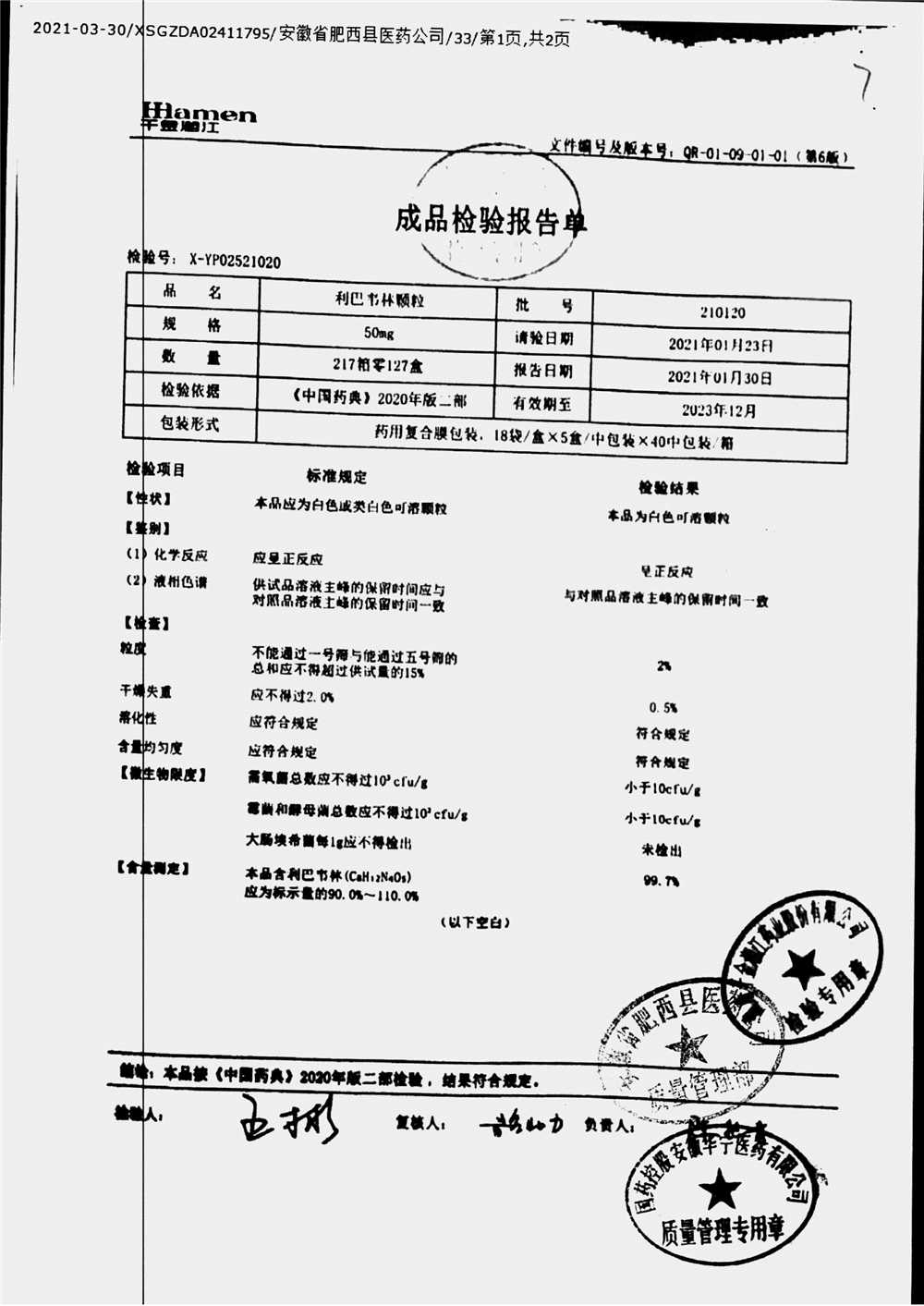 | 利巴韦林颗粒 | 50mg*18袋 | 210120 | 查看详情 |