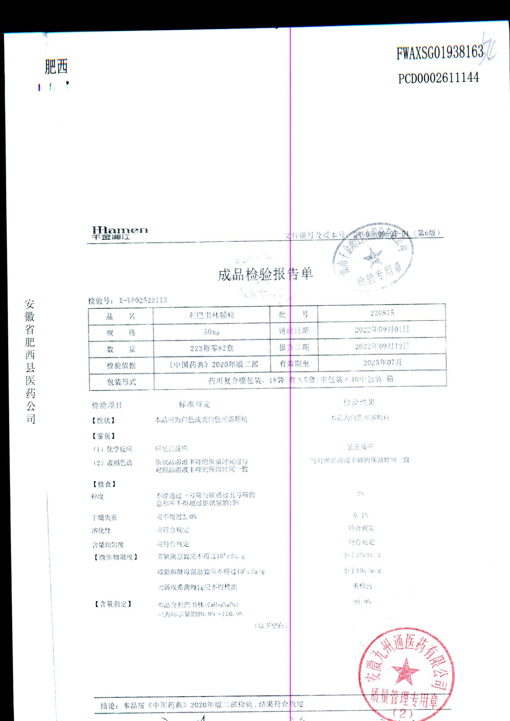 | 利巴韦林颗粒 | 50mg*18袋 | 220815 | 查看详情 |