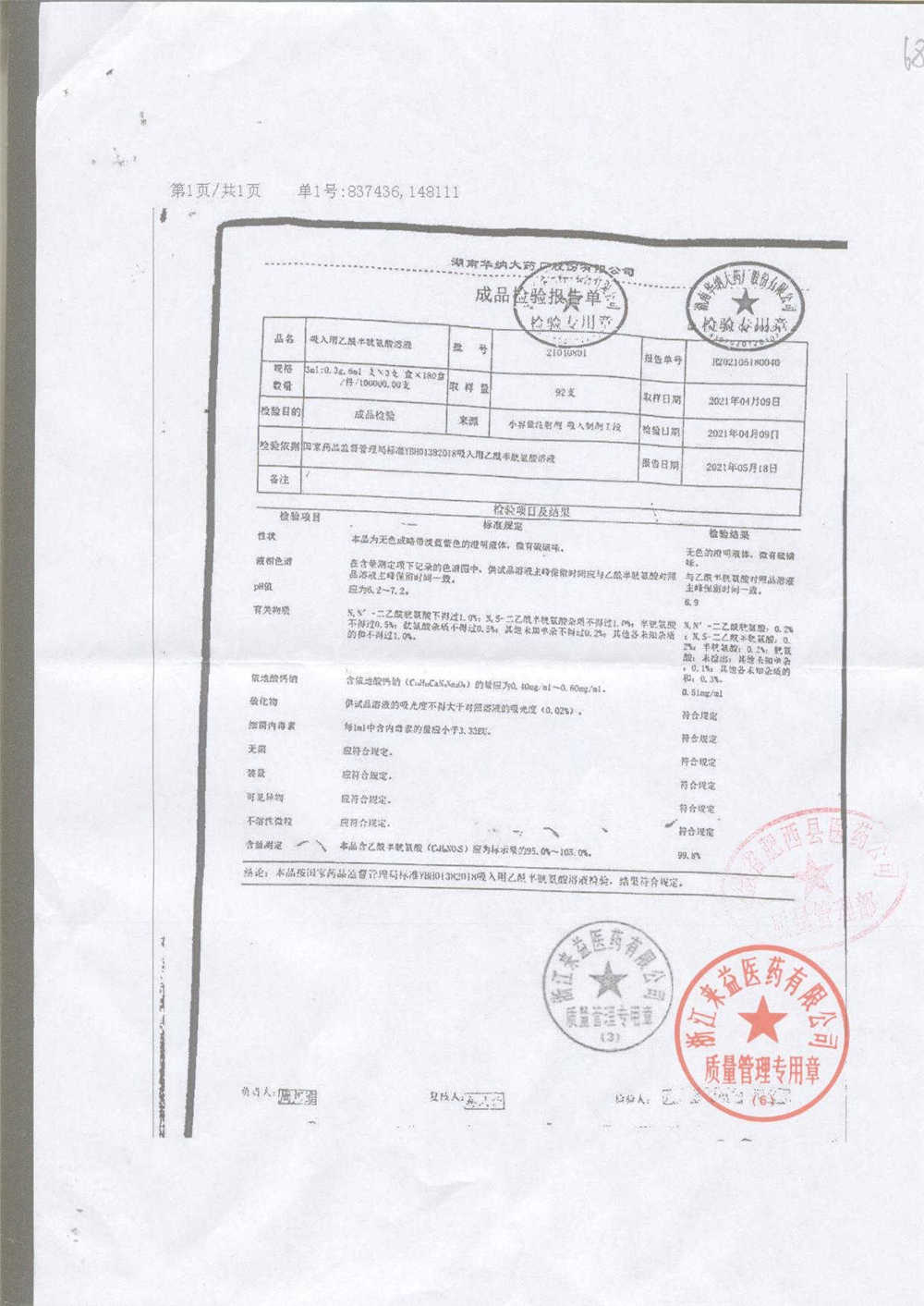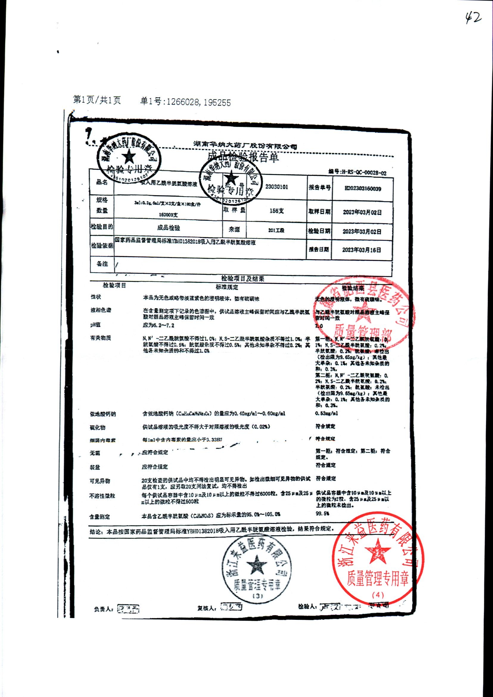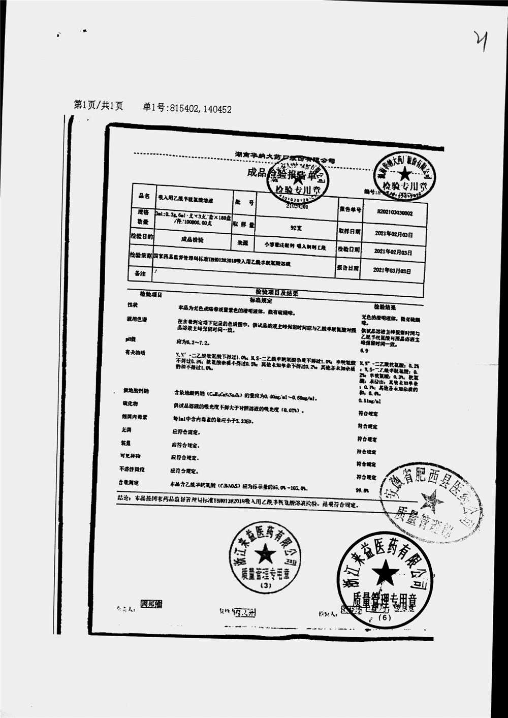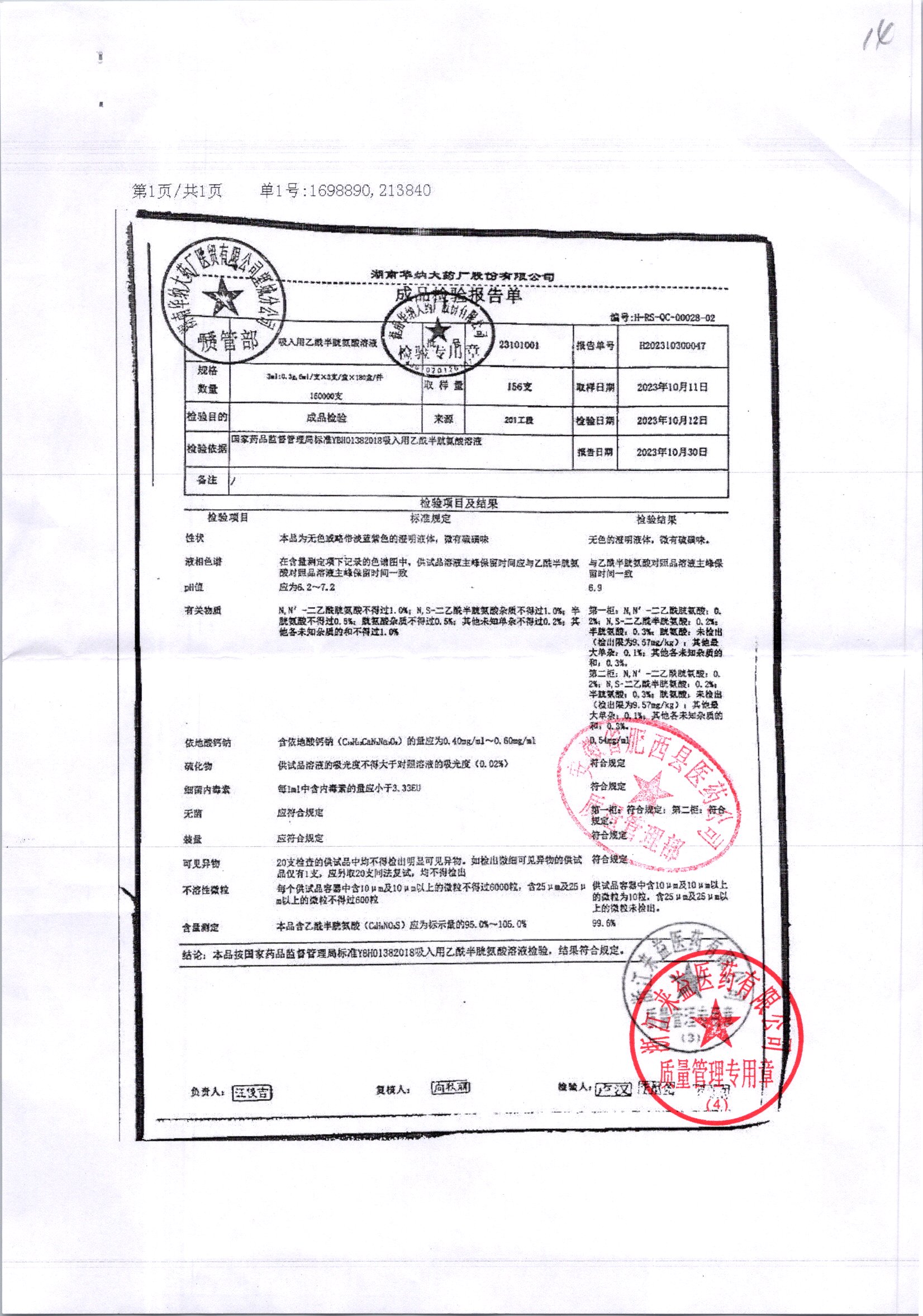 | 吸入用乙酰半胱氨酸溶液 | 6ml*3支 | 21041401(1/2) | 查看详情 |