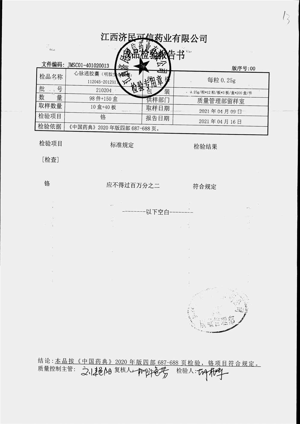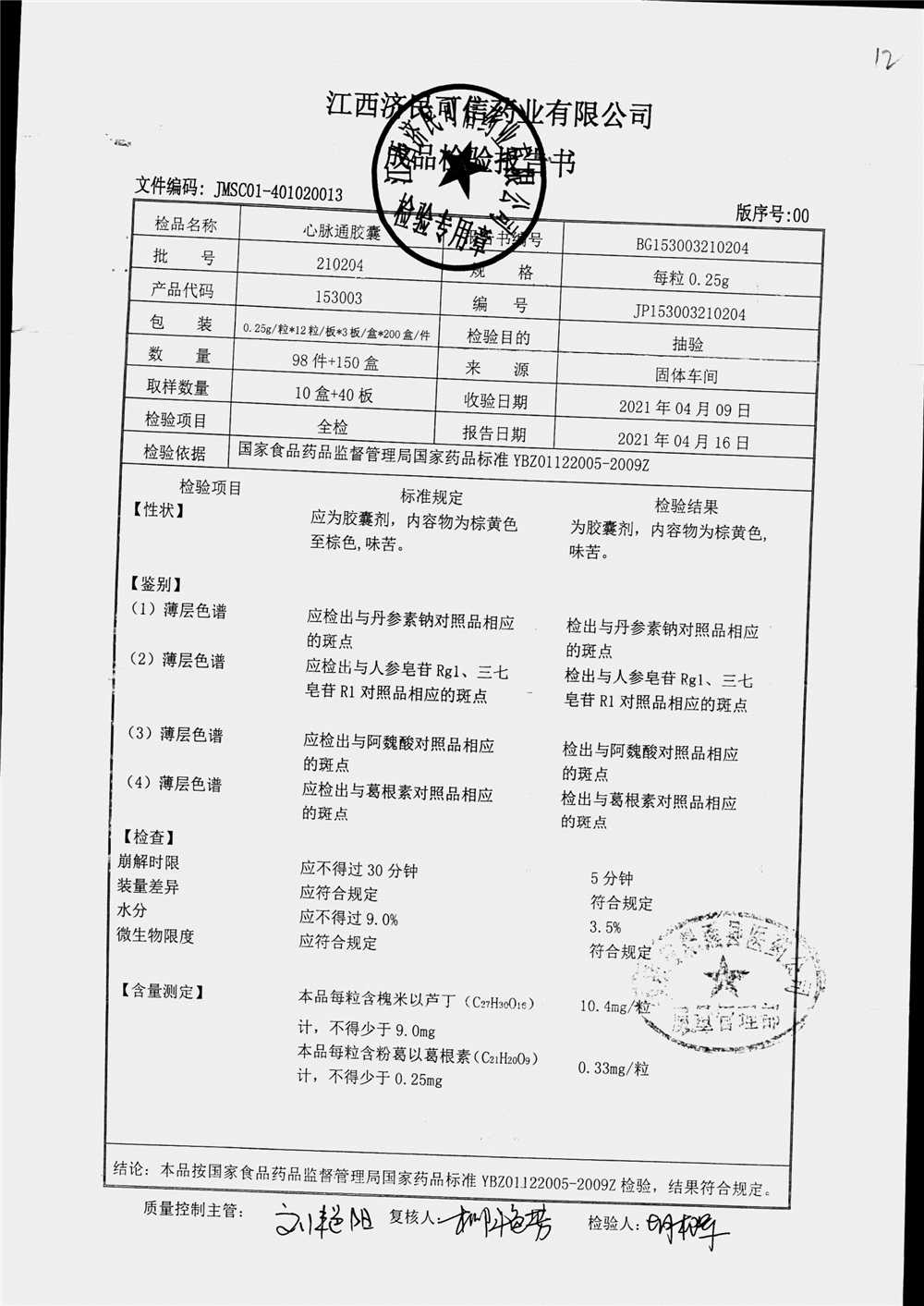 | 心脉通胶囊 | 0.25g*12s*3板 | 210204(2/2) | 查看详情 |