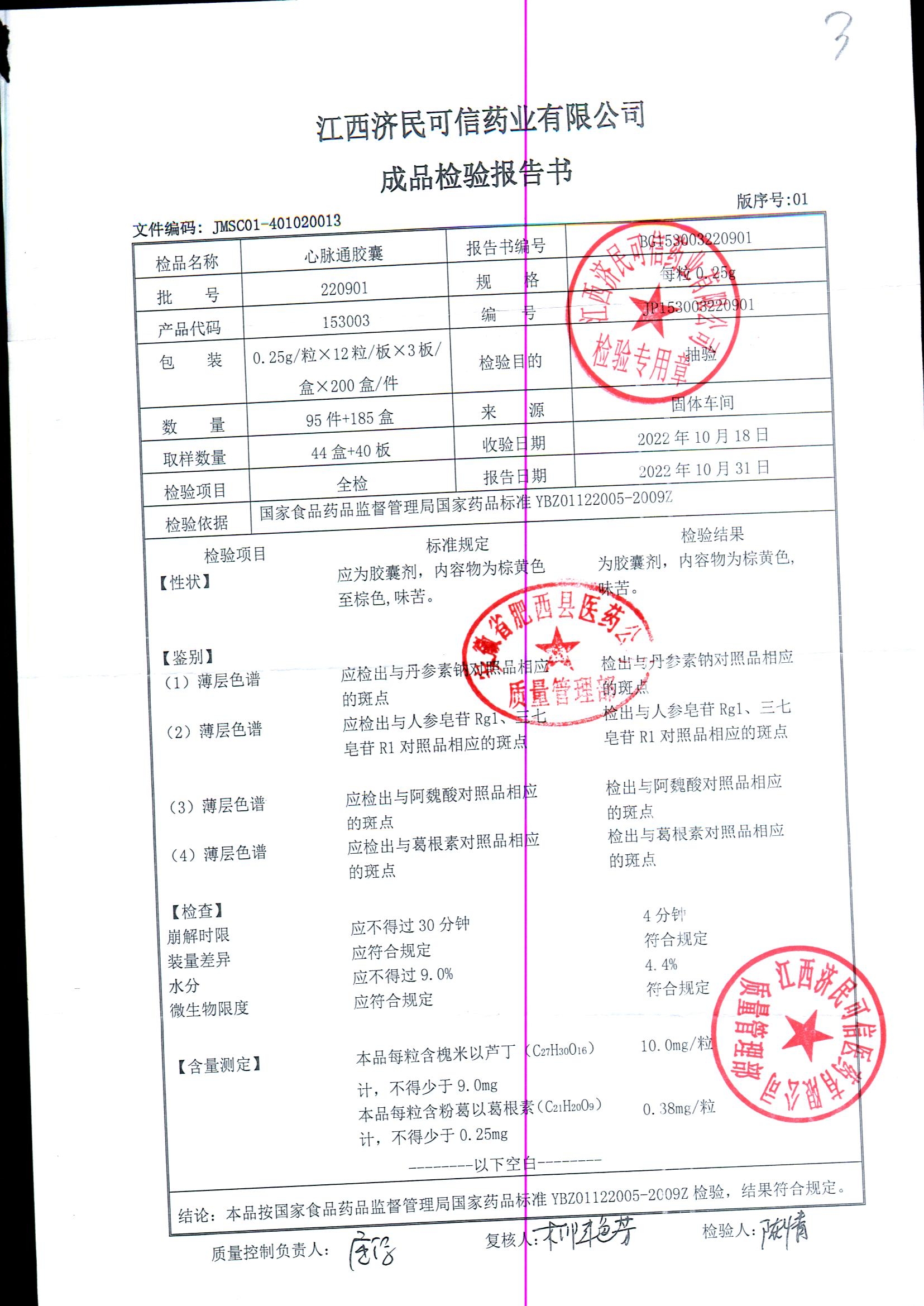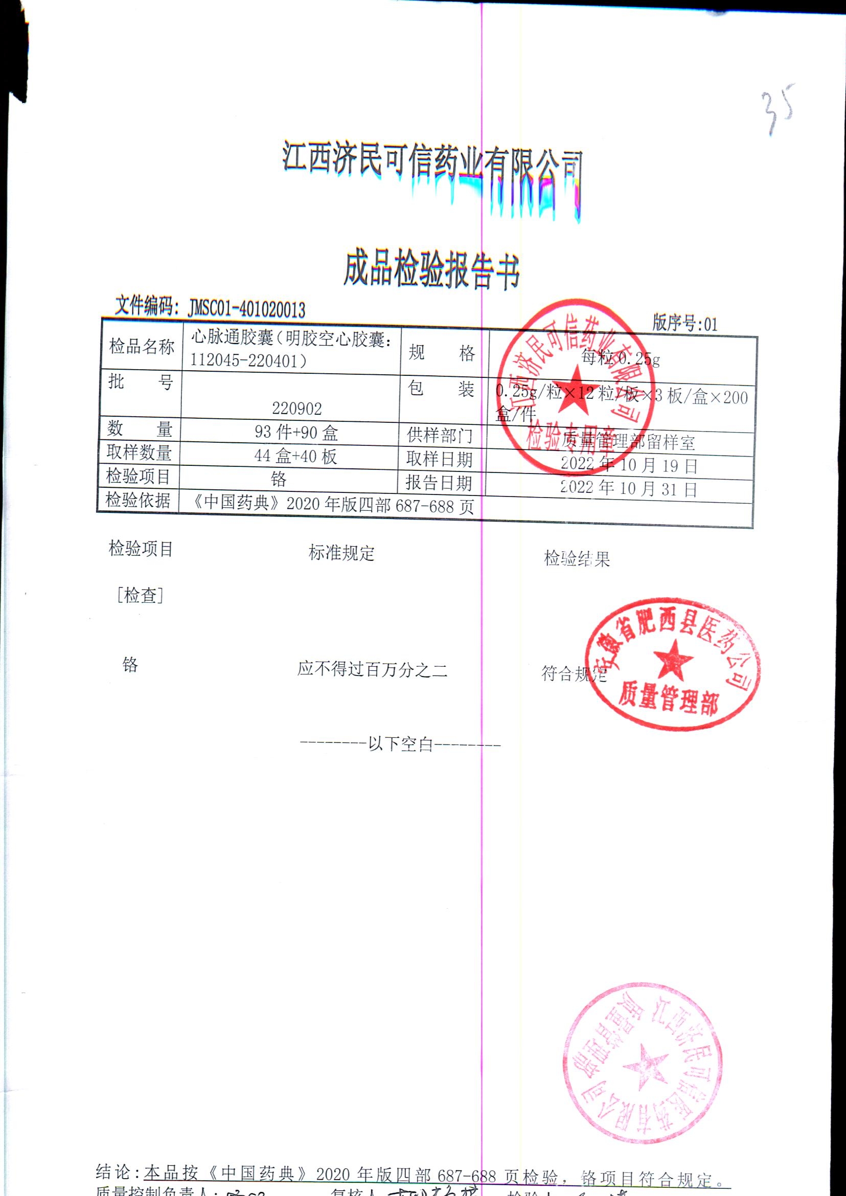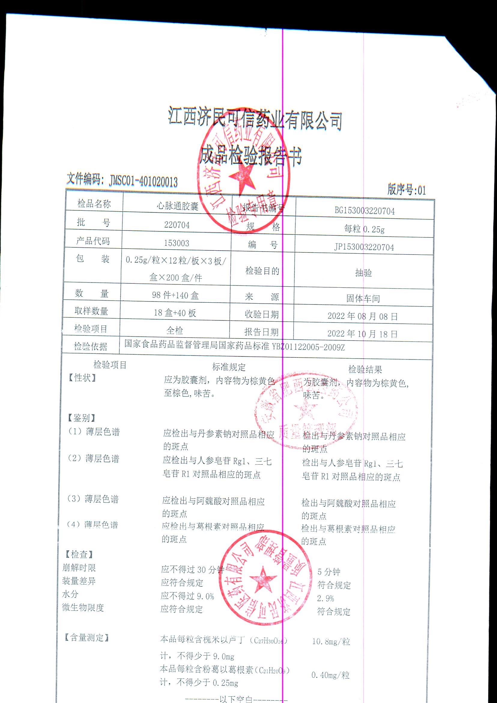 | 心脉通胶囊 | 0.25g*12s*3板 | 220901/2 | 查看详情 |
