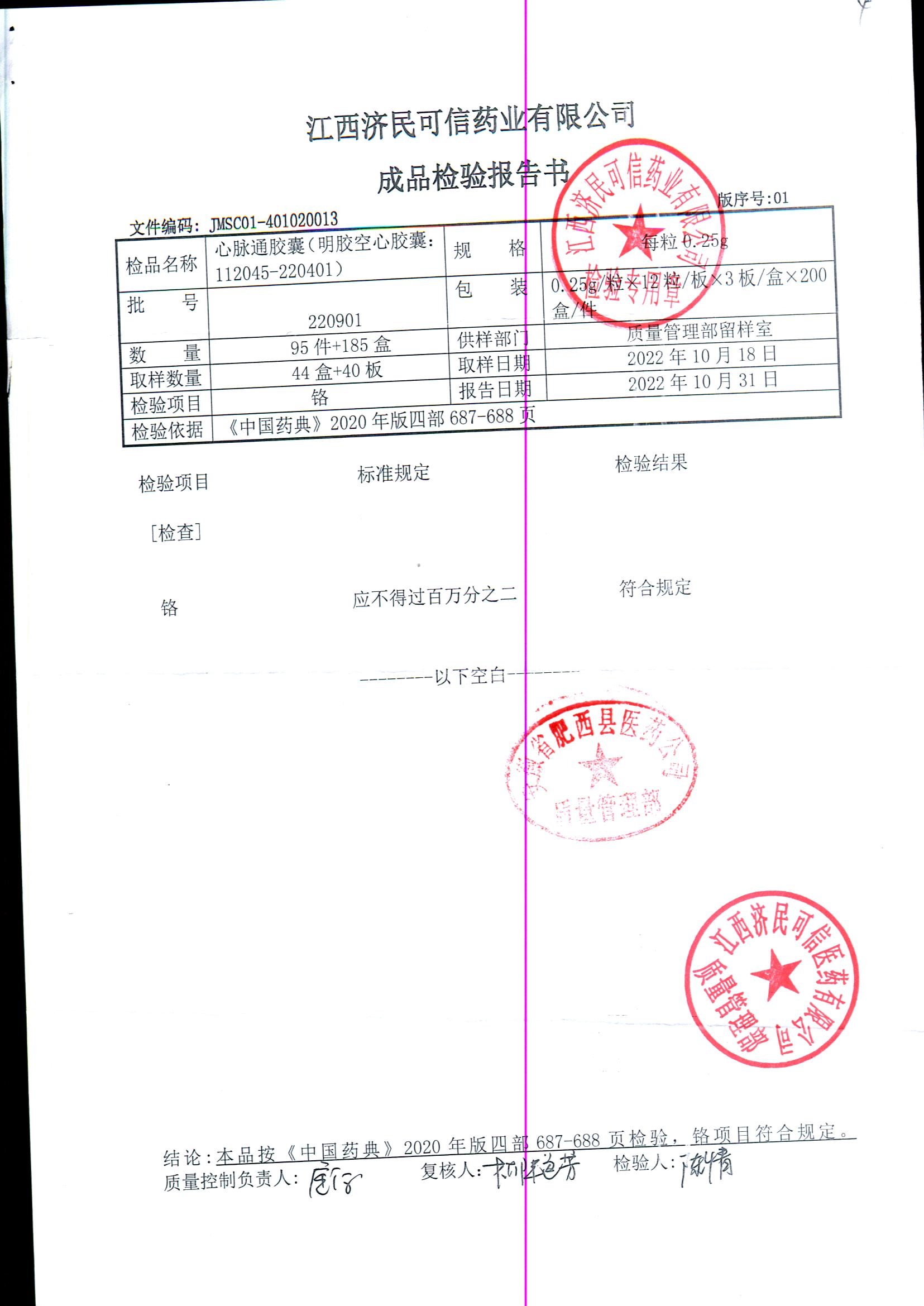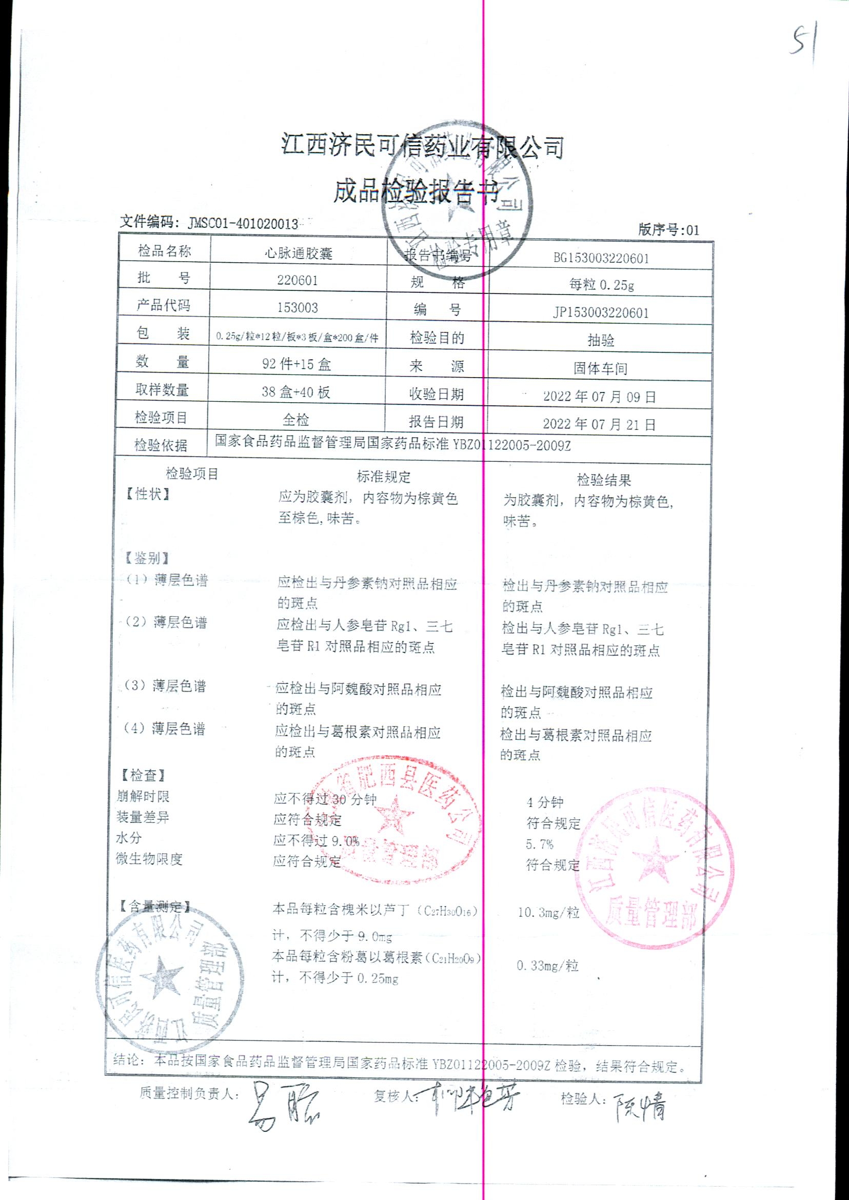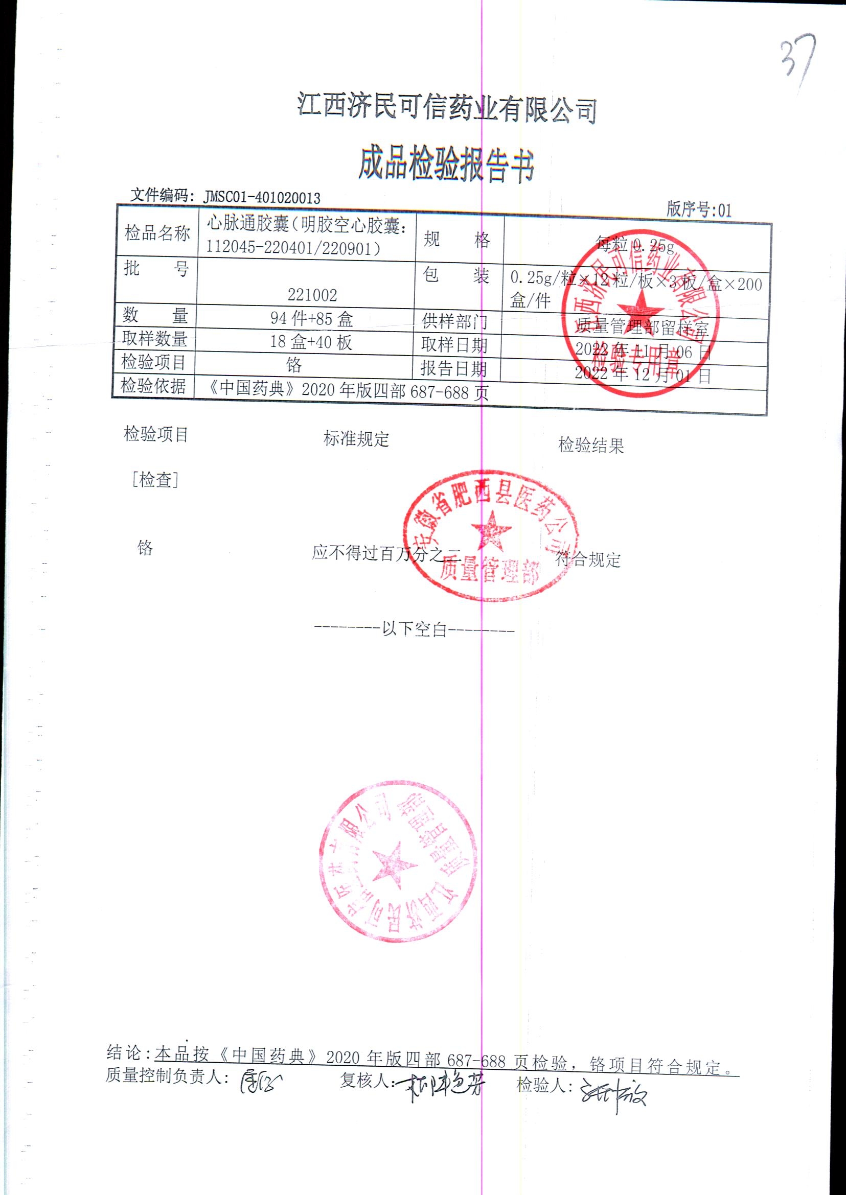 | 心脉通胶囊 | 0.25g*12s*3板 | 220601/2 | 查看详情 |