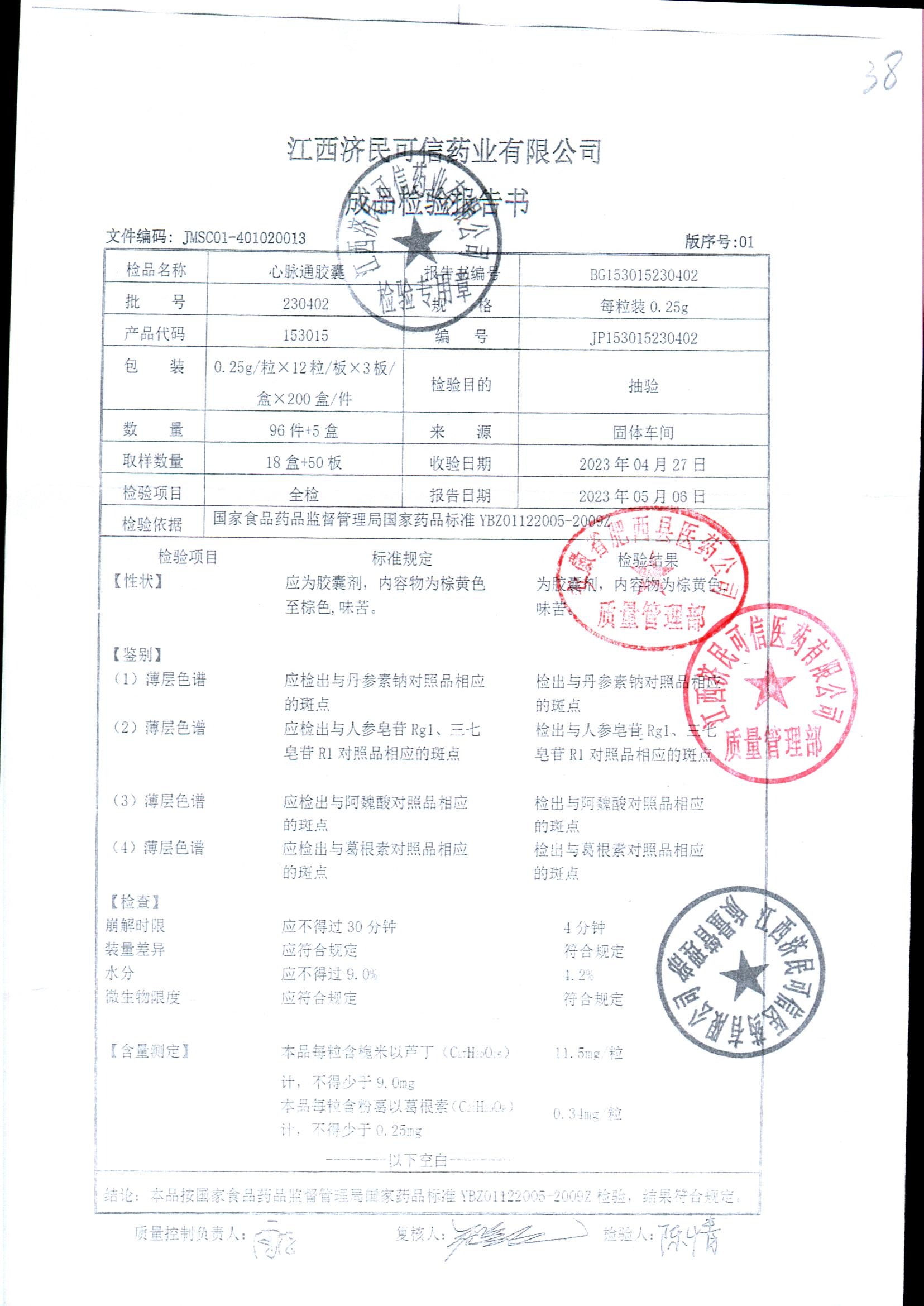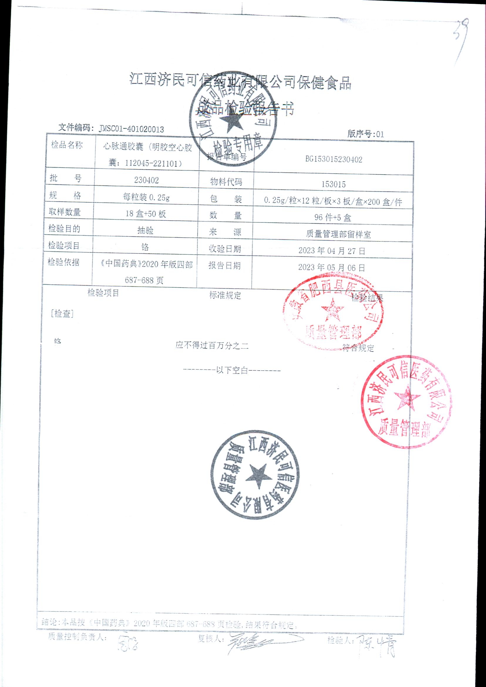 | 心脉通胶囊 | 0.25g*12s*3板 | 230402/2 | 查看详情 |