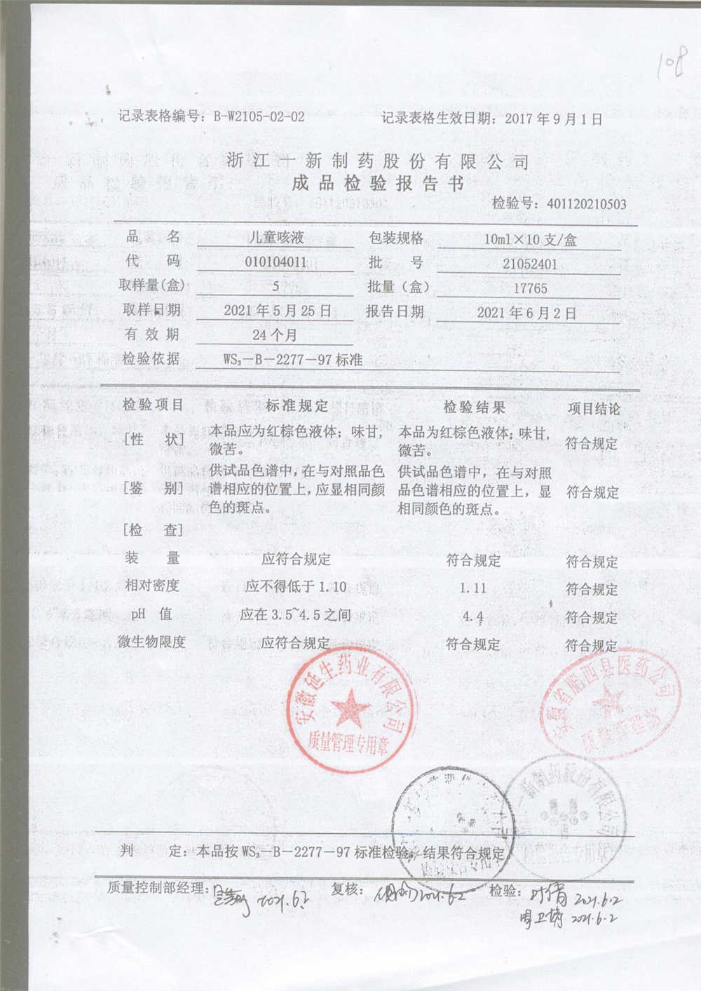 | 儿童咳液 | 10ml*10支 | 21052401 | 查看详情 |