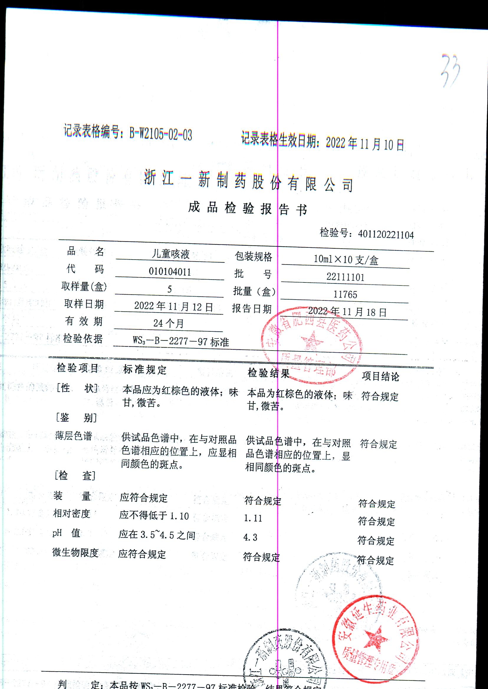 | 儿童咳液 | 10ml*10支 | 22111101 | 查看详情 |