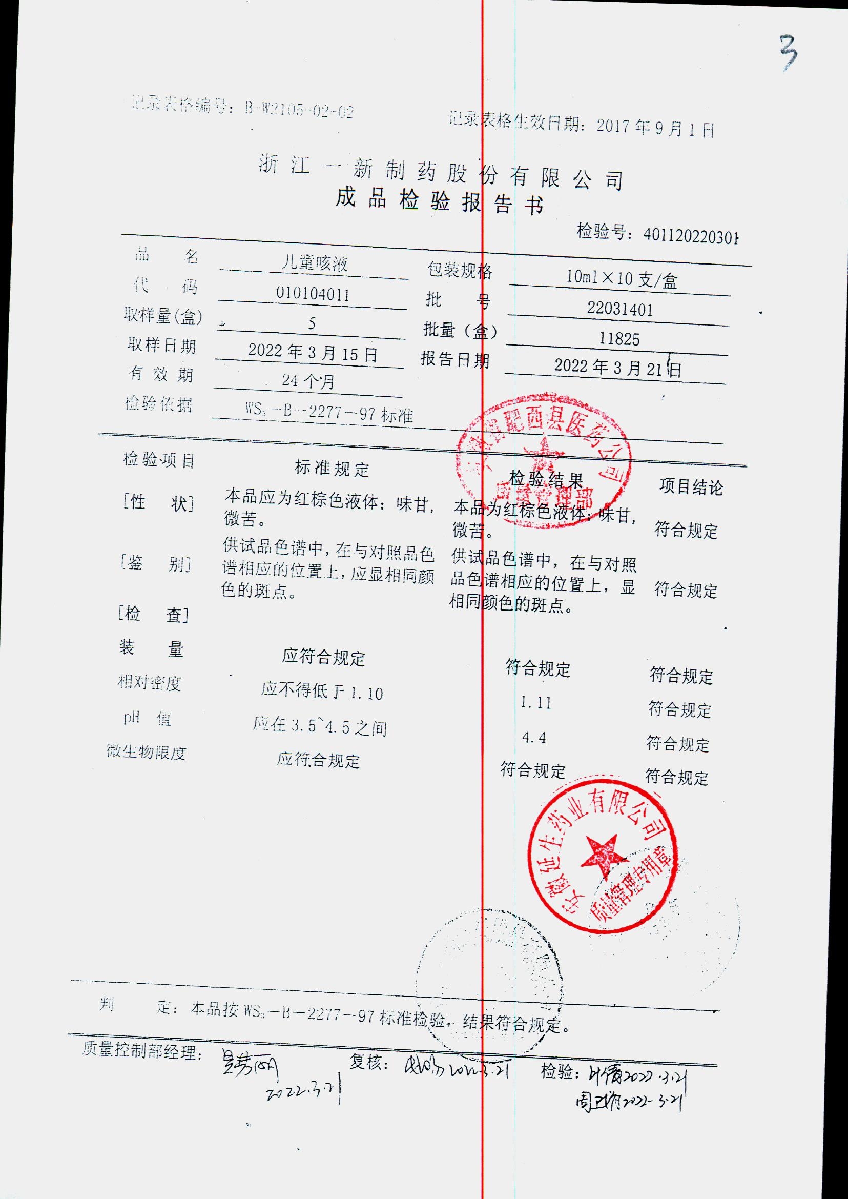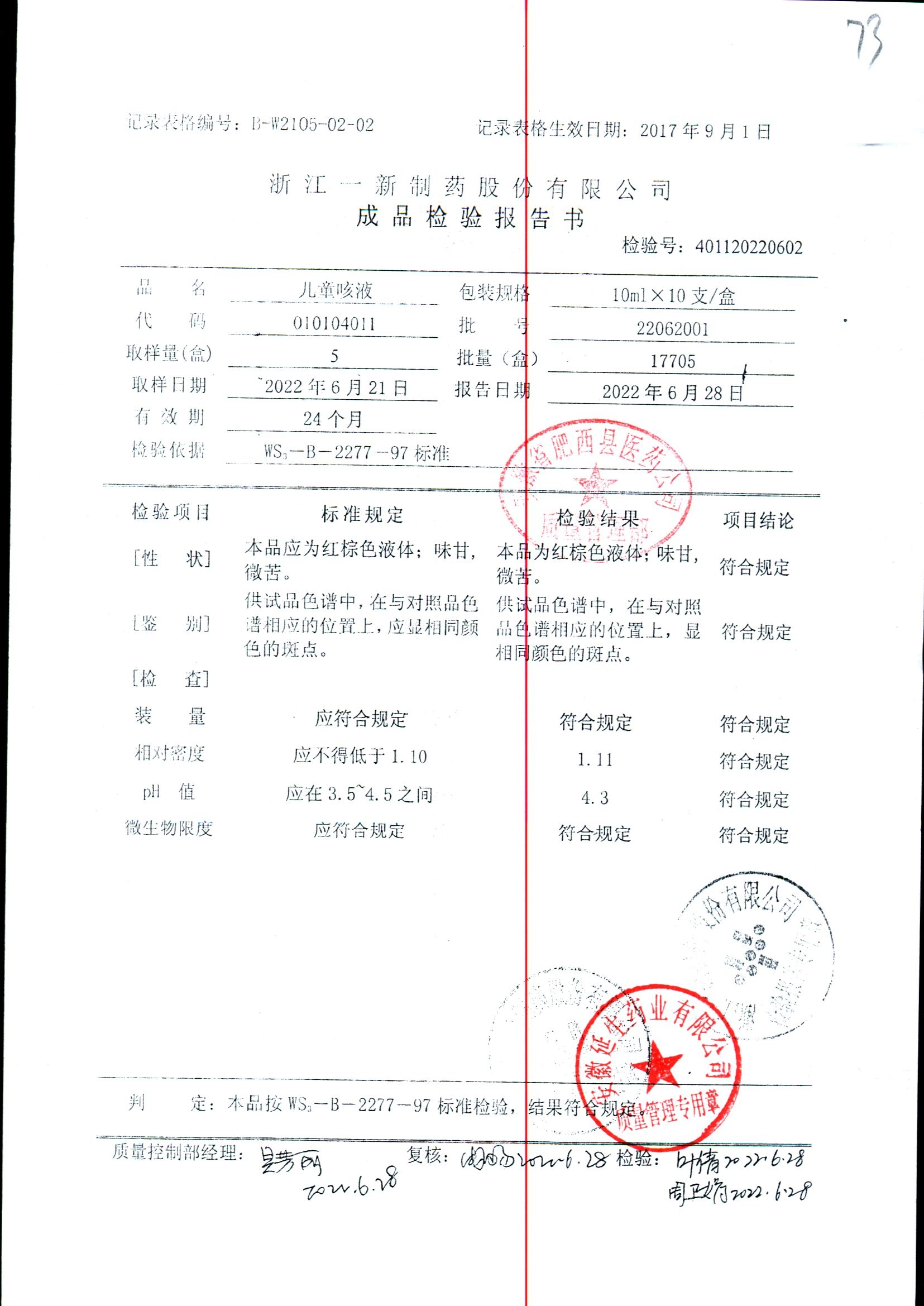 | 儿童咳液 | 10ml*10支 | 22091201 | 查看详情 |