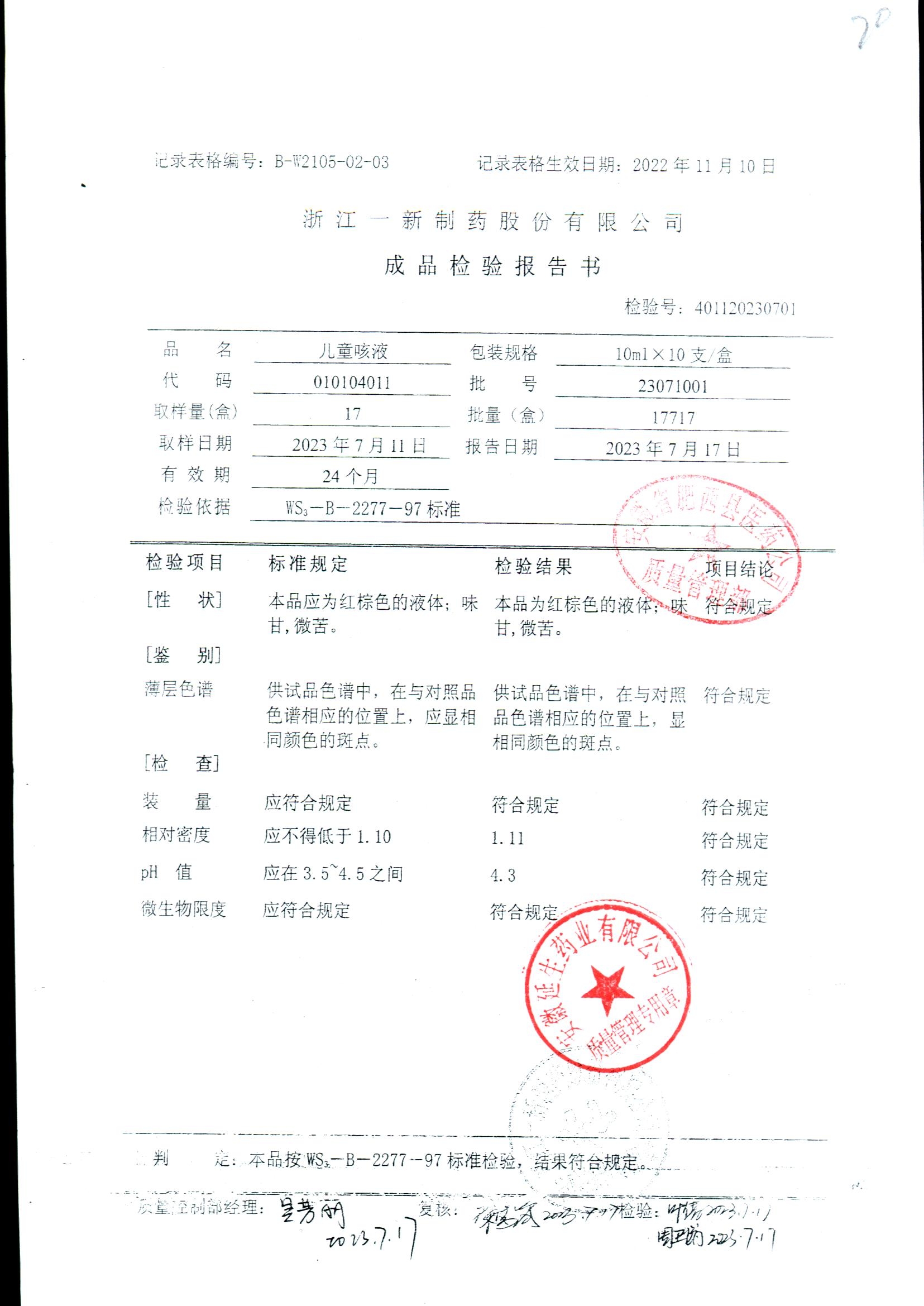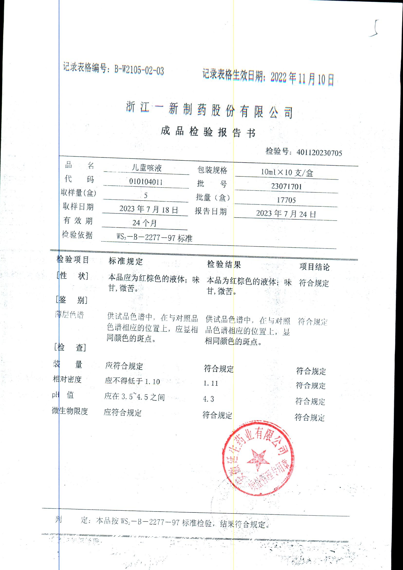 | 儿童咳液 | 10ml*10支 | 23071001 | 查看详情 |