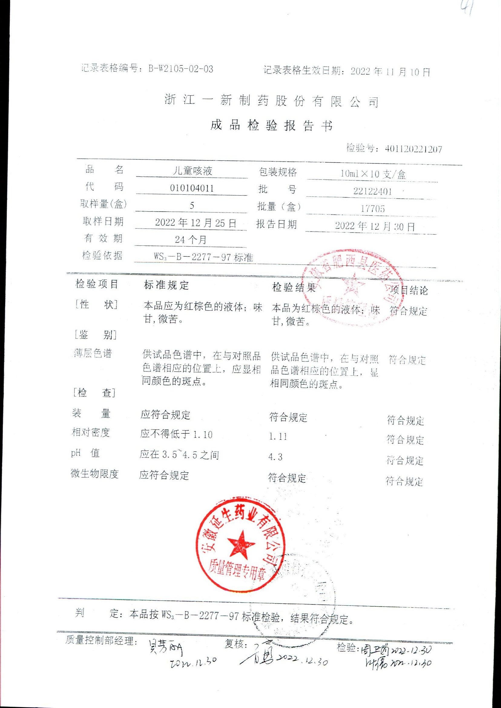 | 儿童咳液 | 10ml*10支 | 22122401 | 查看详情 |
