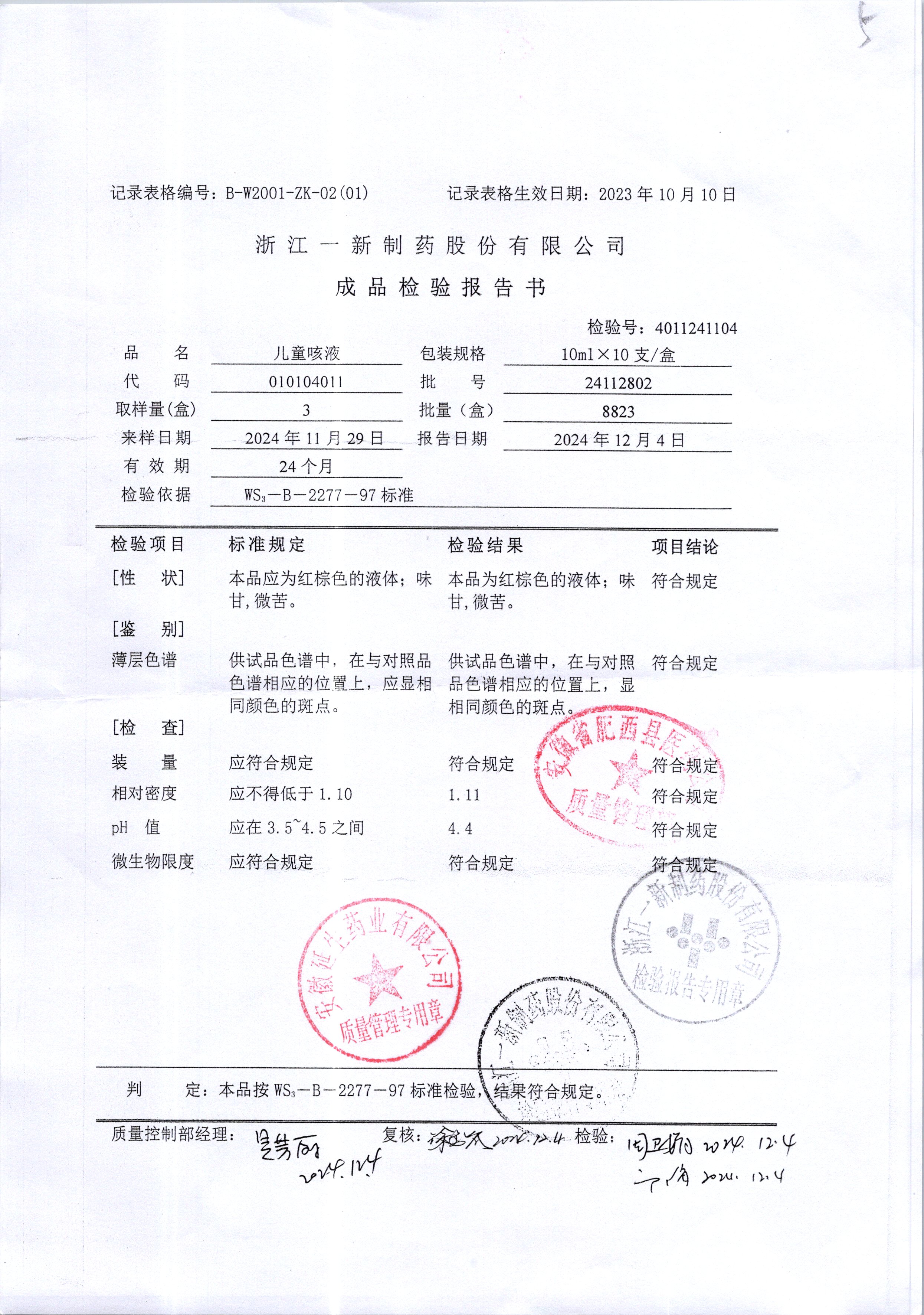 | 儿童咳液 | 10ml*10支 | 24112802 | 查看详情 |