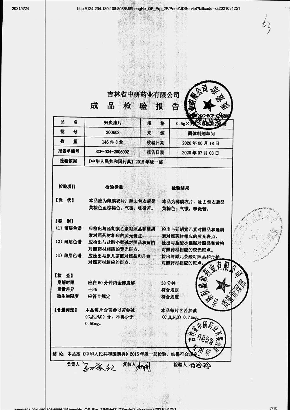 药检报告