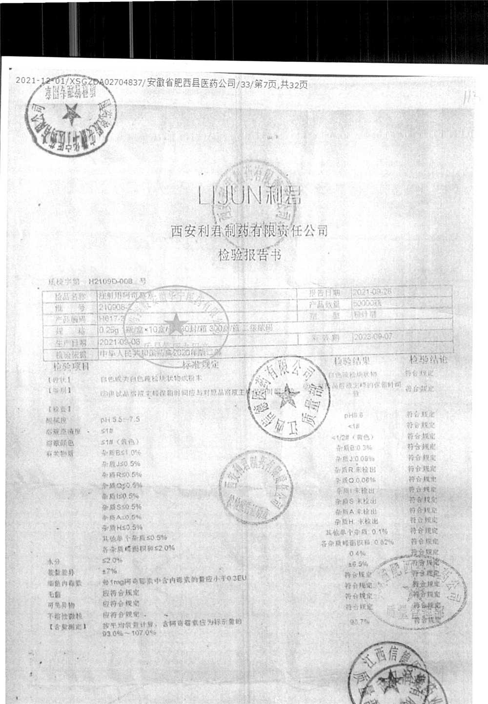 | 注射用阿奇霉素 | 0.25g | 210908-2 | 查看详情 |