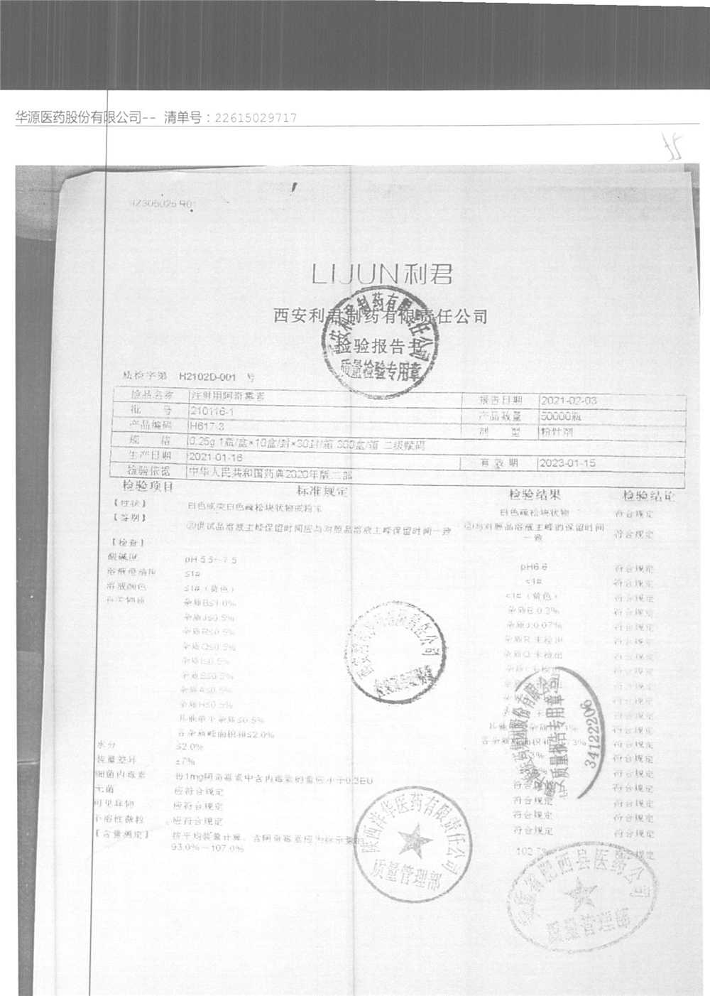 | 注射用阿奇霉素 | 0.25g | 210116-1 | 查看详情 |
