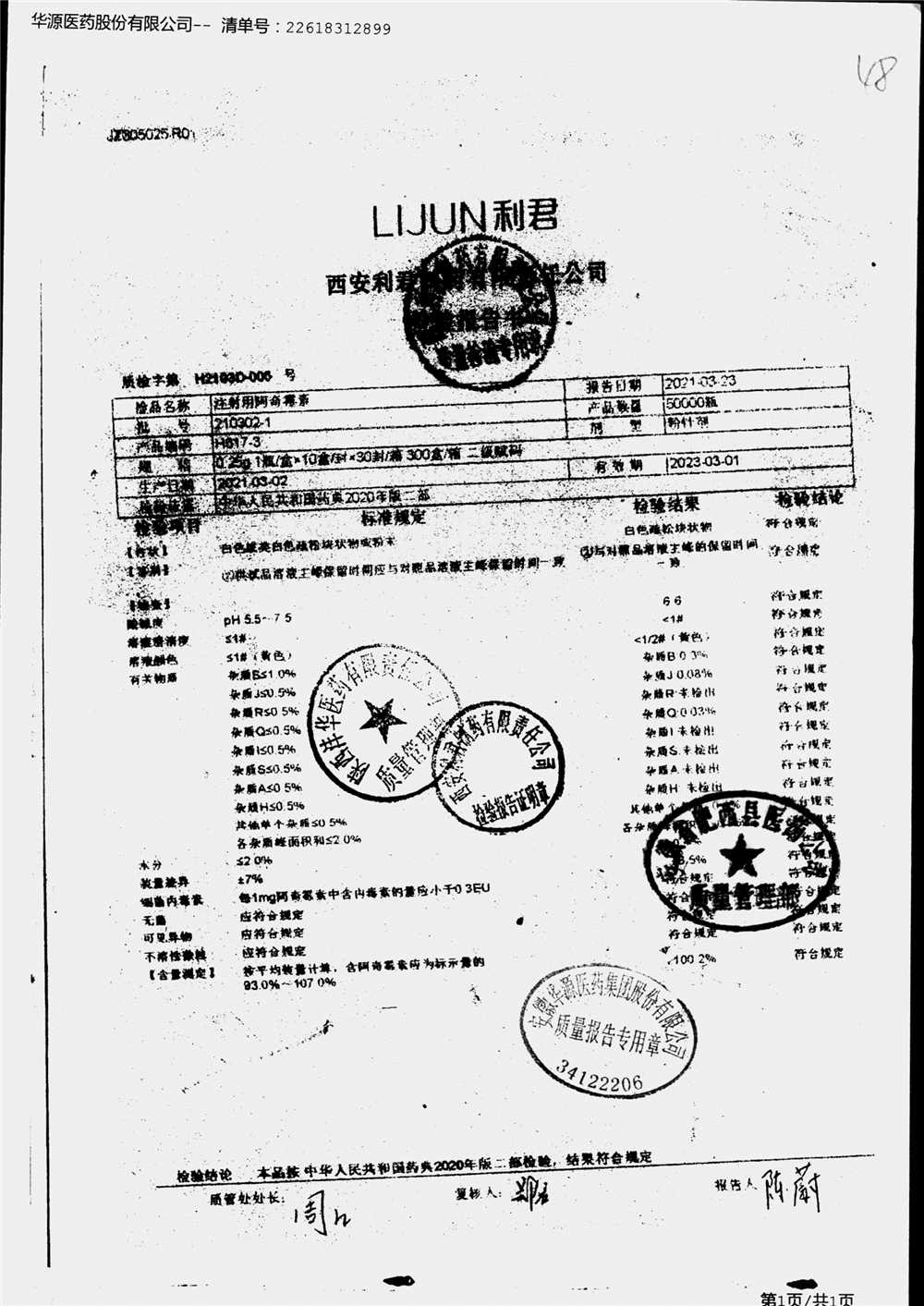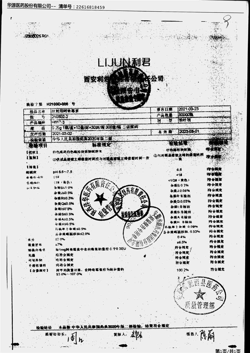 | 注射用阿奇霉素 | 0.25g | 210302-2 | 查看详情 |