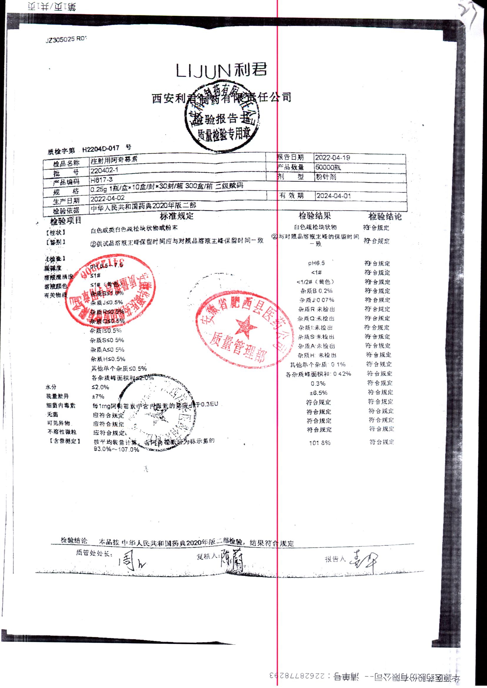 | 注射用阿奇霉素 | 0.25g | 220402-1 | 查看详情 |