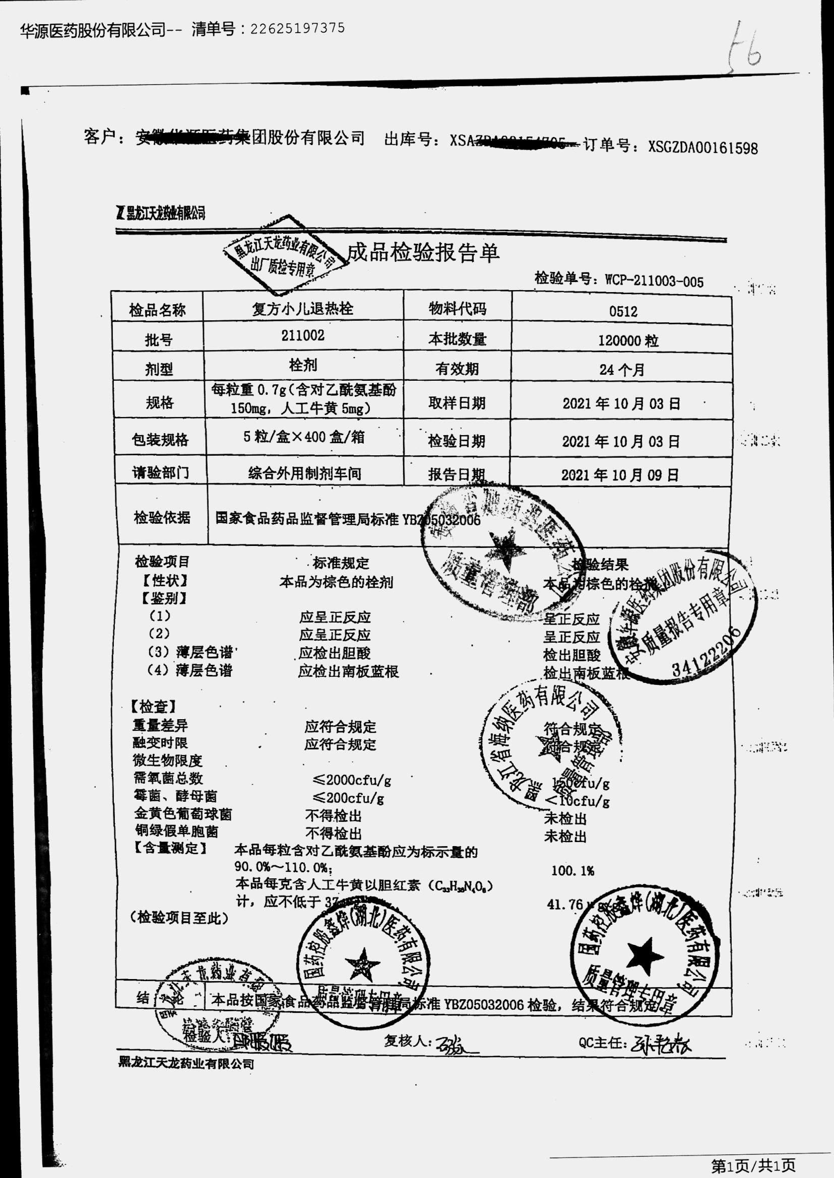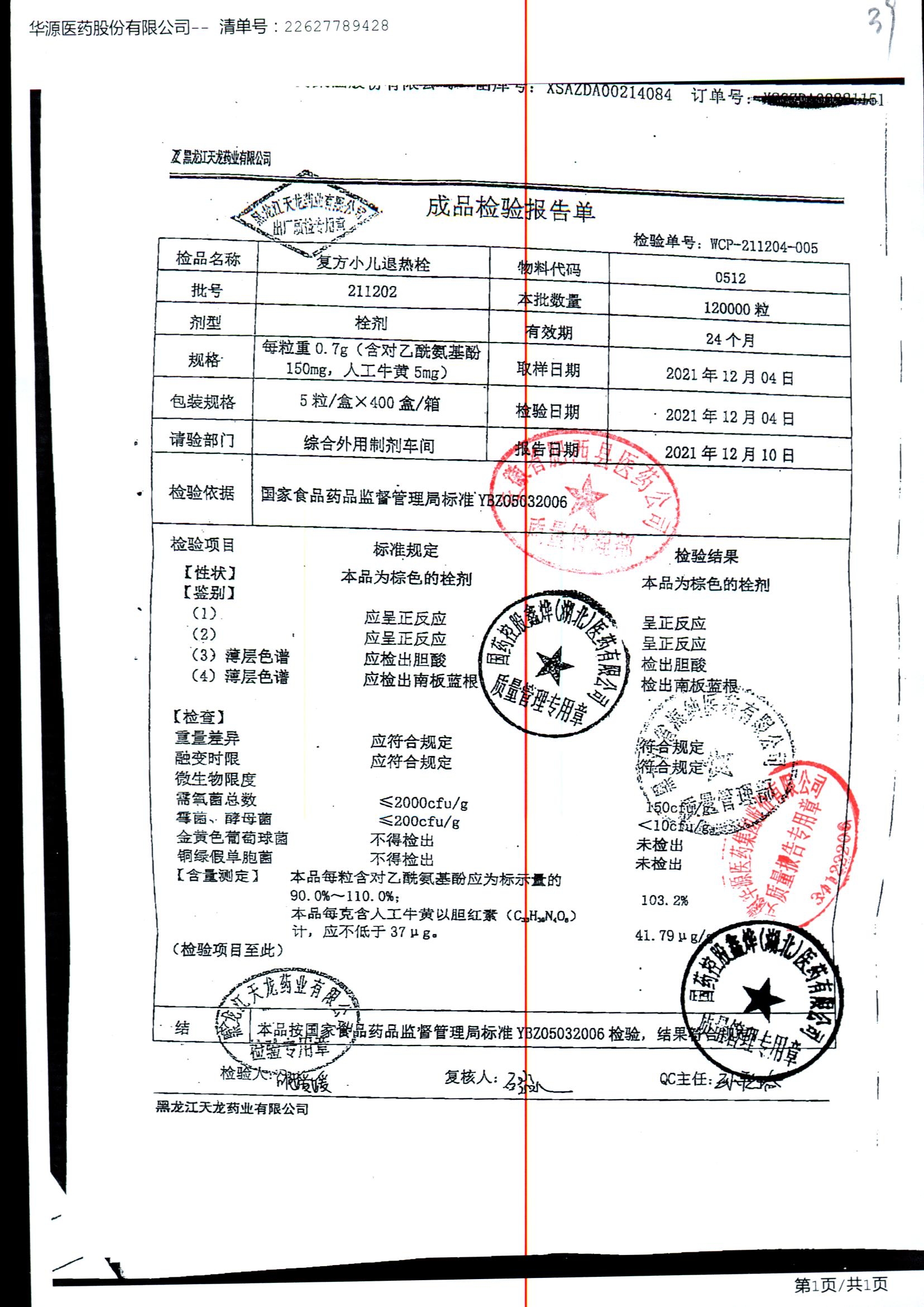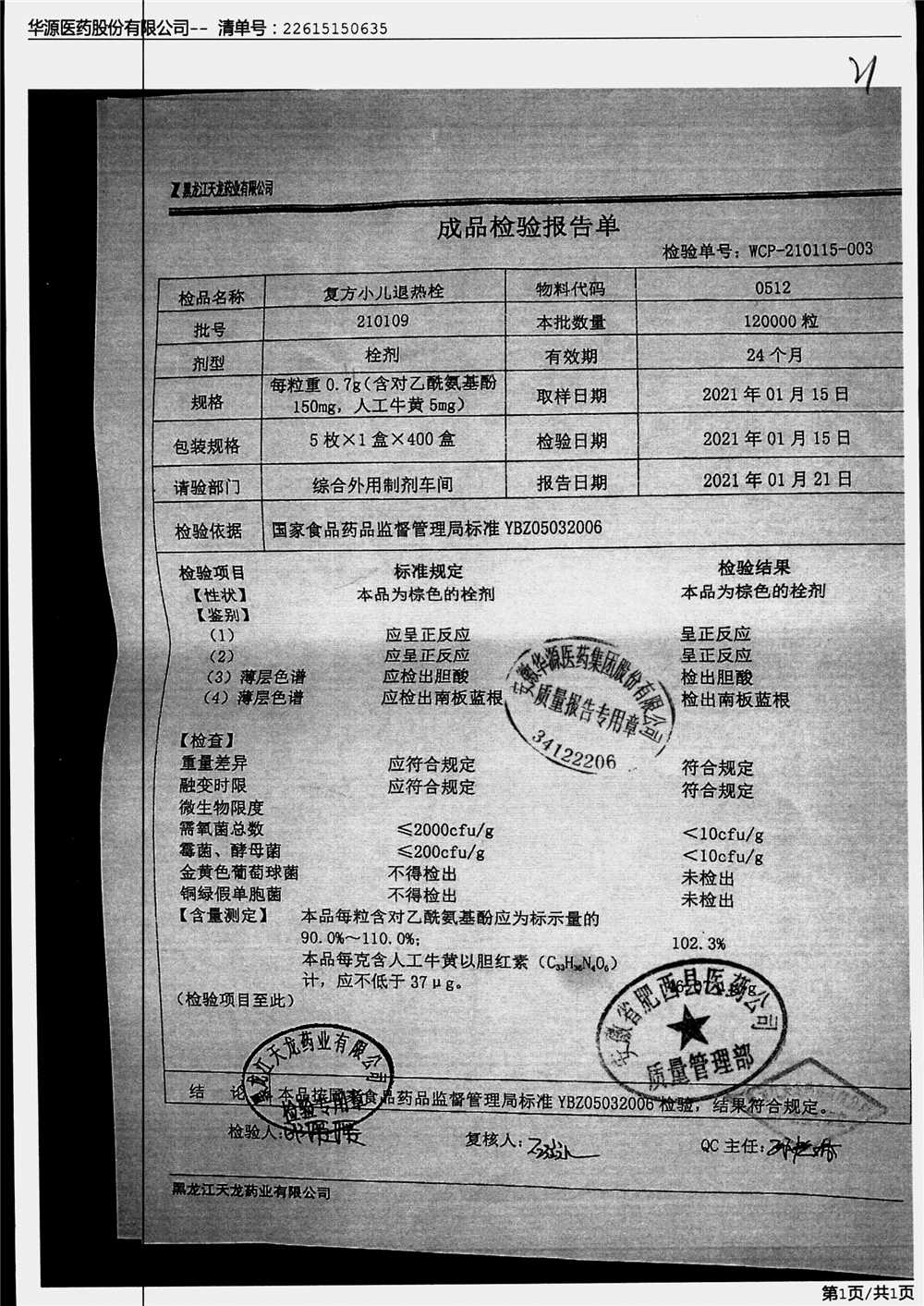 | 复方小儿退热栓 | 0.7g*5s | 210611 | 查看详情 |